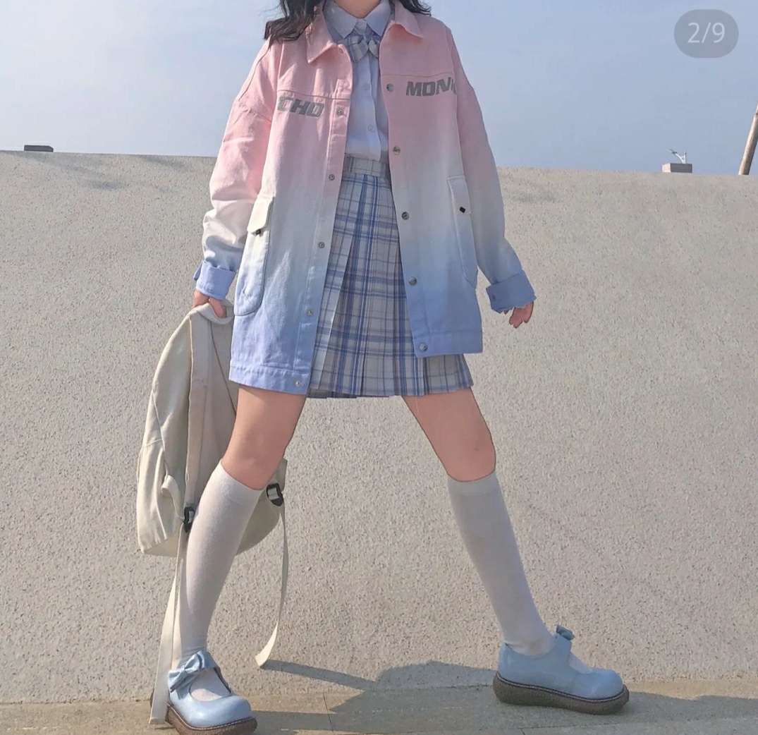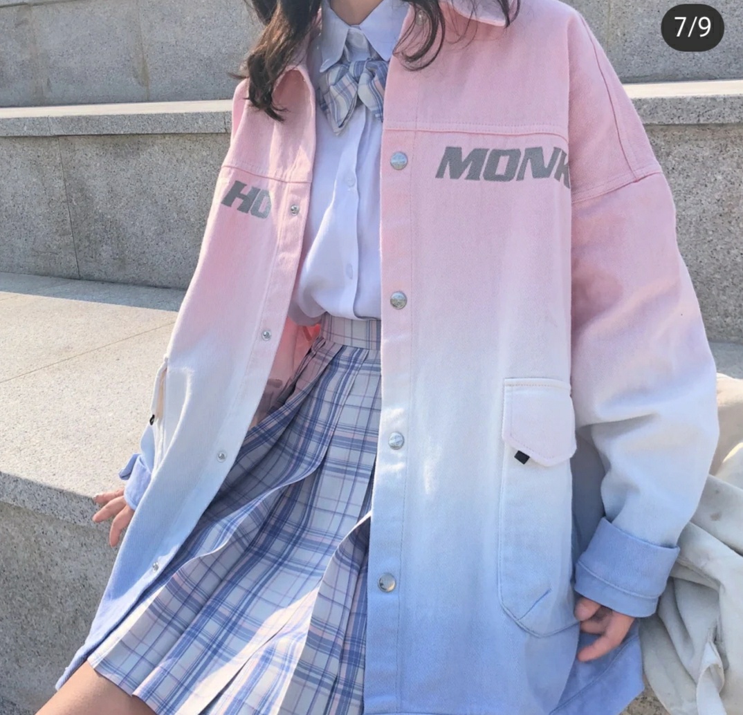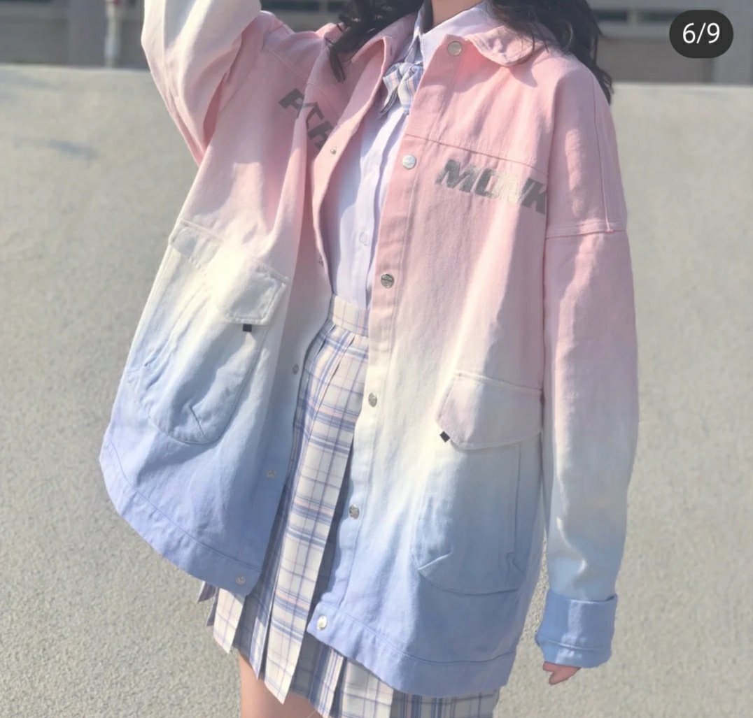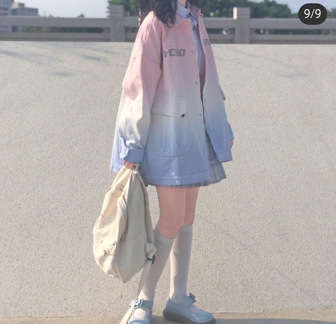 这么酷酷的一件渐变色外套硬生生被我搭成了软妹穿搭日.上半身看着酷酷的下半身却是软妹hh.