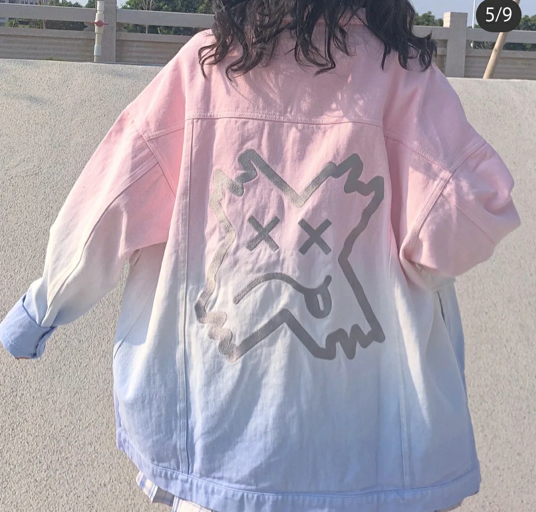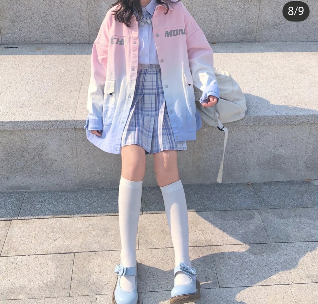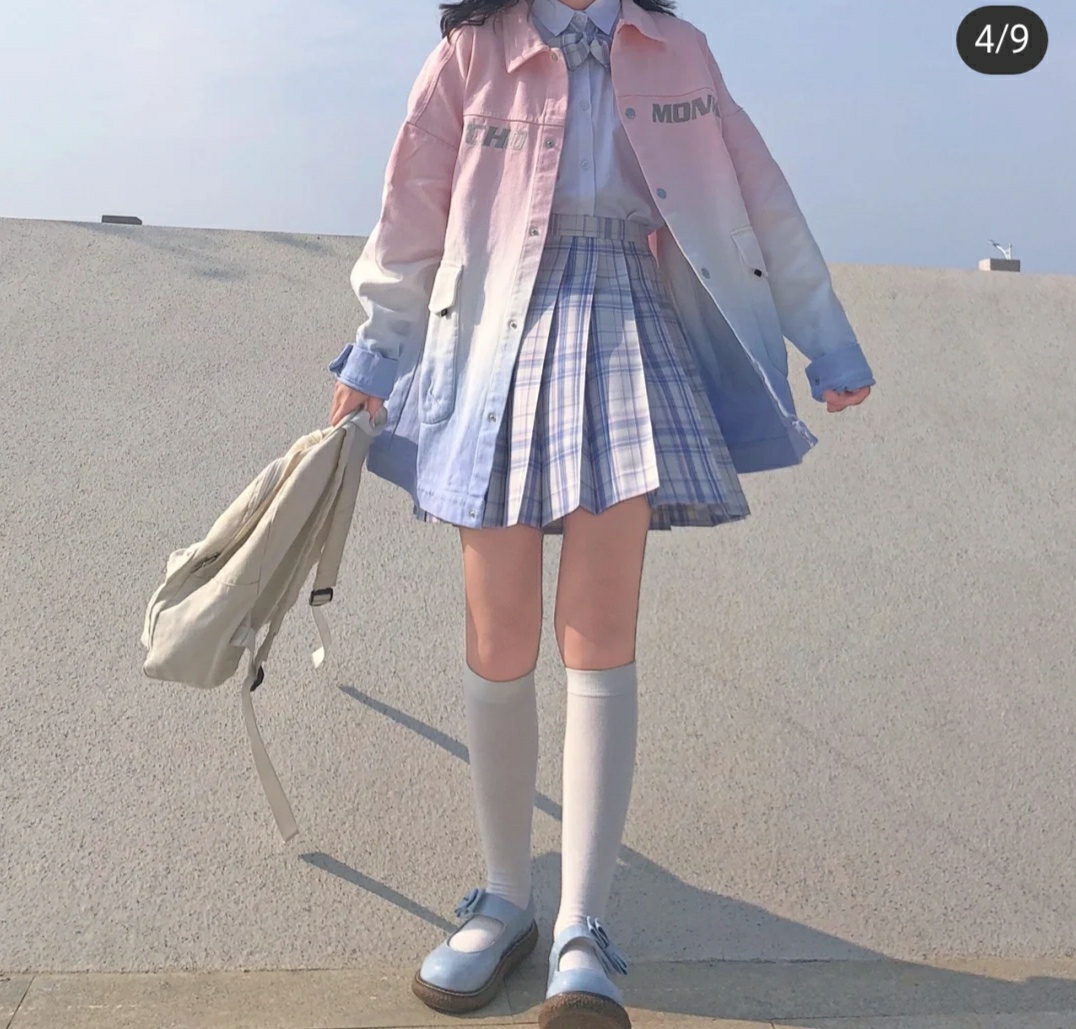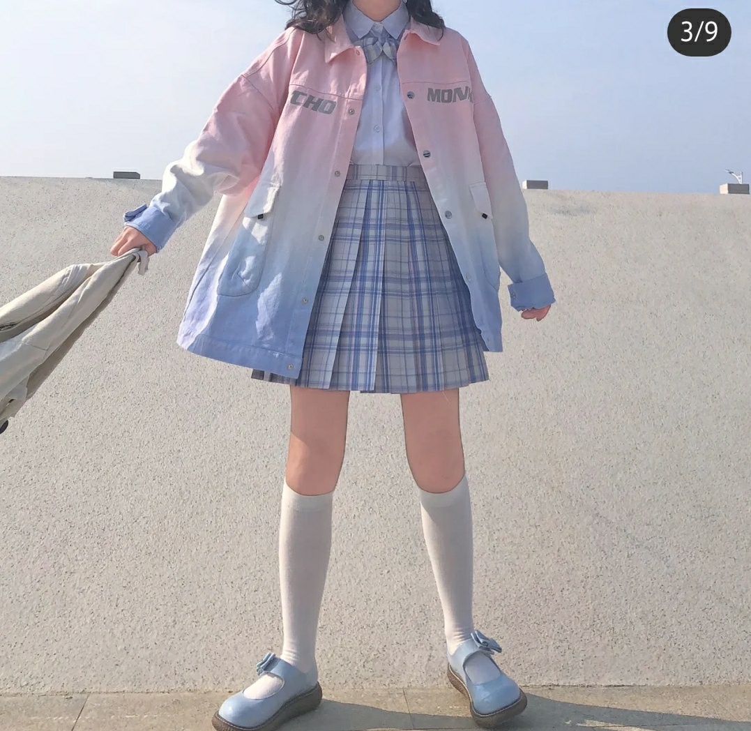 这么酷酷的一件渐变色外套硬生生被我搭成了软妹穿搭日.上半身看着酷酷的下半身却是软妹hh.