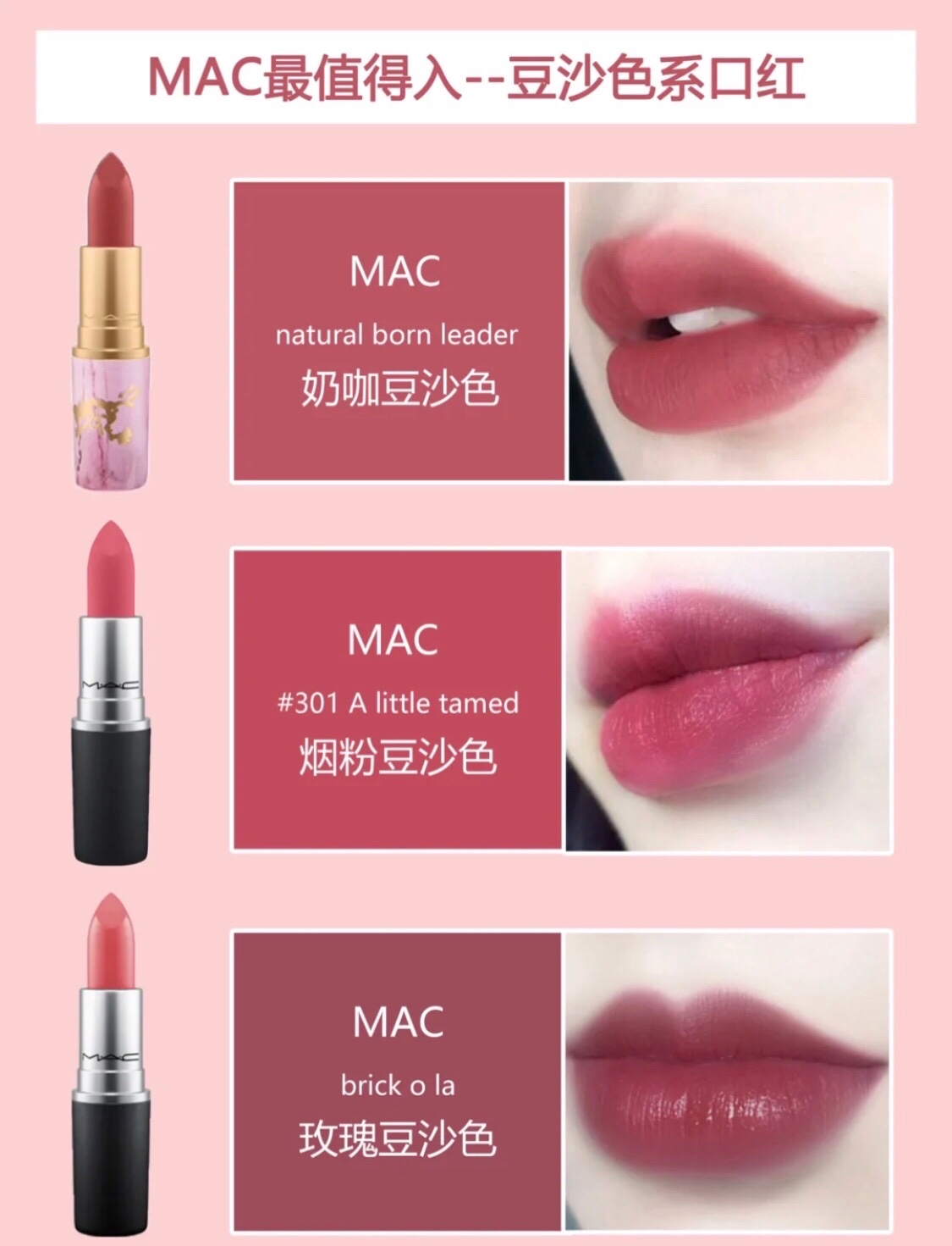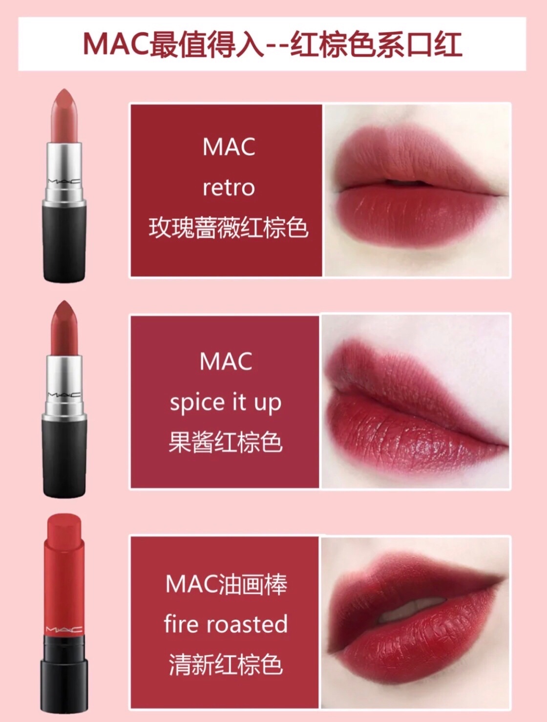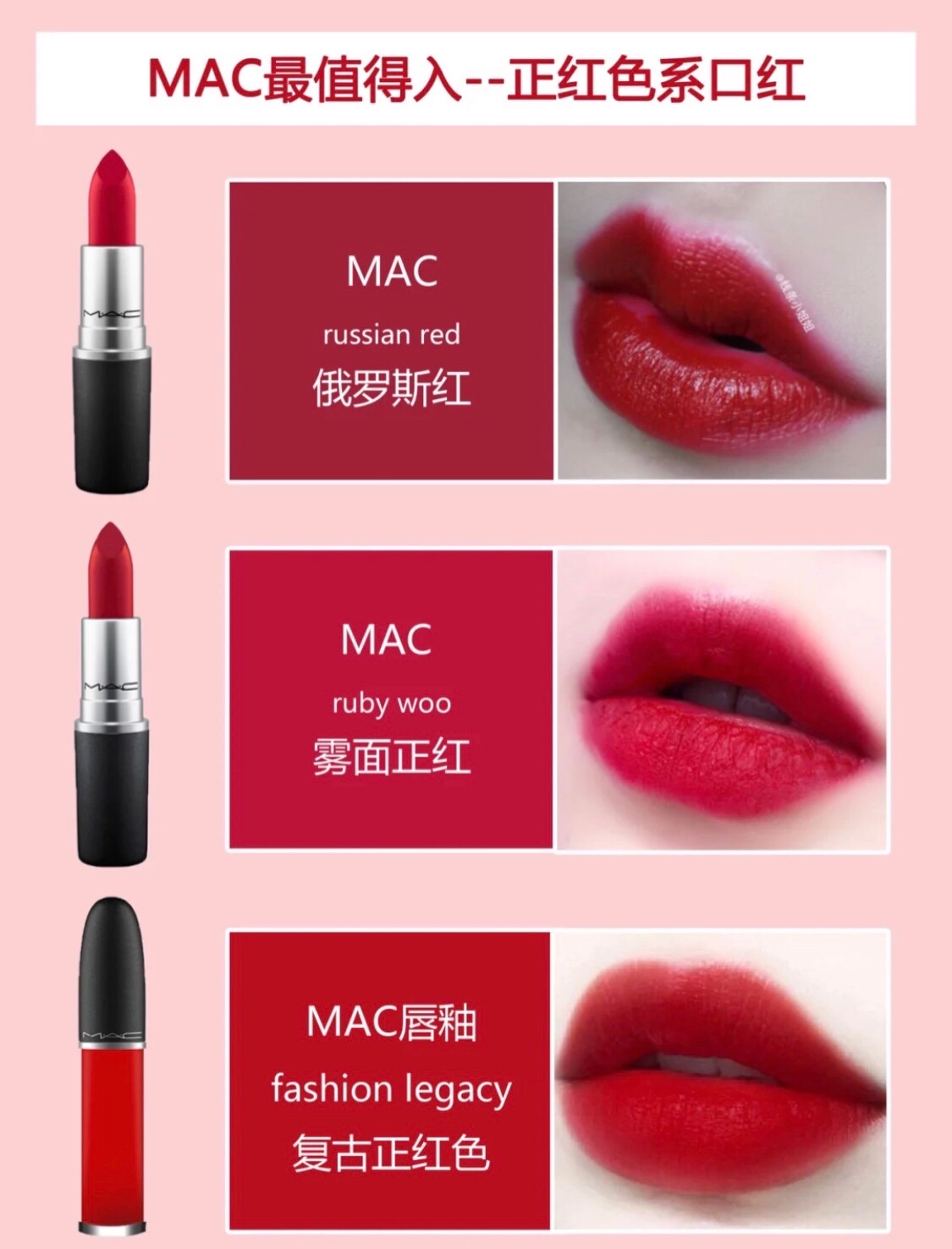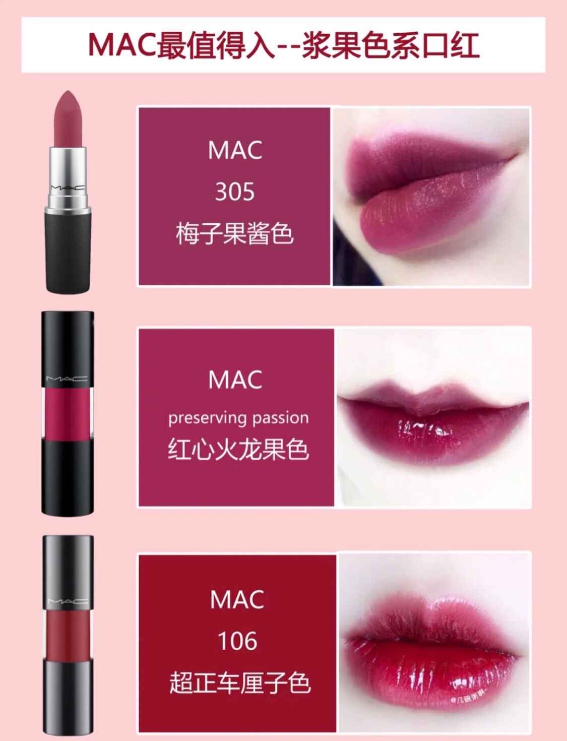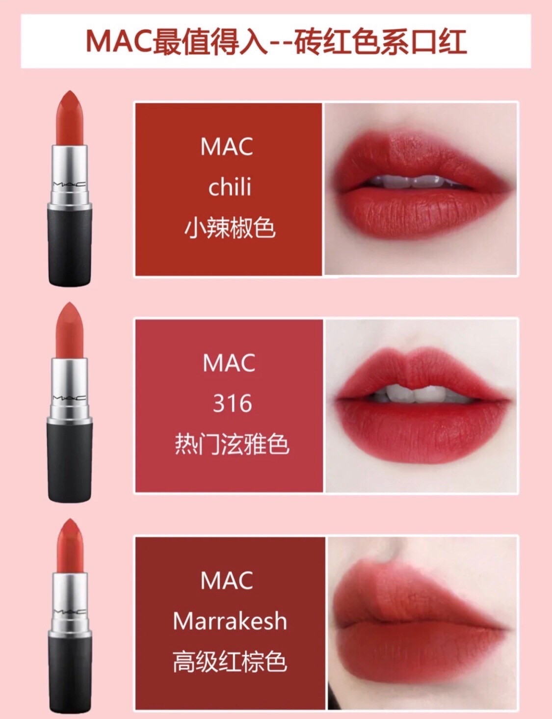今天和大家分享MAC不同色系超美热门色号~按照色系区分,清晰明了~