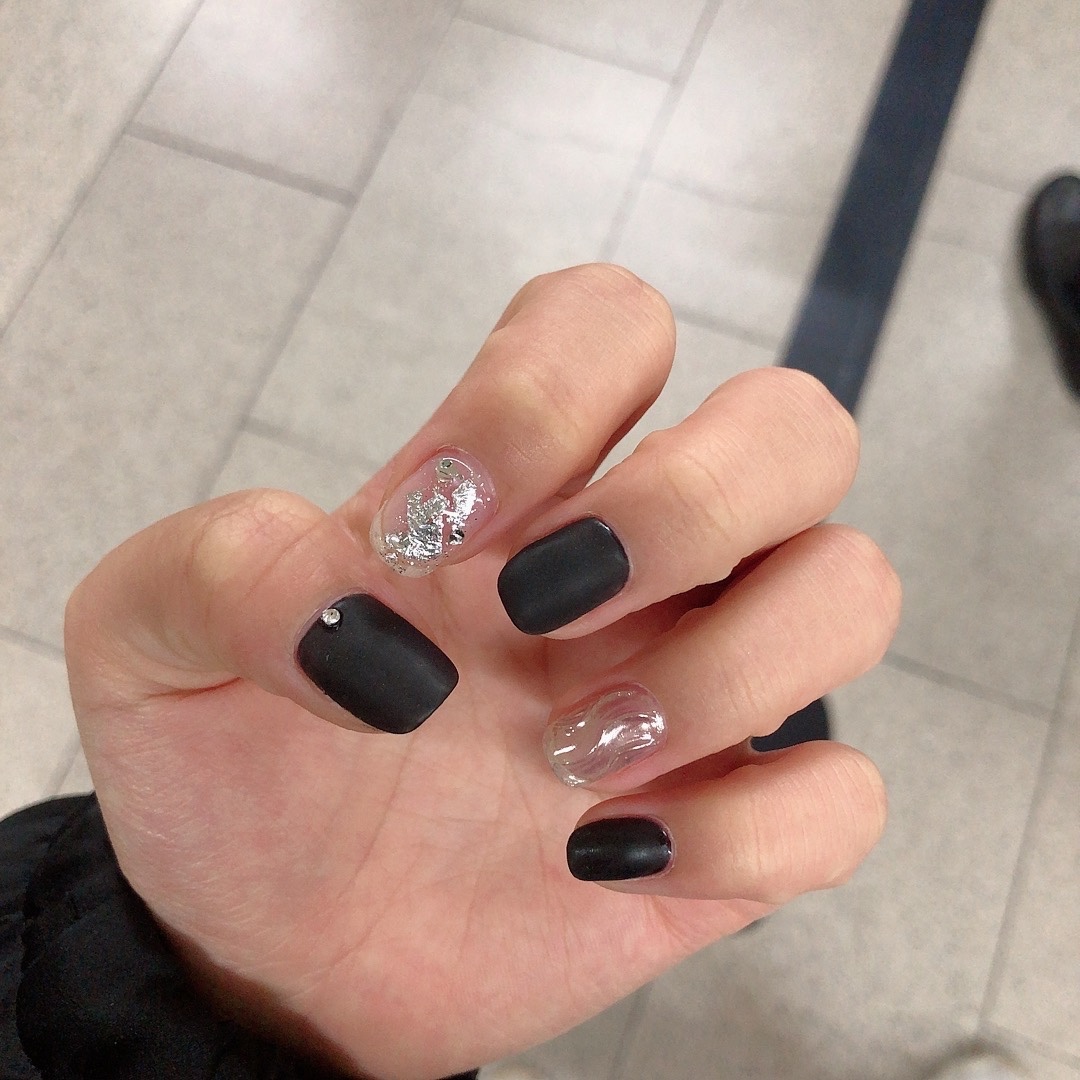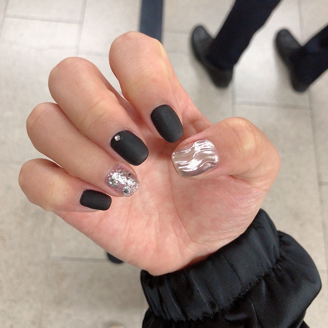 #显白美甲##磨砂##黑色美甲#黑白配,爱了爱了🧚🏻♀️