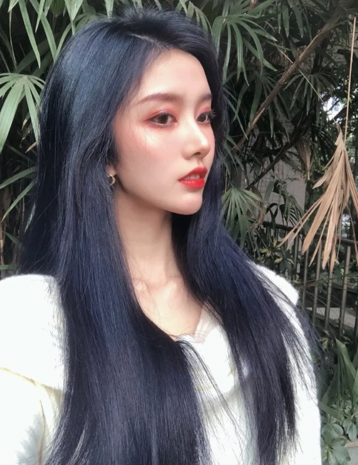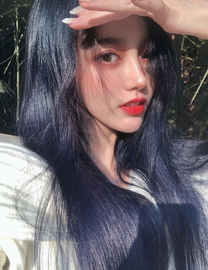 烟蓝色,是那种带一点灰的雾霾蓝,,比那种深蓝色,发色显白,也-美图社区-美图秀秀