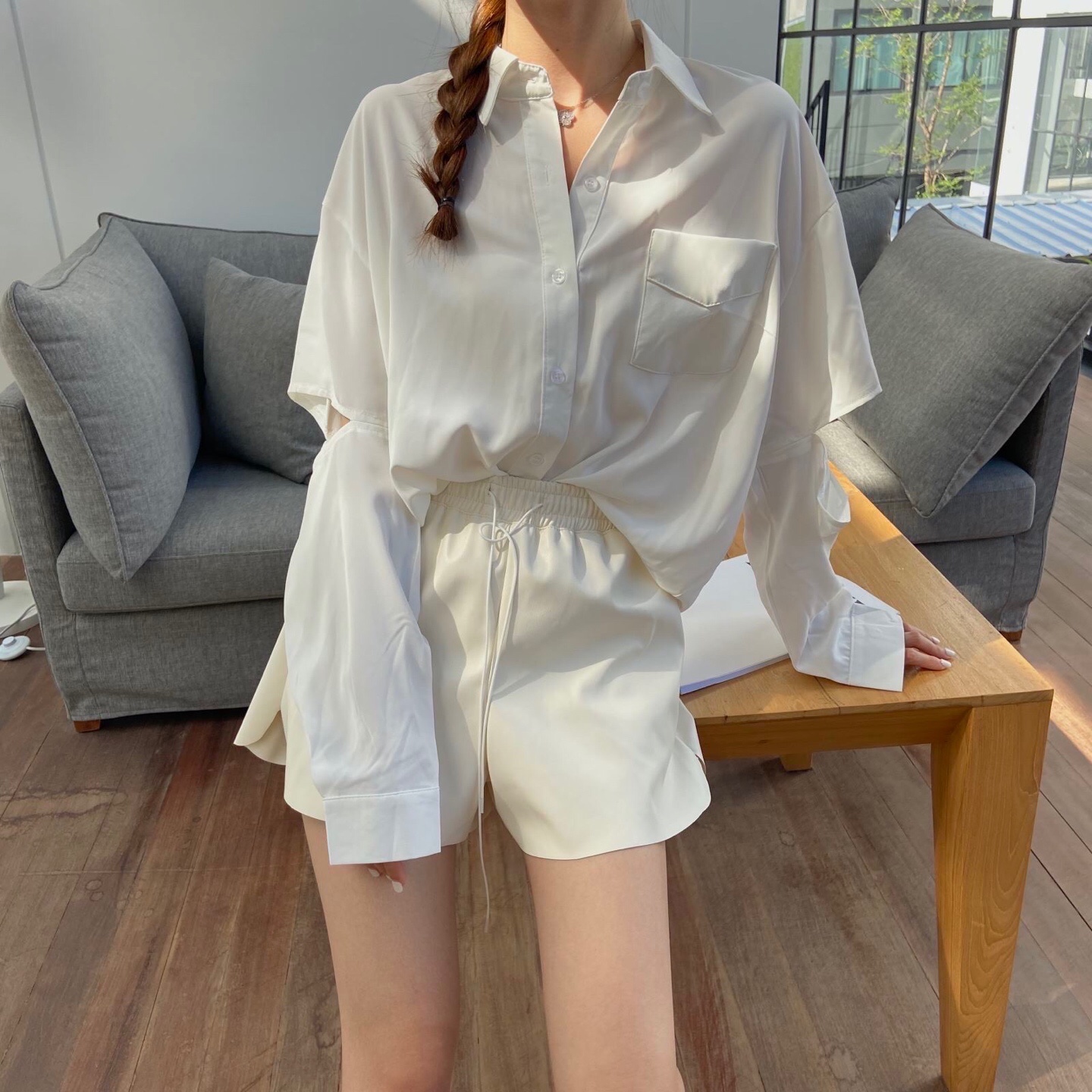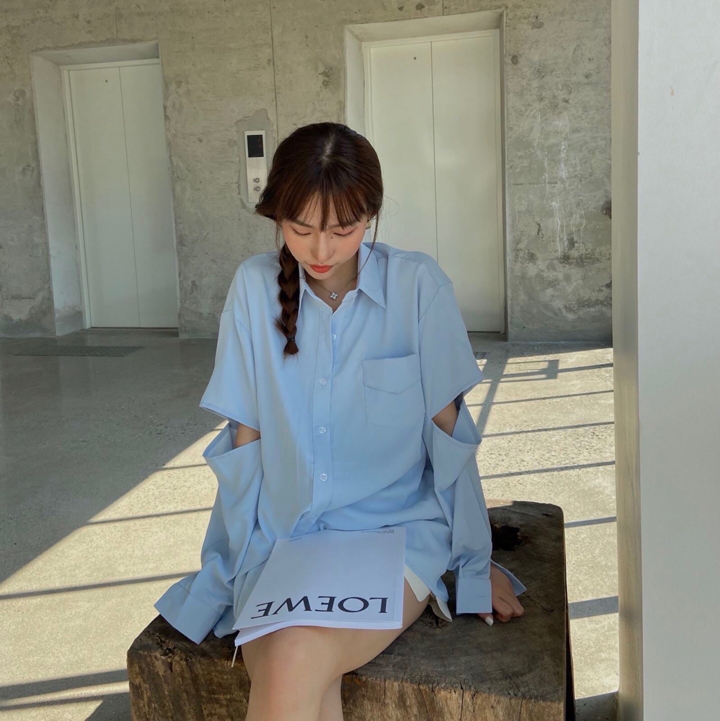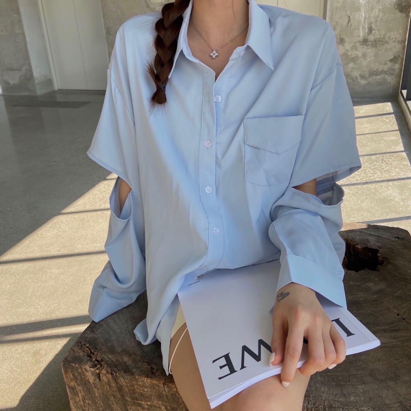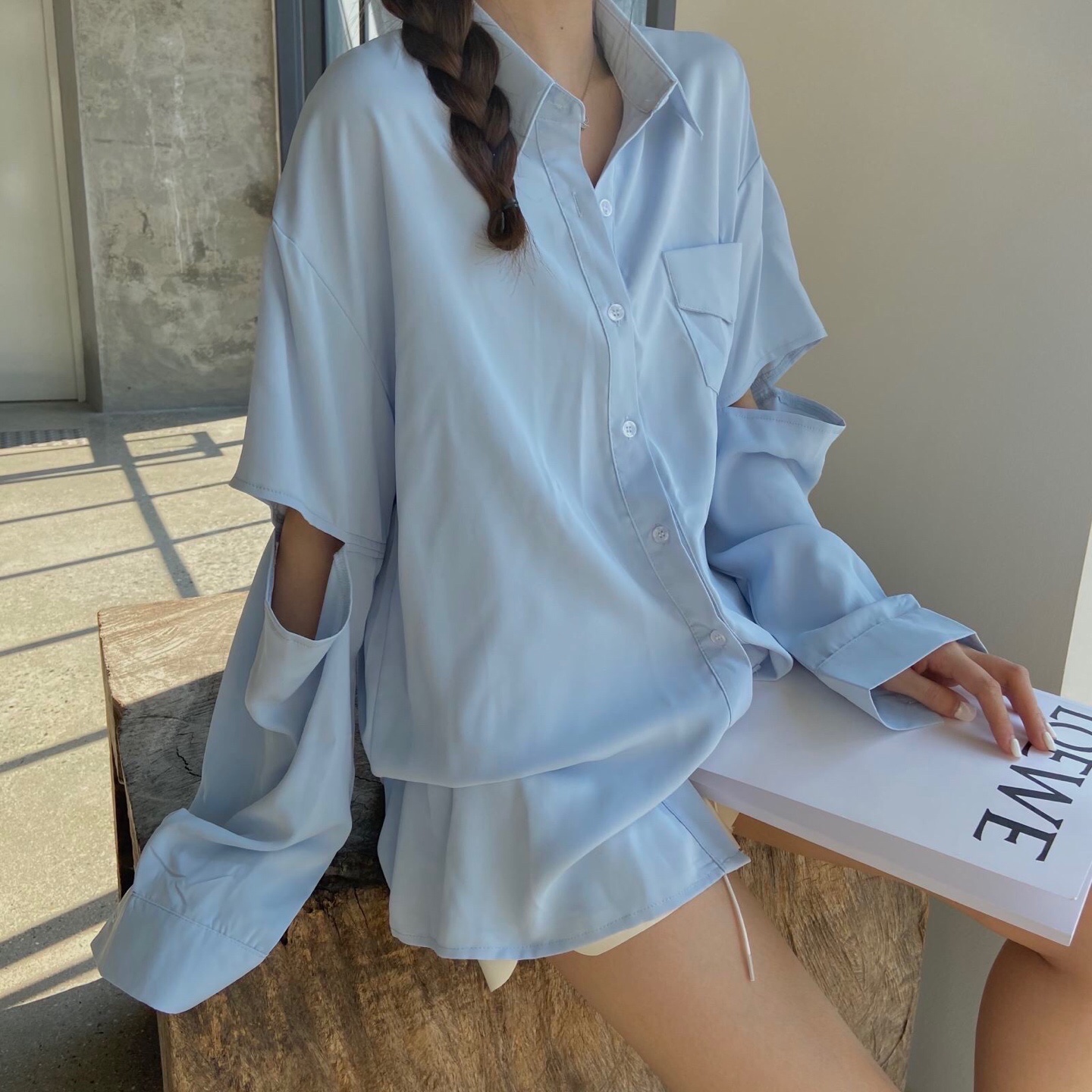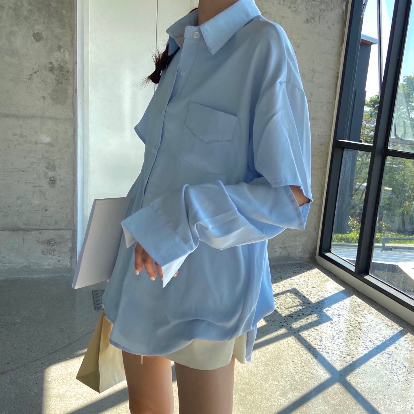 个性设计袖子开洞衬衫#韩系穿搭##学生党也买得起##炸裂吧少女心#