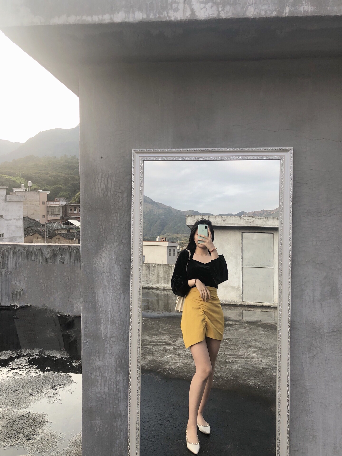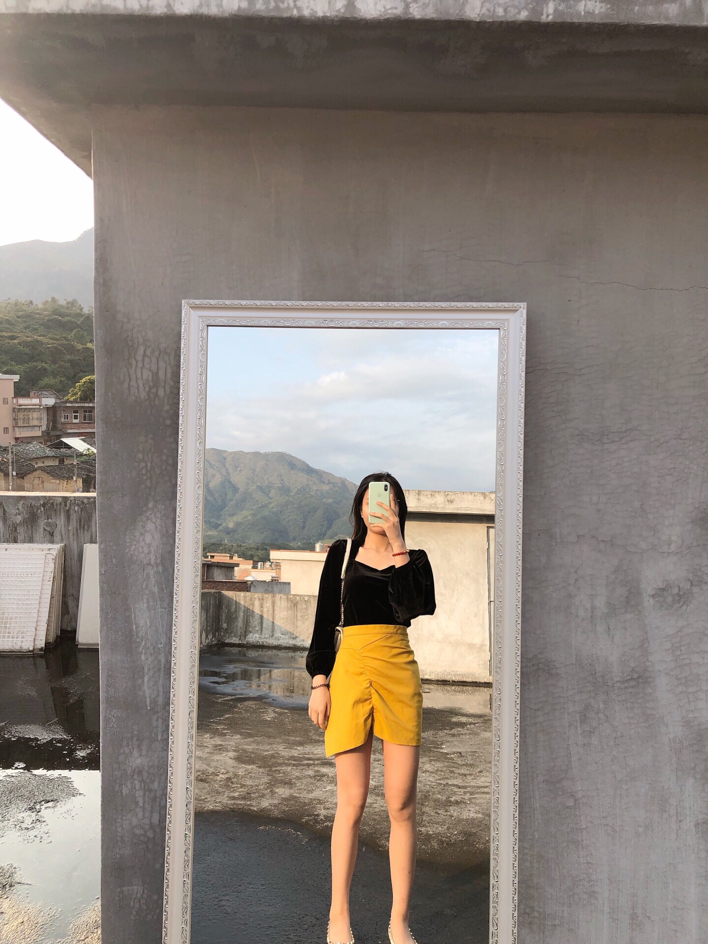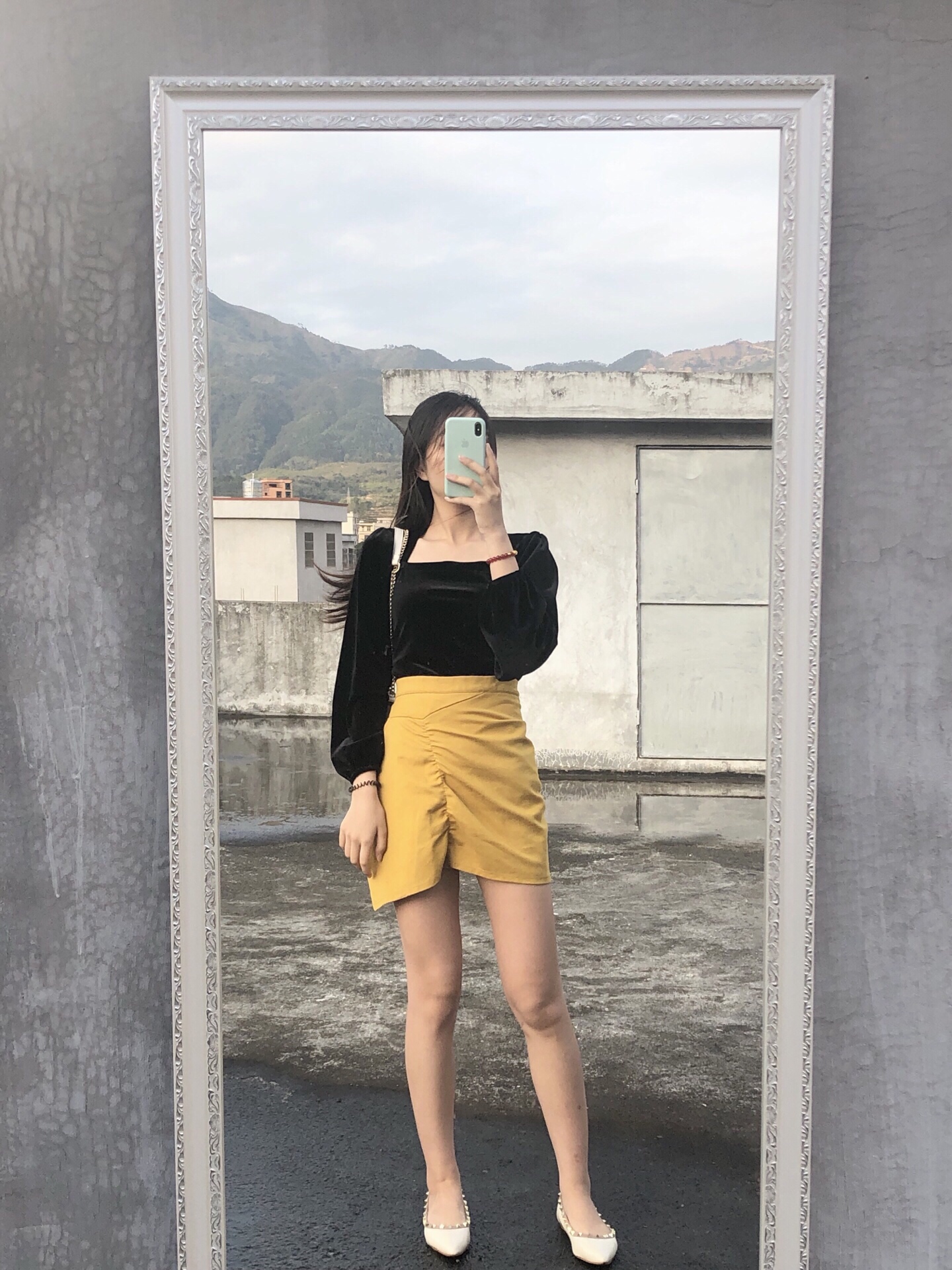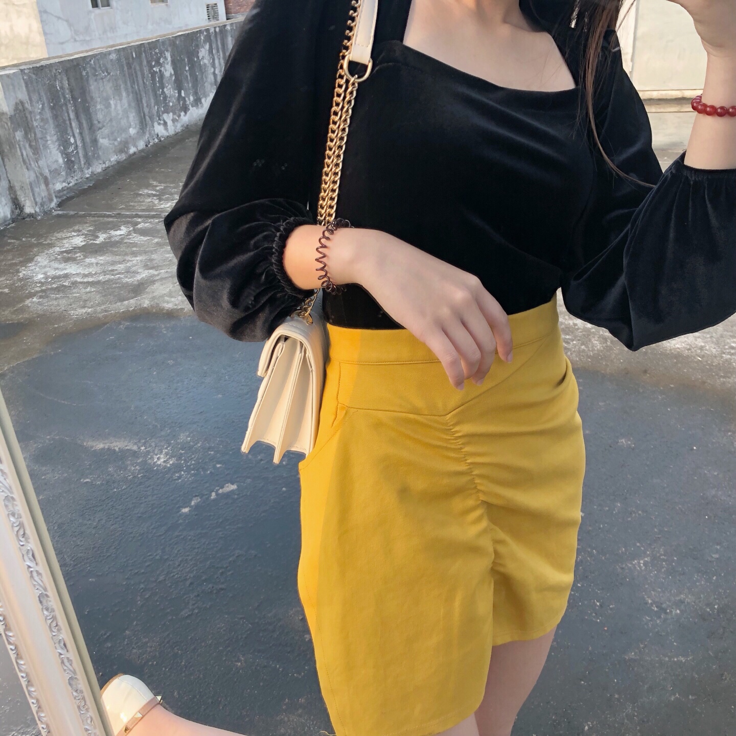 黑色上衣搭配黄色短裙绝配色 不失优雅大方得体