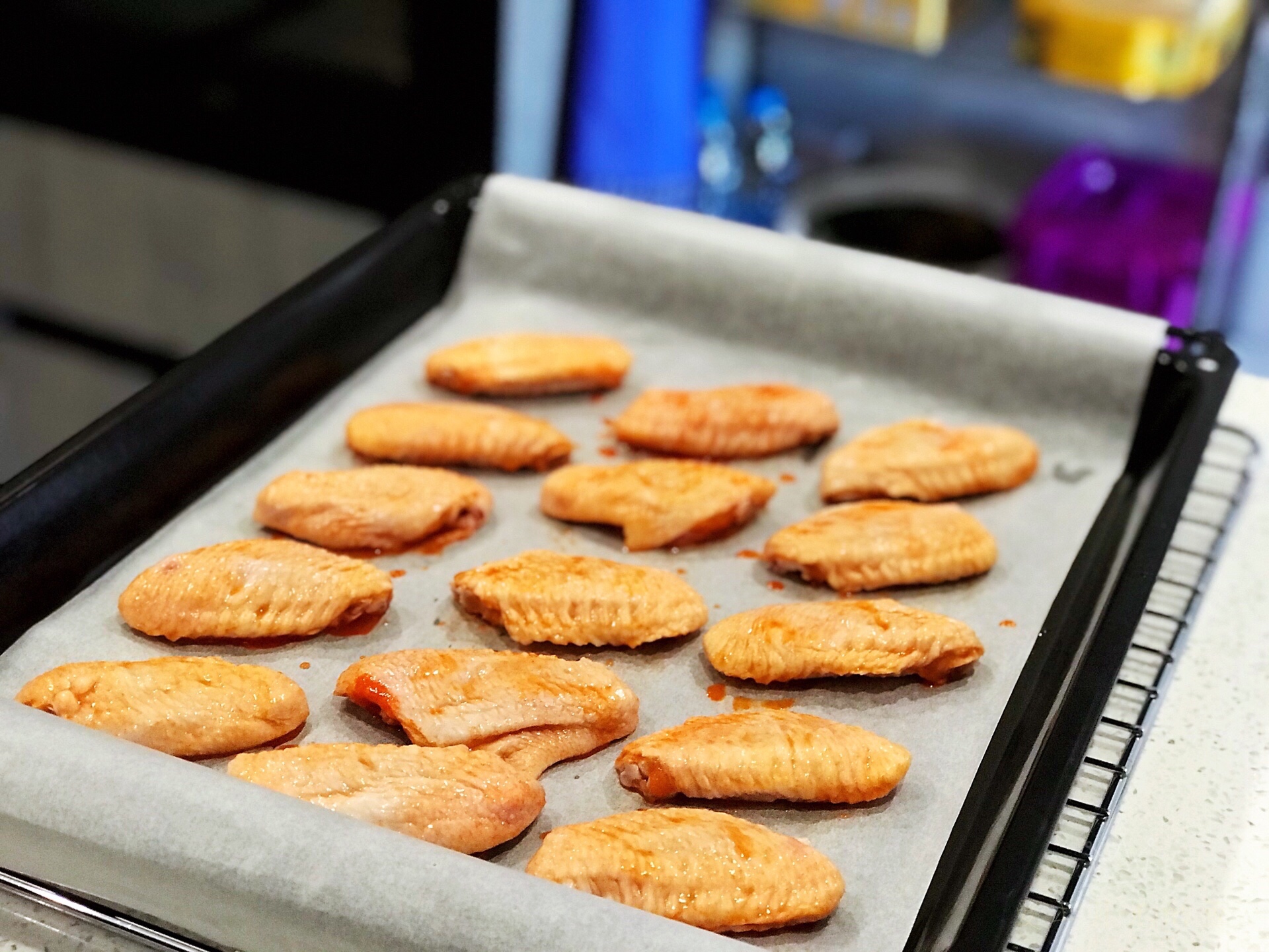 昨天腌制好的鸡翅,刚刚好放一盘,按顺序摆放好,烤箱预热180度烤制20分钟,美味的奥尔良鸡翅口感鲜嫩多汁。#美食#