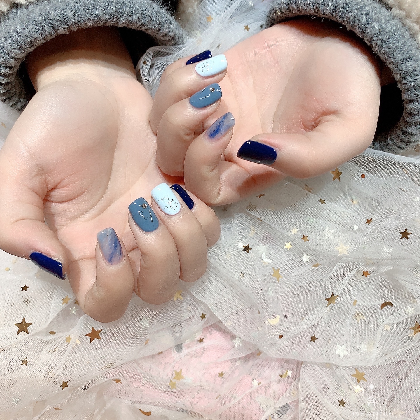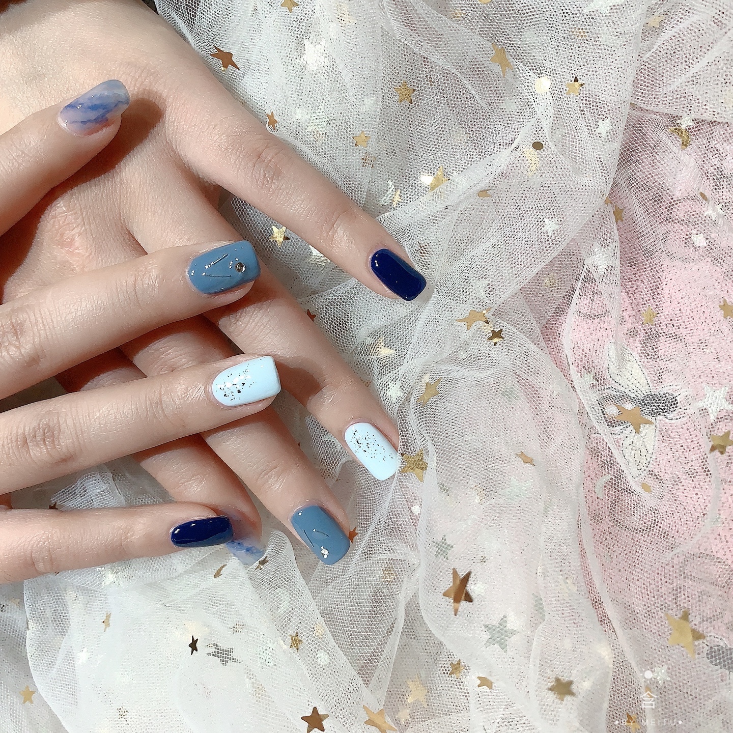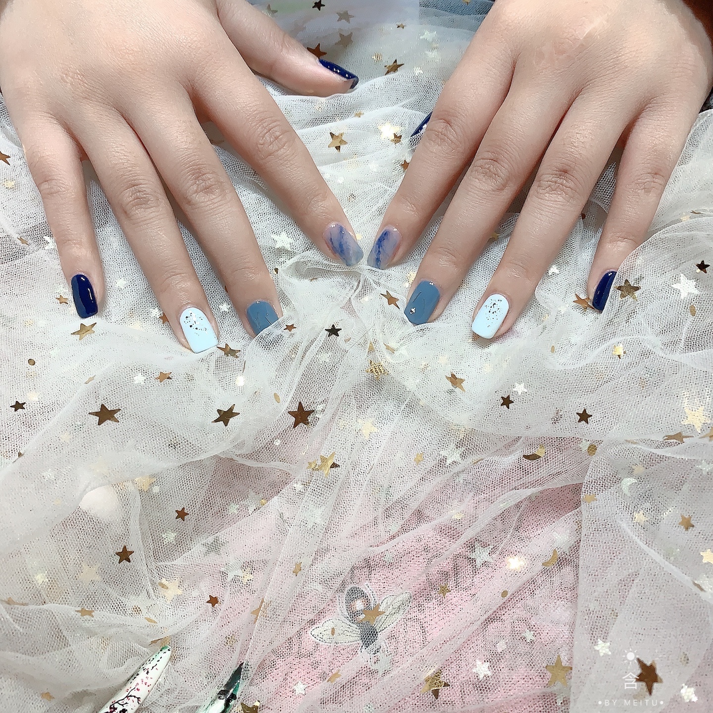 感觉像天空的颜色,美美哒~美甲控美甲跳色美甲蓝色美甲显白美甲-美图社区-美图秀秀