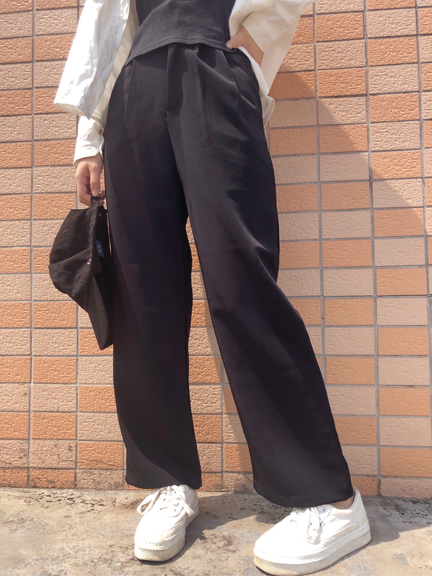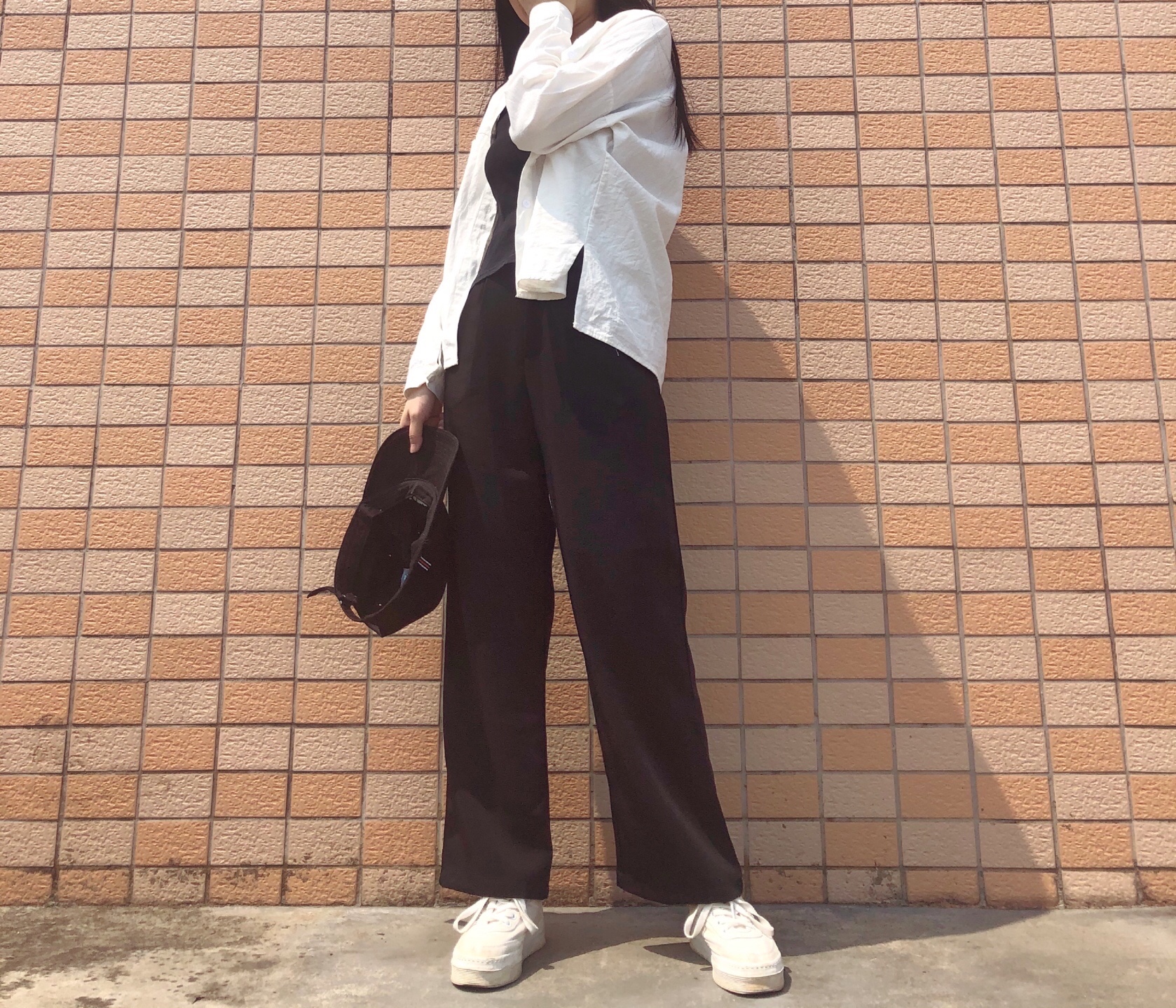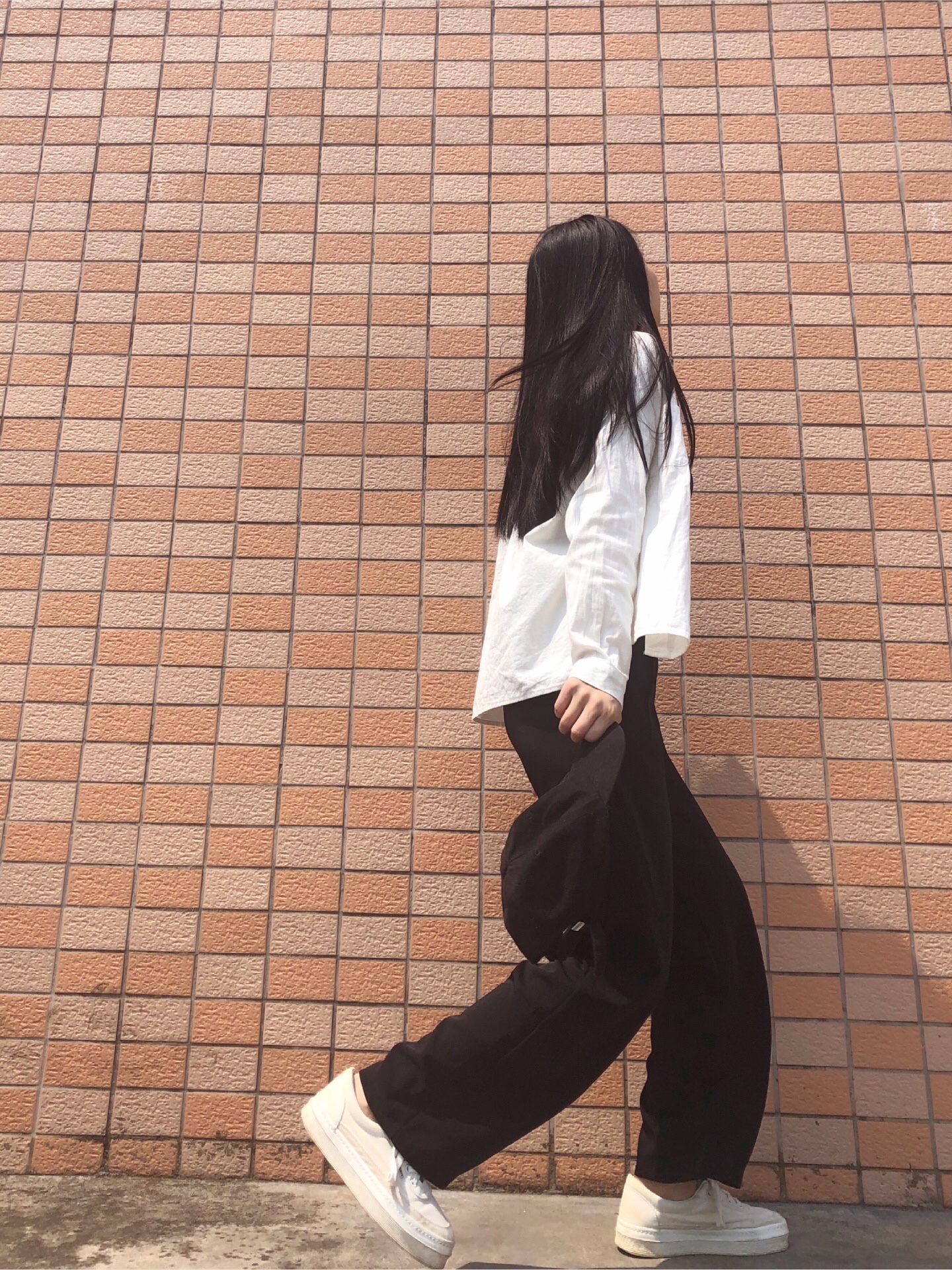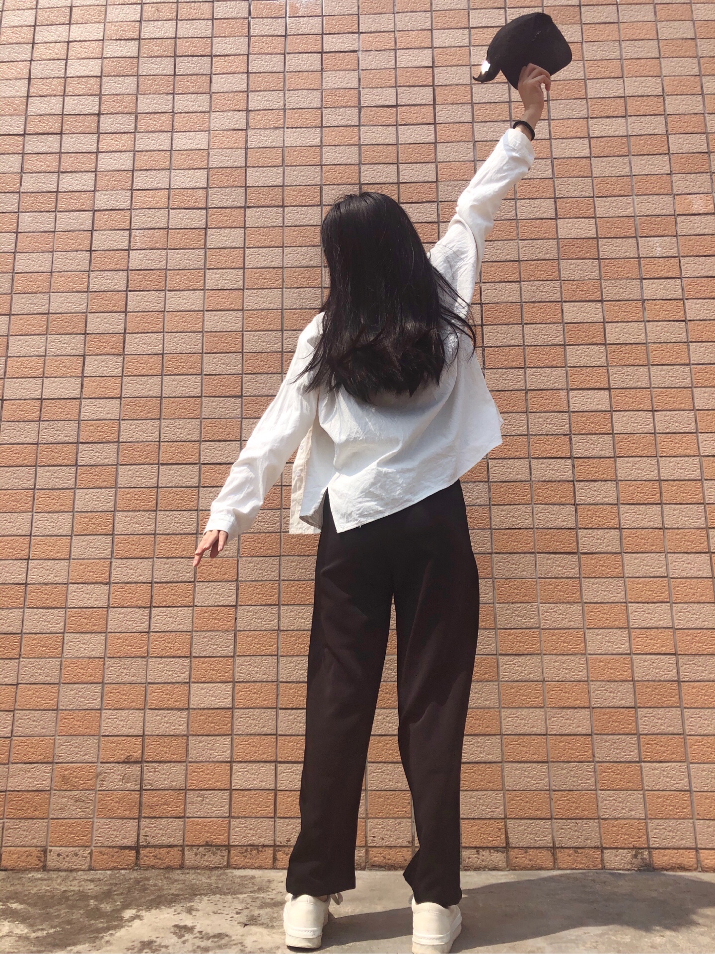 白衬衫➕黑色吊带配西装裤简直不要太酷了,姐妹们一起拍照叭😝#宅家拍大片#