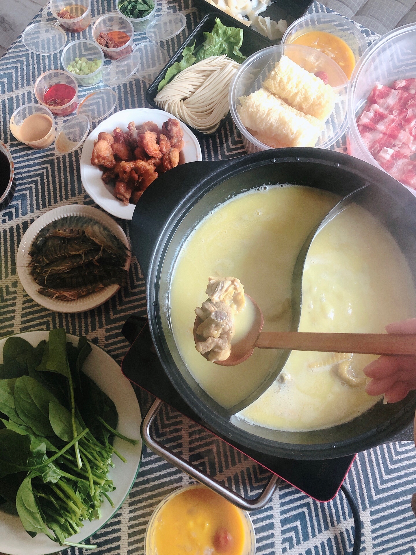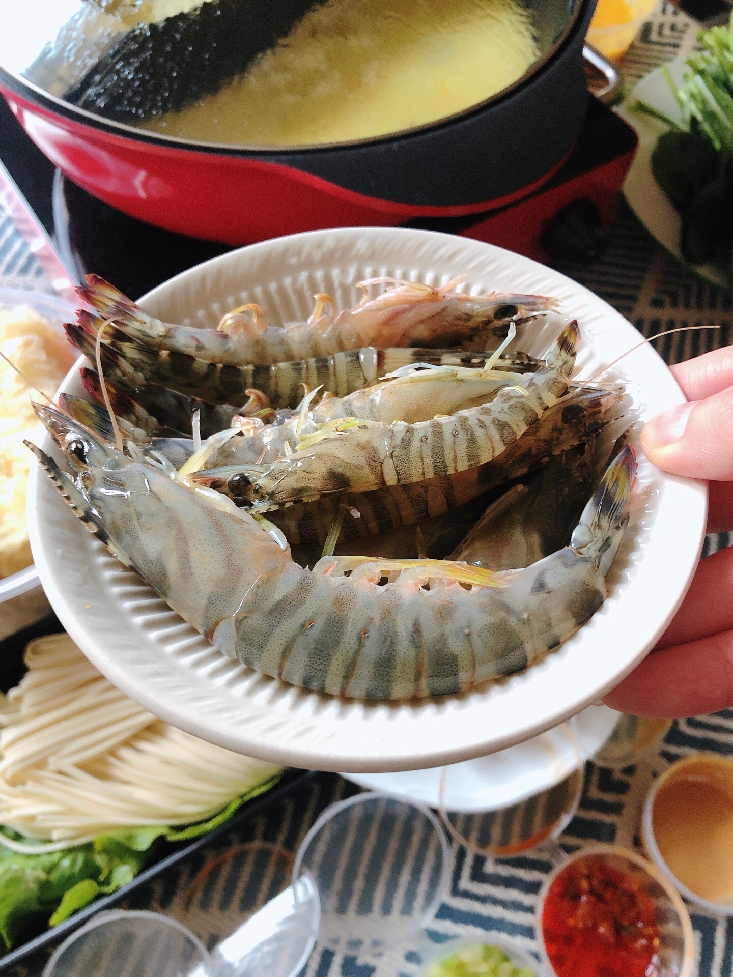特别说下斑节虾,太新鲜了叭!我感觉下锅的还活着hh,虾壳特别好剥落,鲜🦐怎么吃都好次!