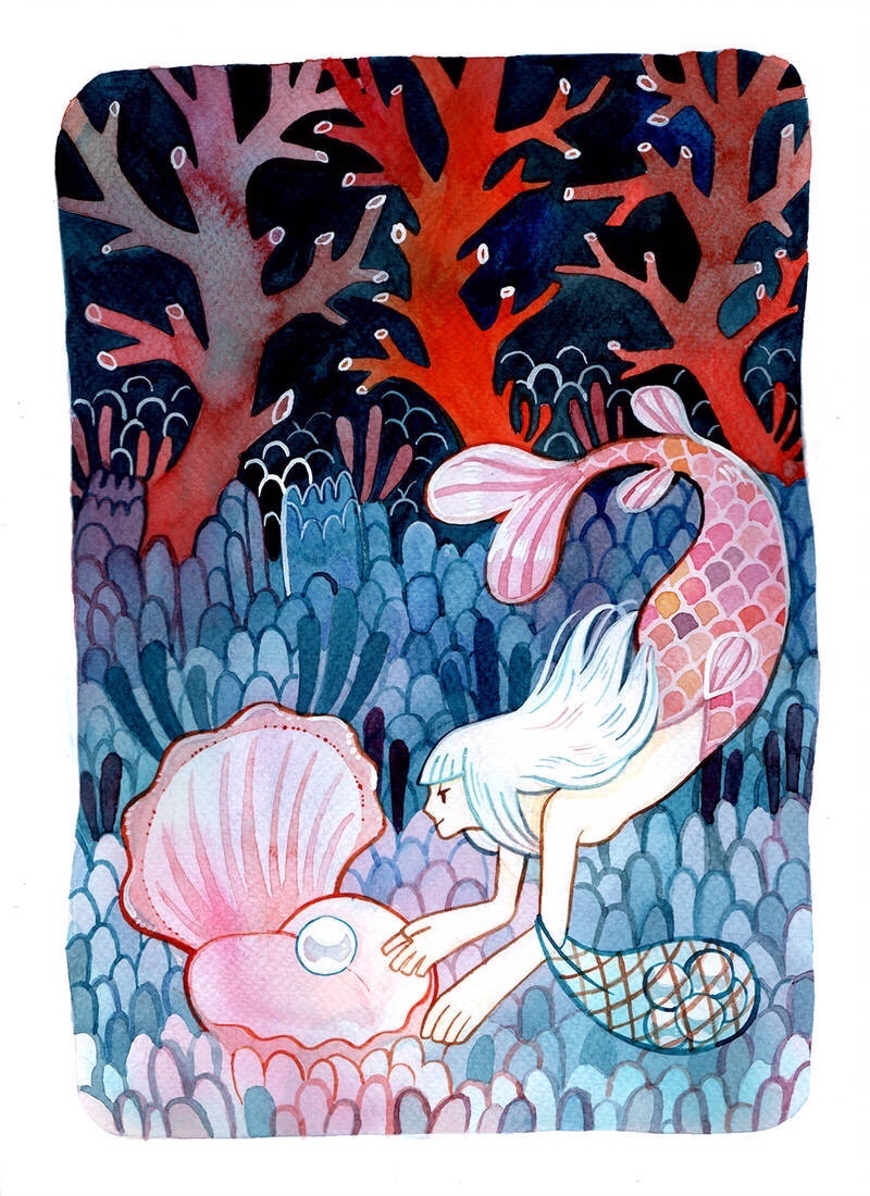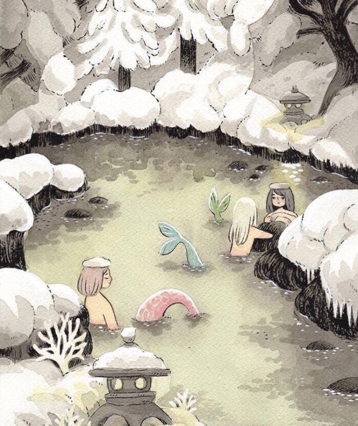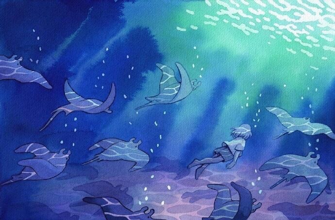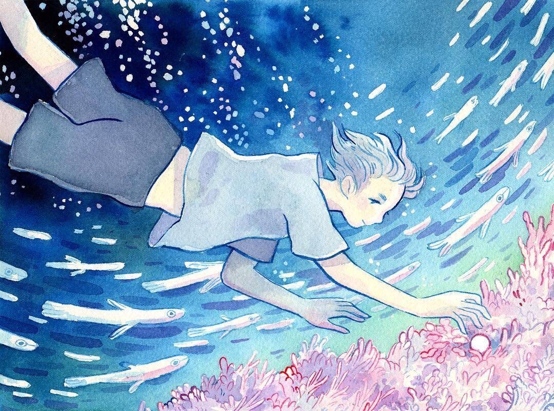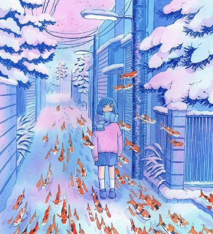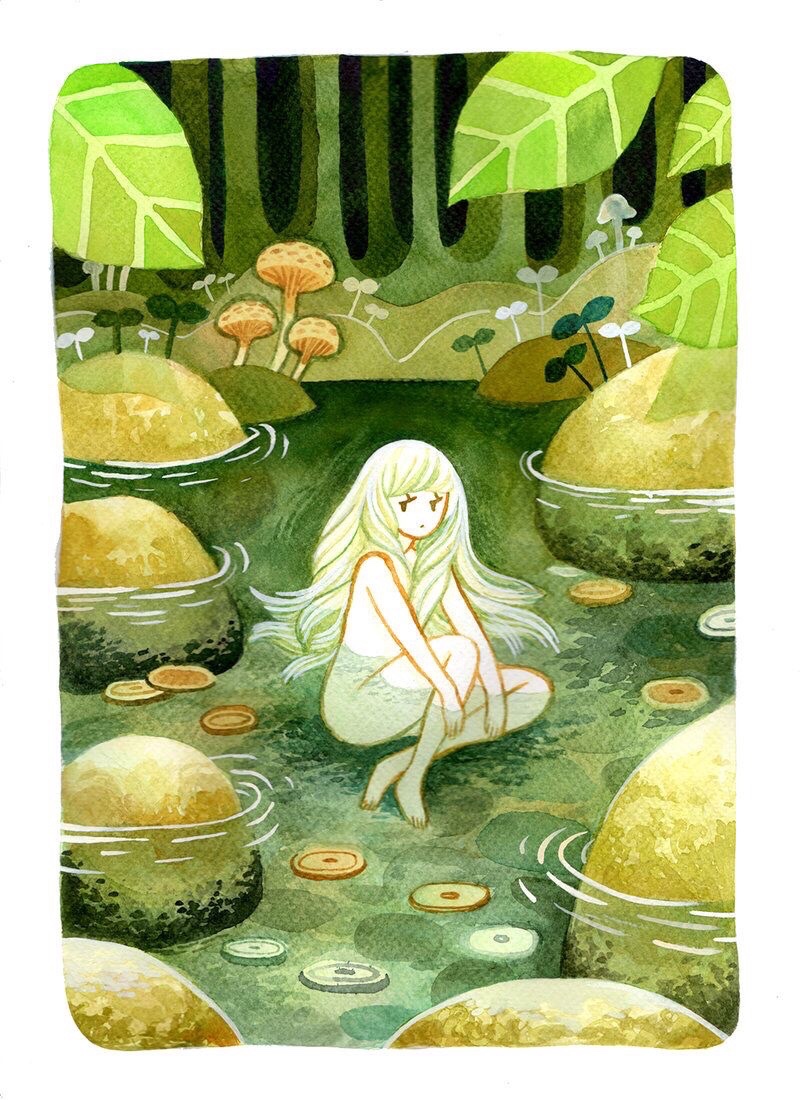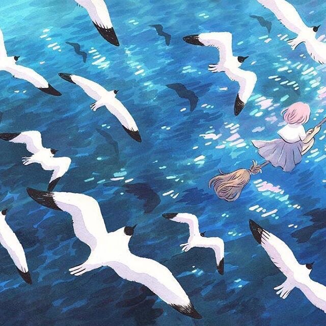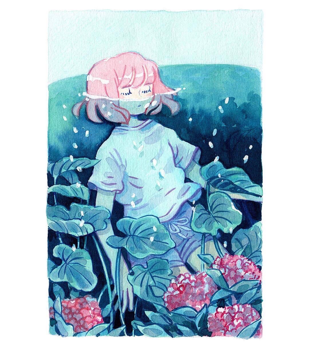 她的作品有着细腻的画风,配色非常的温柔。画风很治愈,每一幅作品都让人觉得非常舒服,混合了墨水和水彩来创作她的插画,作品主题多数以脑洞且美好来展开,