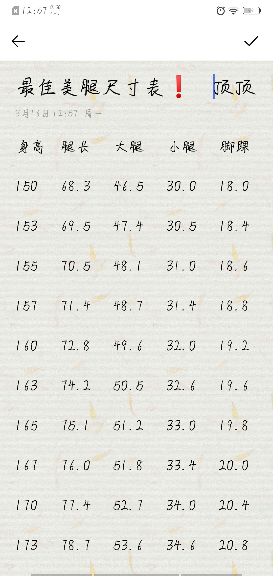 6⃣小腿围:在小腿最丰满处。小腿围较大腿围小20厘米