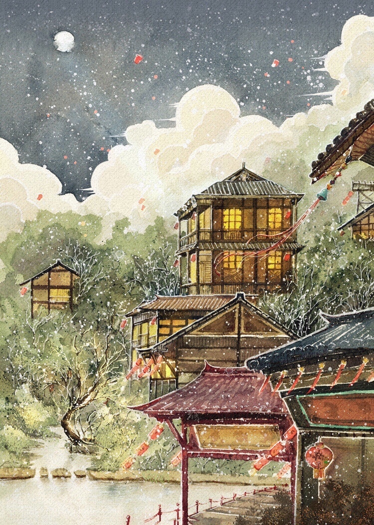 好看的古风风景插画~