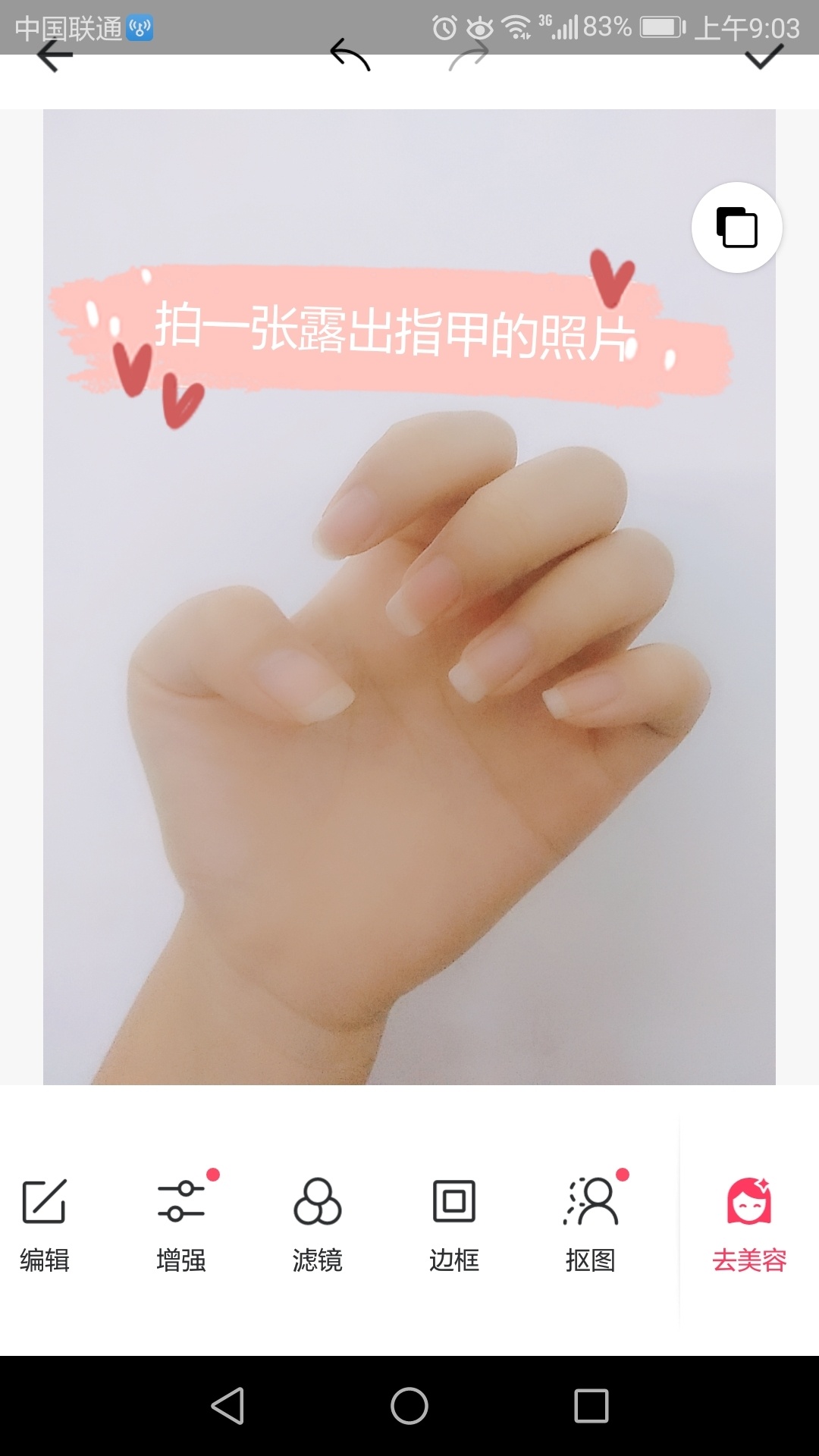 第一步:拍一张露指甲的照片