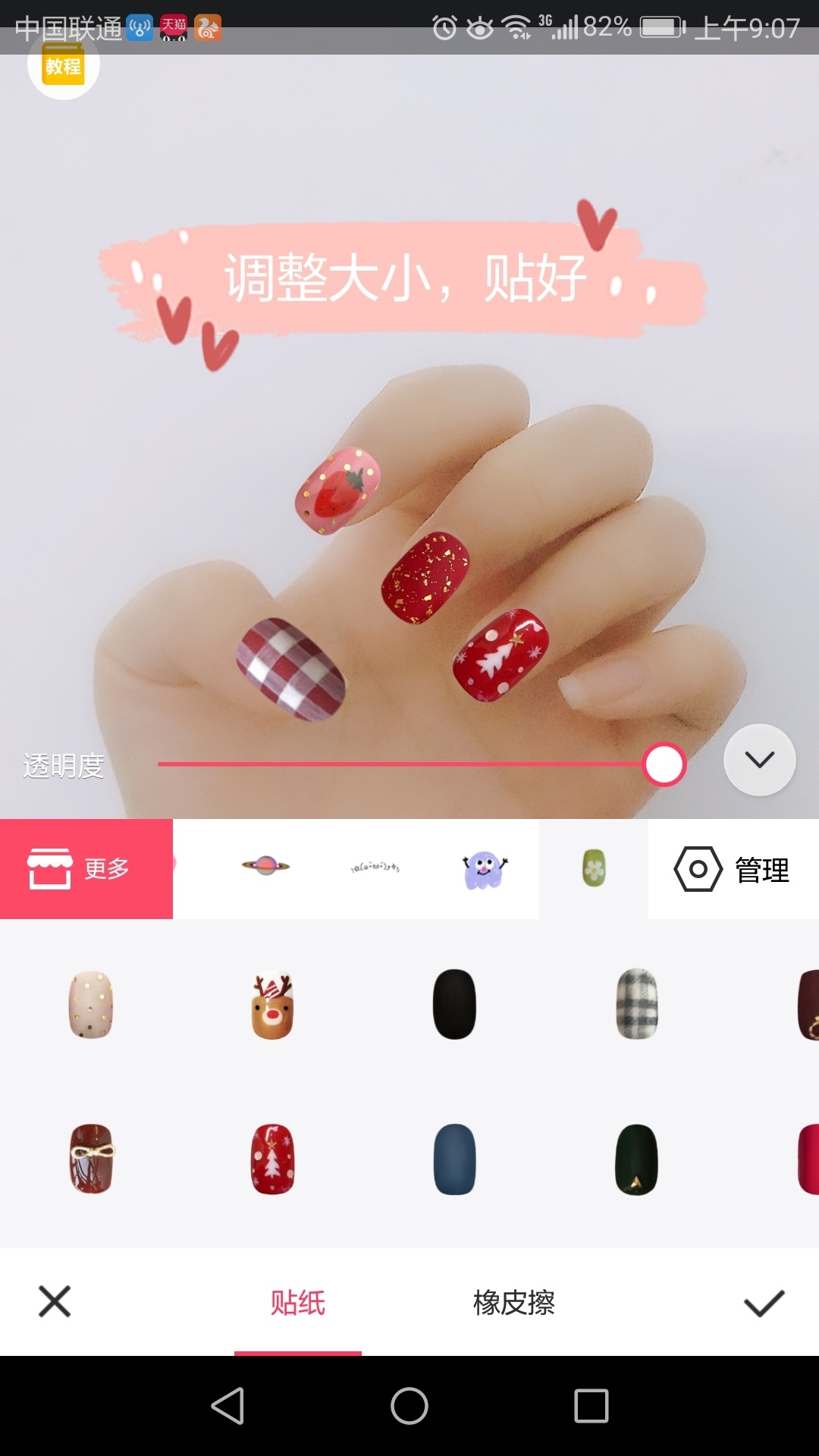 第三步:把贴纸调整合适大小贴在手上,完成保存