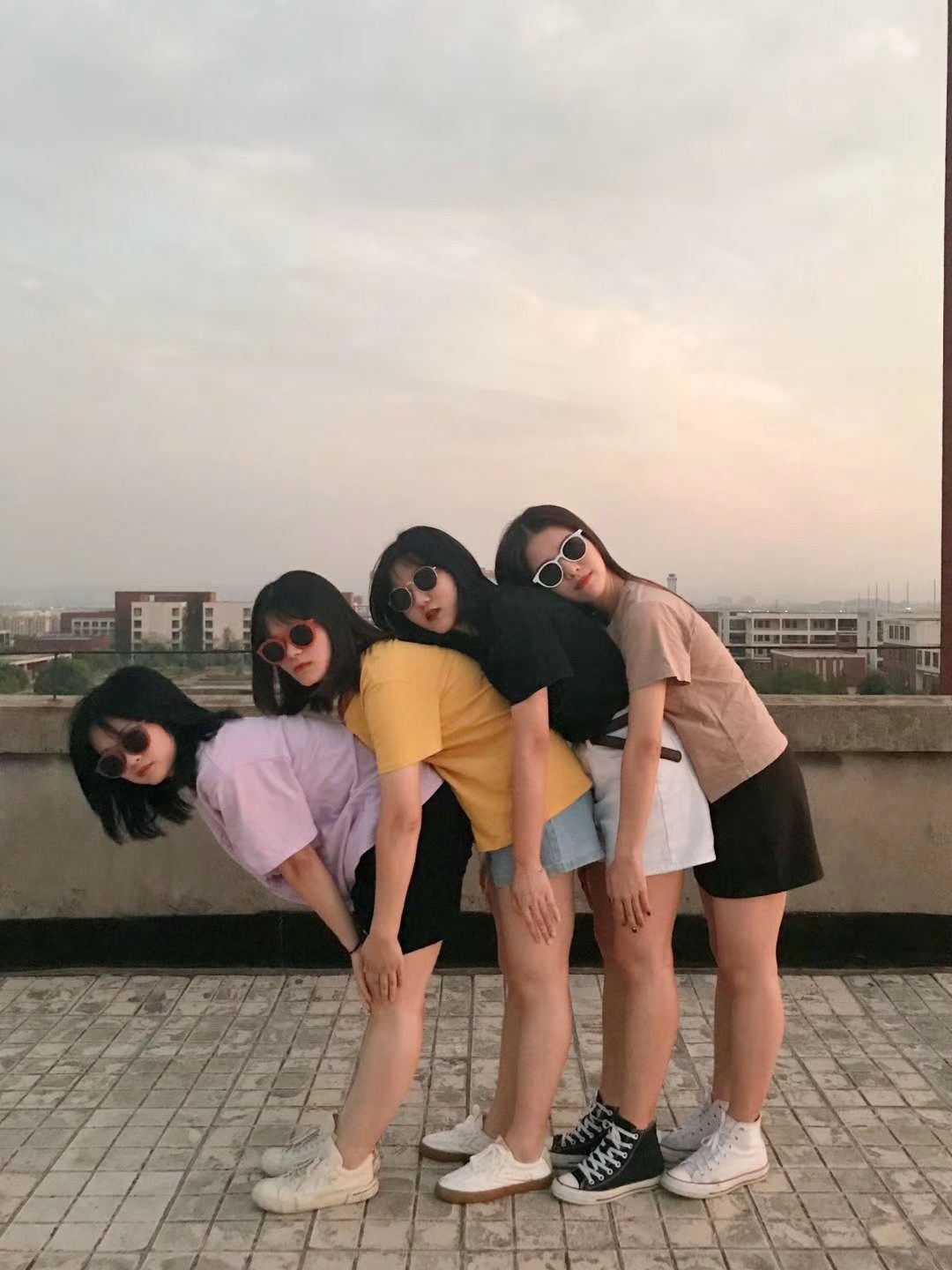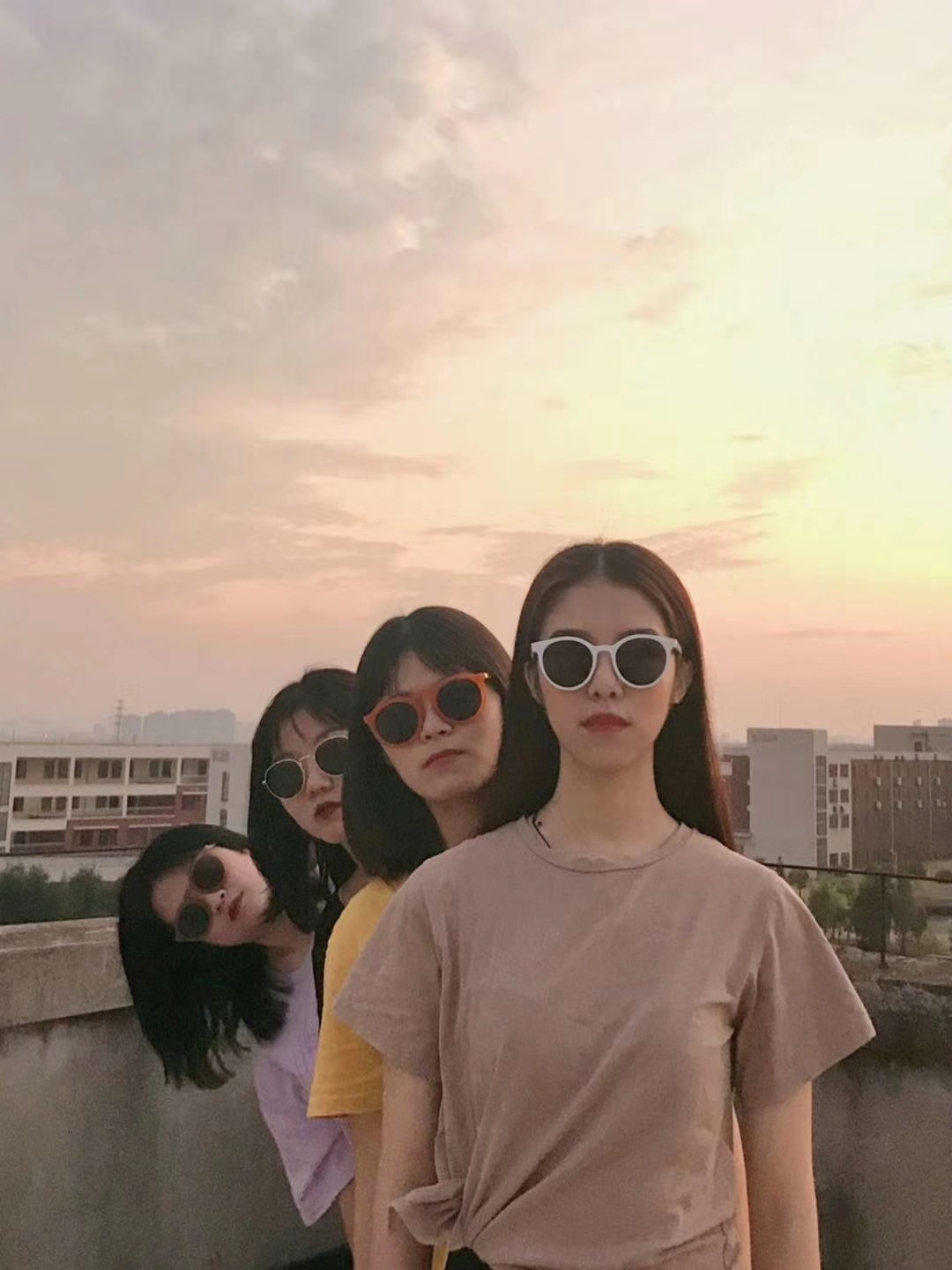我们是在天台拍的,那天太阳快下山了所以夕阳很好看,拍的时候最好不要有表情,墨迹大家可以选择更加有特色的,我和我朋友的墨镜就是谁便买的普通墨镜啦