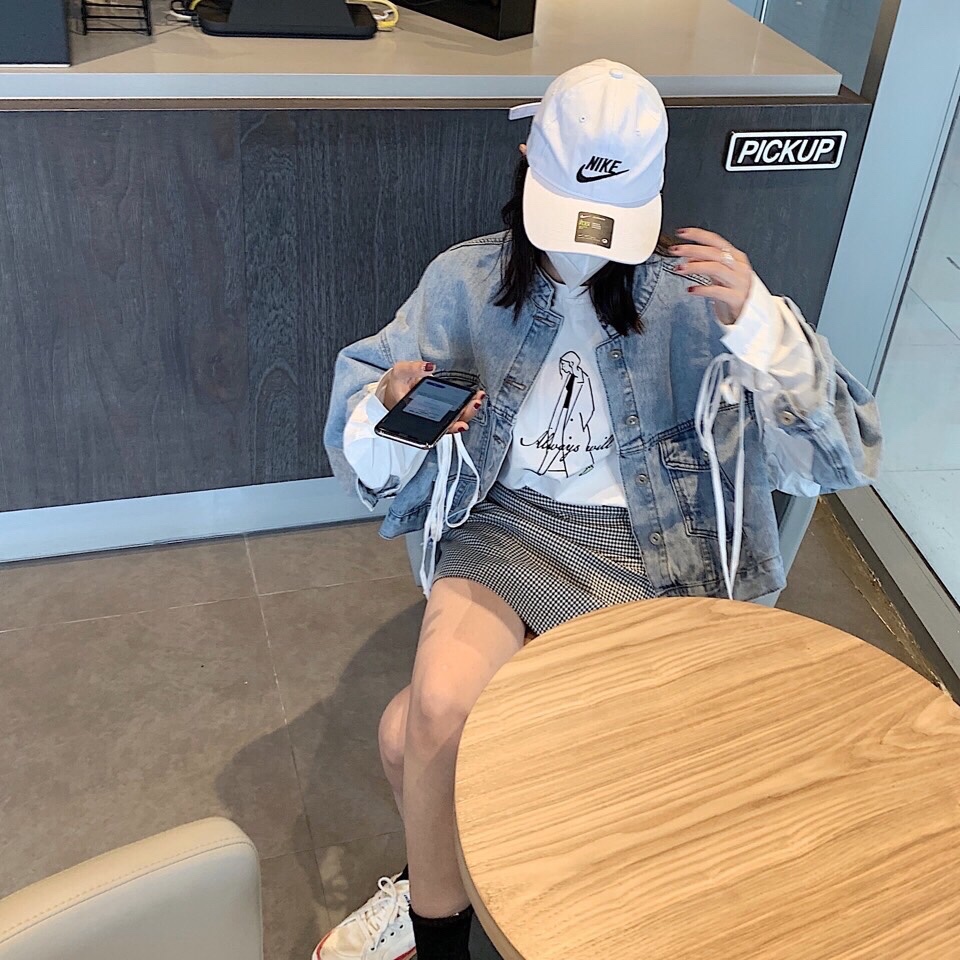 超级有设计感的牛仔外套 上身分分钟秒杀别人哈哈哈 短款版型 超级显高 内搭短袖也是我最近很爱的Tee 简单好搭配