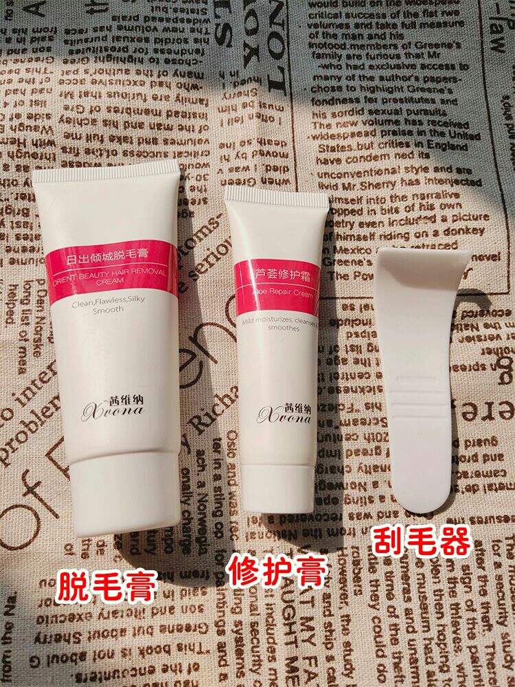 是我上个月种草的茜维纳脱毛膏,刚好家里的脱毛膏用完了,也要囤新的了,就买了一套,里面有一个脱毛膏、一个修护膏、一个刮毛器。