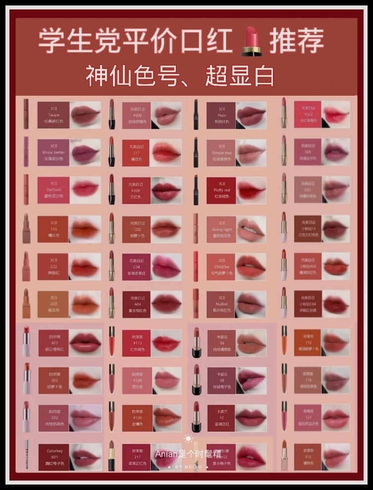 学生党超爱的平价口红💋黄皮显白!热门口红💄色号