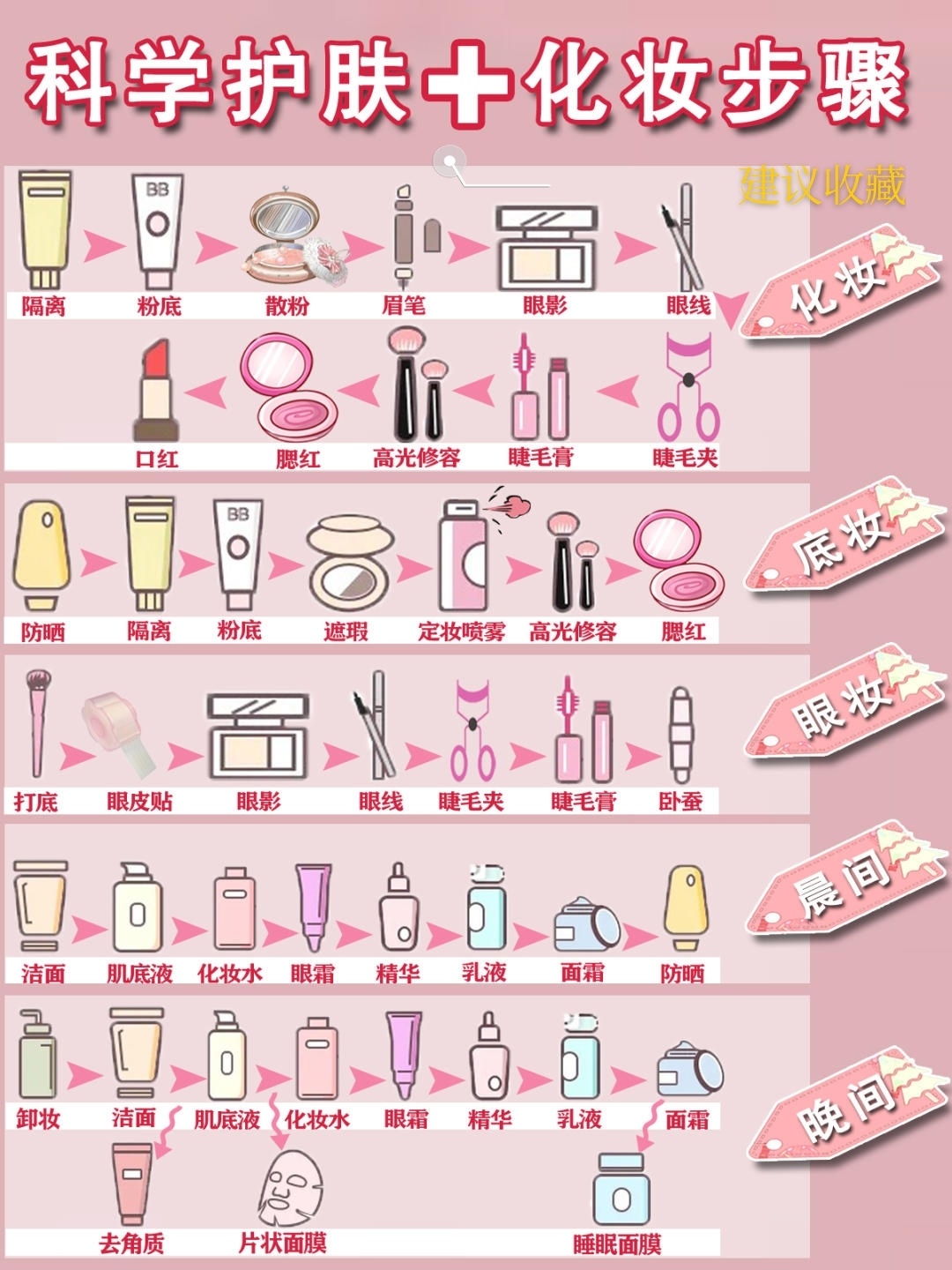 💃刚刚开始学习护肤➕化妆的宝宝,掌握正确的护肤以及化妆步骤是很重要的,今天正好整理一些化妆 护肤技巧,和大家分享........