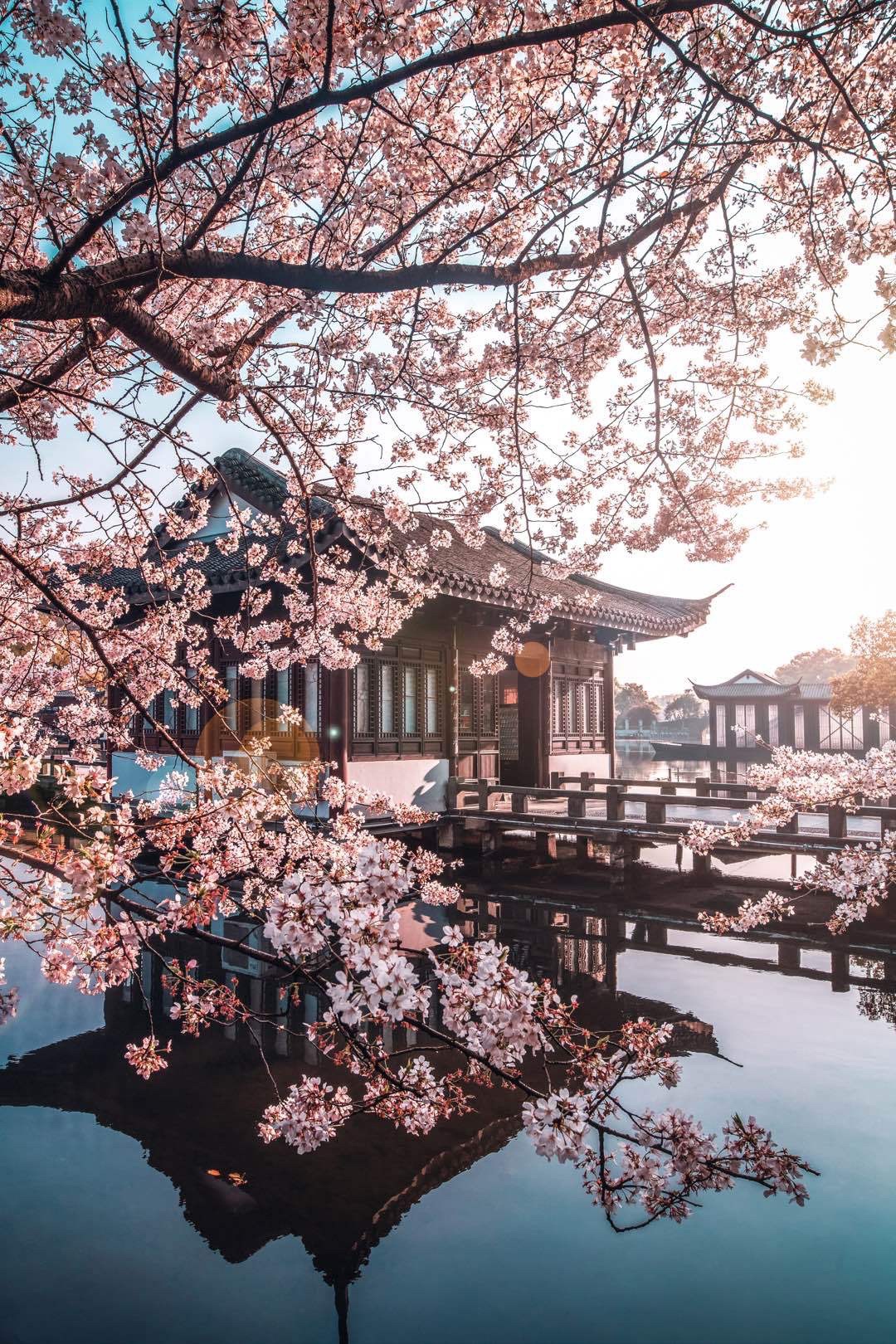 樱花在著名的西湖景点,曲苑风荷的内部,正值三月,这里的樱花开的非常茂盛。不用特意去寻找,所有的美景已经遍布在眼前了。