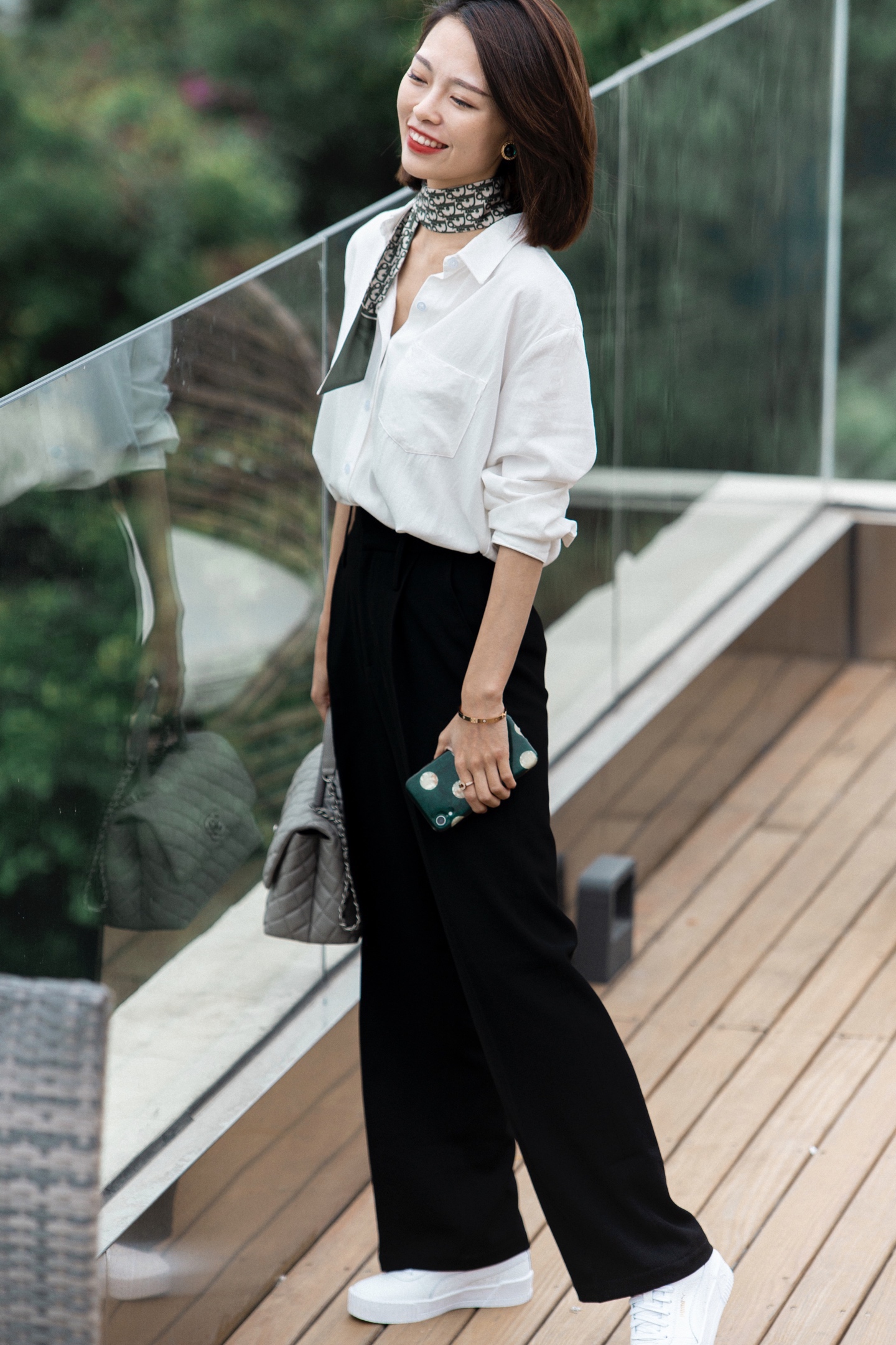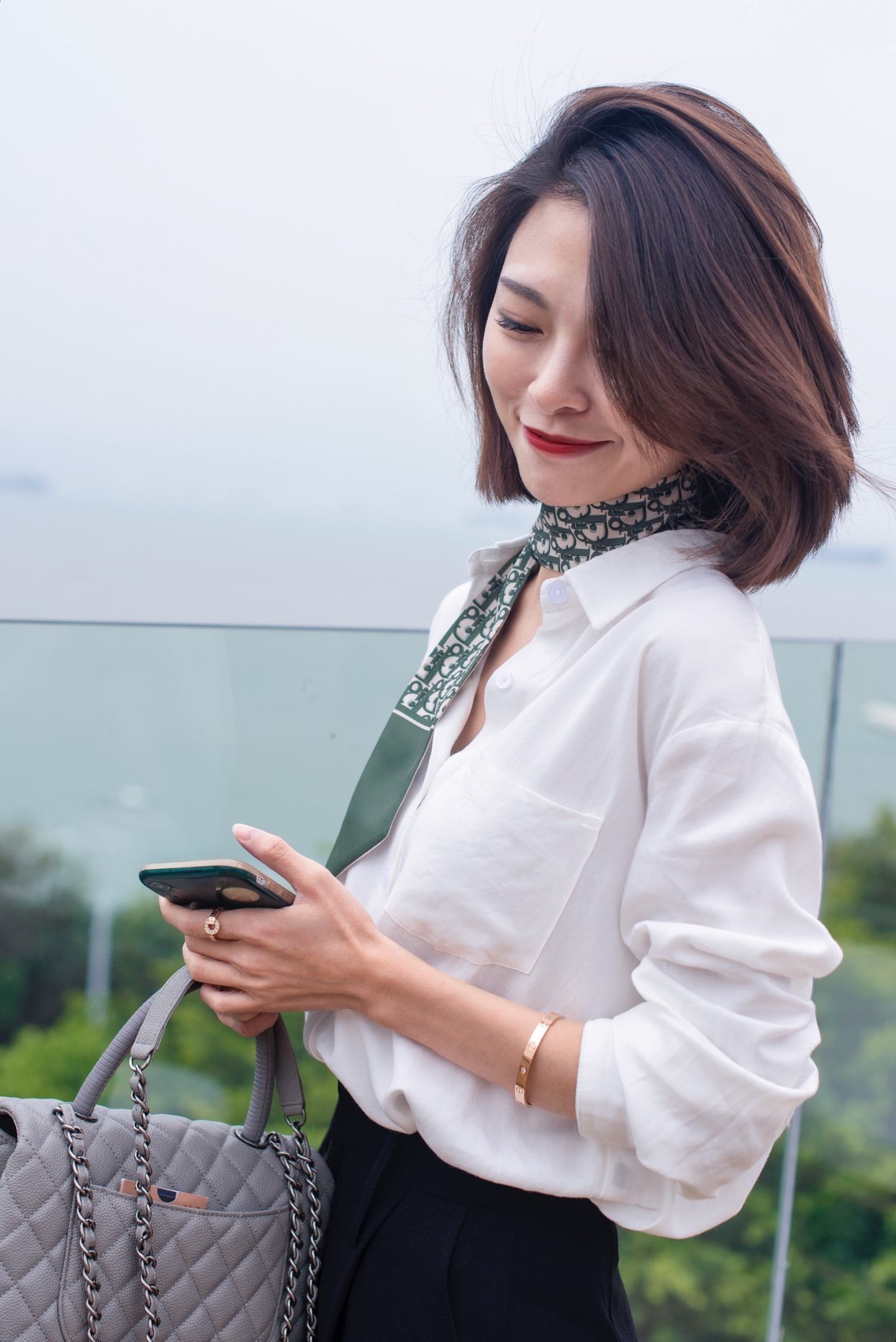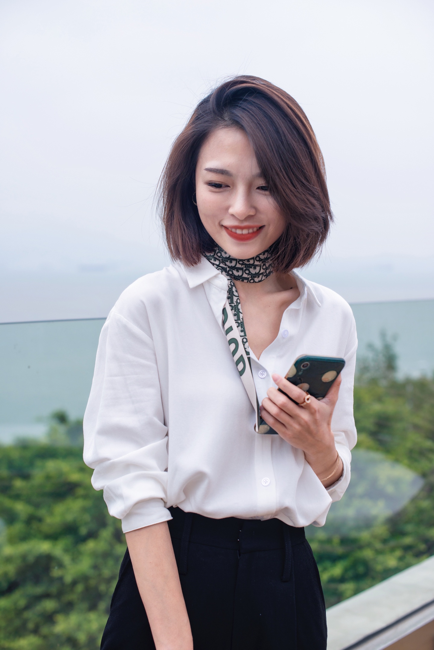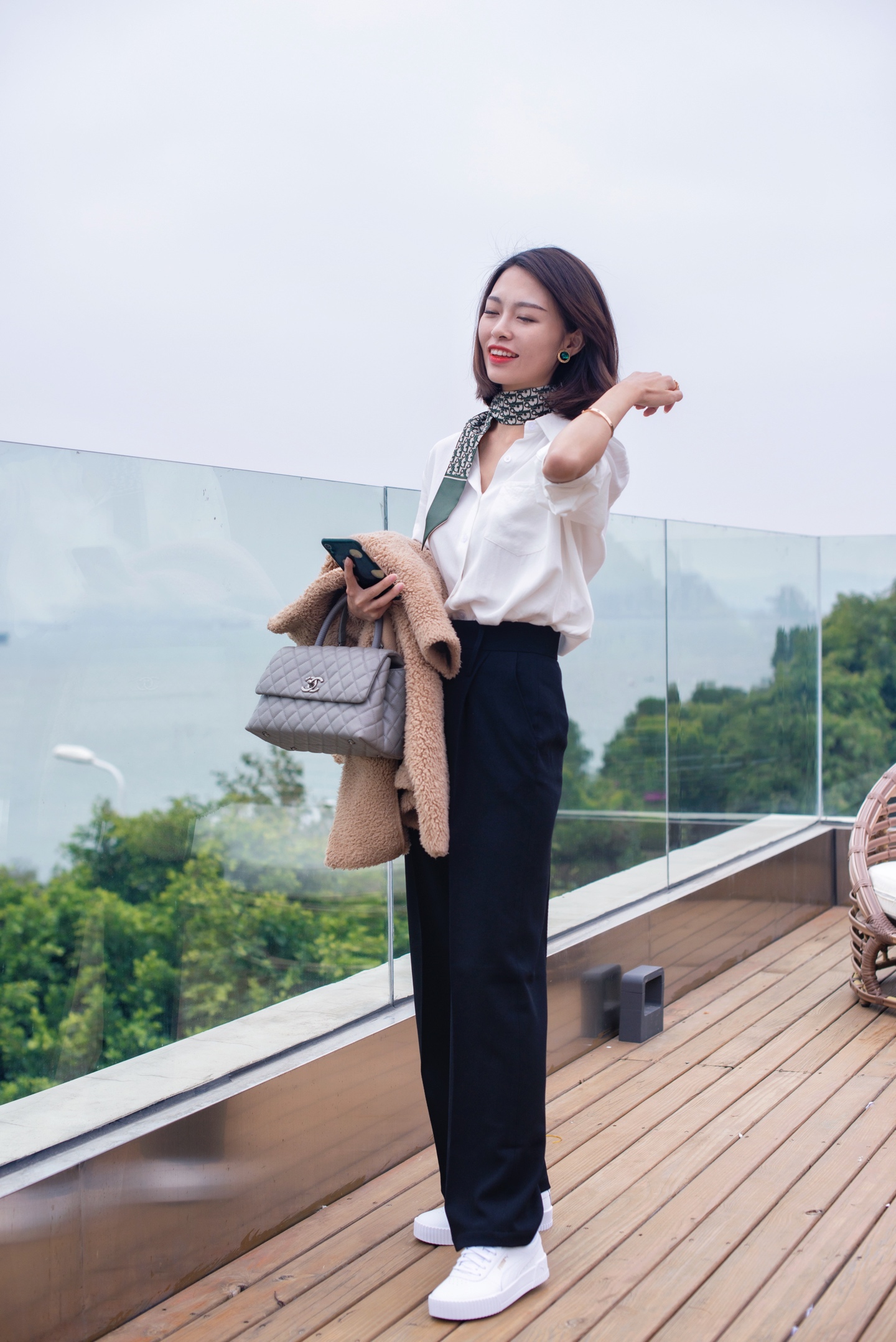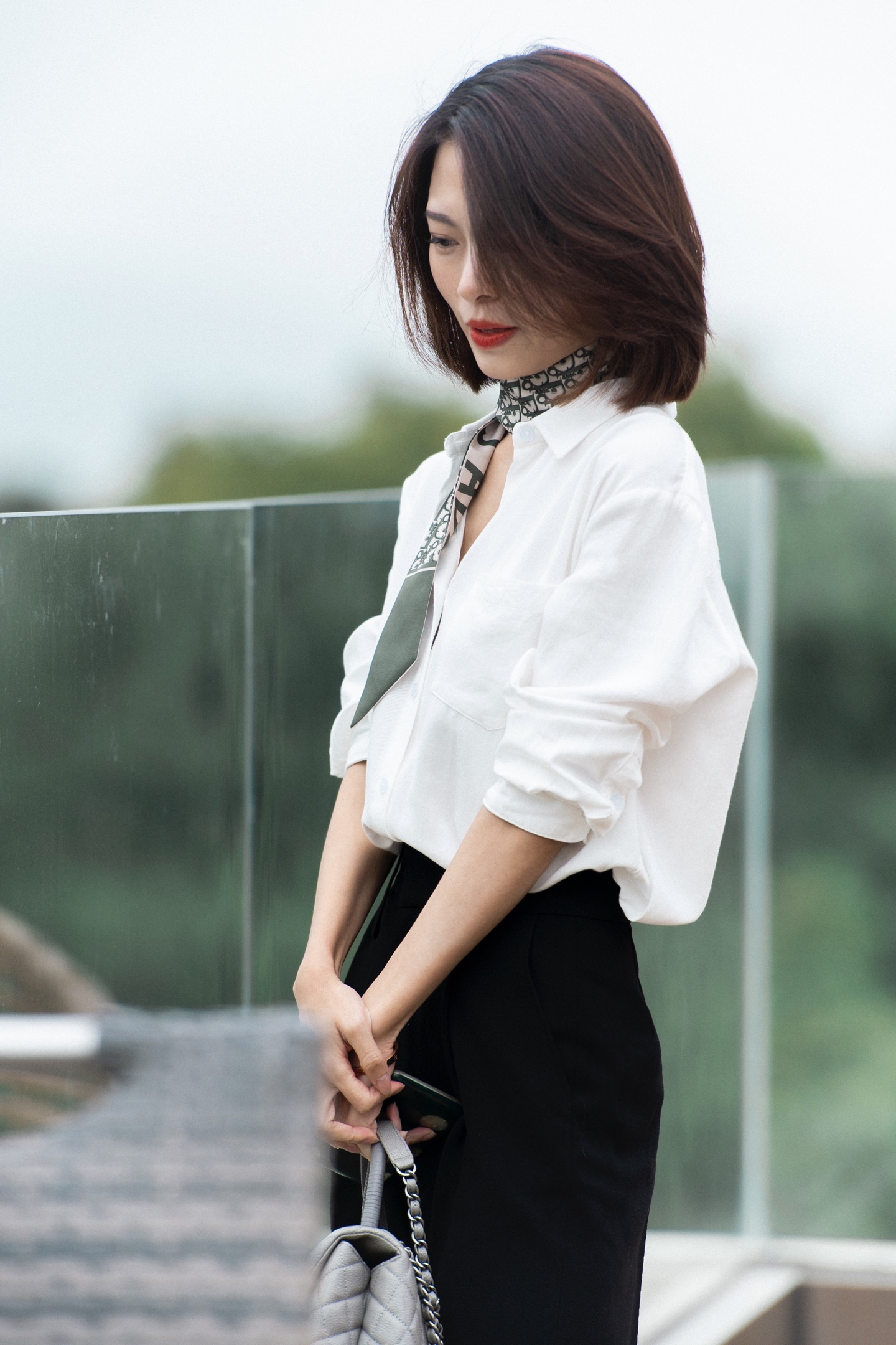 穿上宽松白衬衫涂上红唇带上耳环搭配丝巾不用再有过多的说明可精-美图社区-美图秀秀
