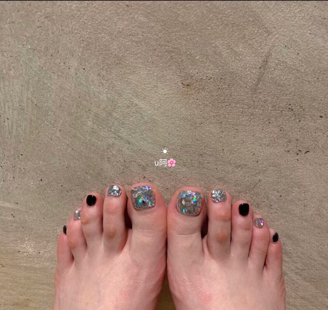 #美脚##夏季美甲##脚甲##干净##仙气美甲##黑色美甲# 酷黑