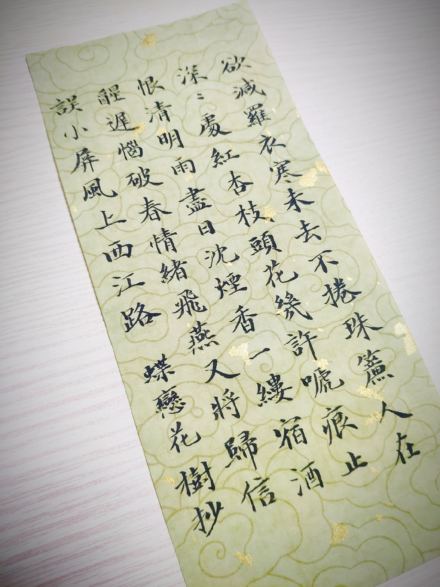欲减罗衣寒未去,不卷珠帘,人在深深处。残杏枝头花几许。啼红正恨清明雨。