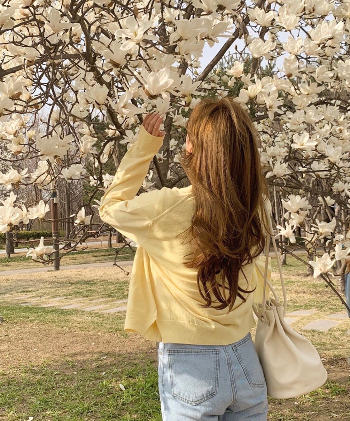 看花的时候 其实穿浅色衣服或者白色特别好看的 不一定要穿特别鲜艳的颜色搭配~#春色撩人#