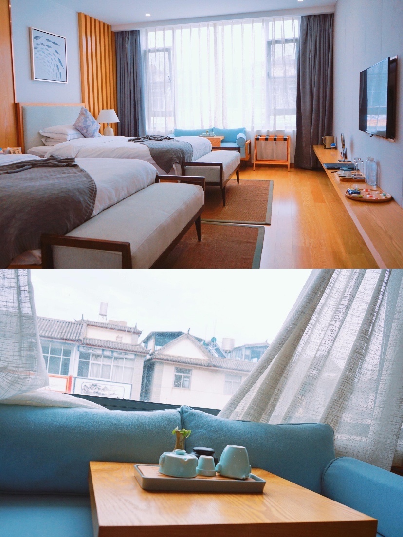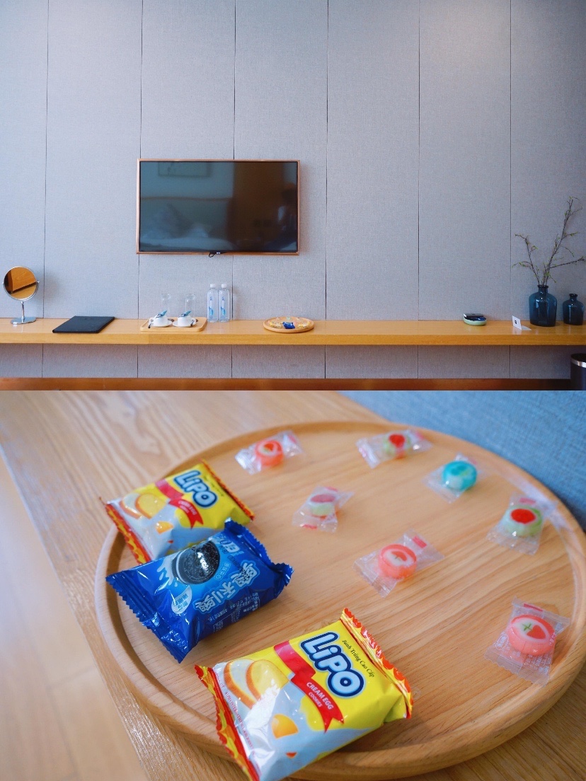 🏨进入我们的房间,空间不大,但精致整洁。房间设计是简洁现代风,灰色调,不会觉得高冷,只显得格外的干净。房间里放着各种零食,卫生间也特别干净,卫浴用品都是资生堂的,一切细节都很贴心。早餐很有特色,米线饵丝牛奶豆浆面包鸡蛋都有。