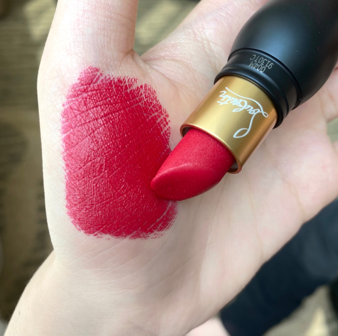 口红是萝卜丁004M偏玫调的红色 丝绒哑光的质地 我喜欢厚涂啦 又A又酷的感觉 忍不住想啵一口!