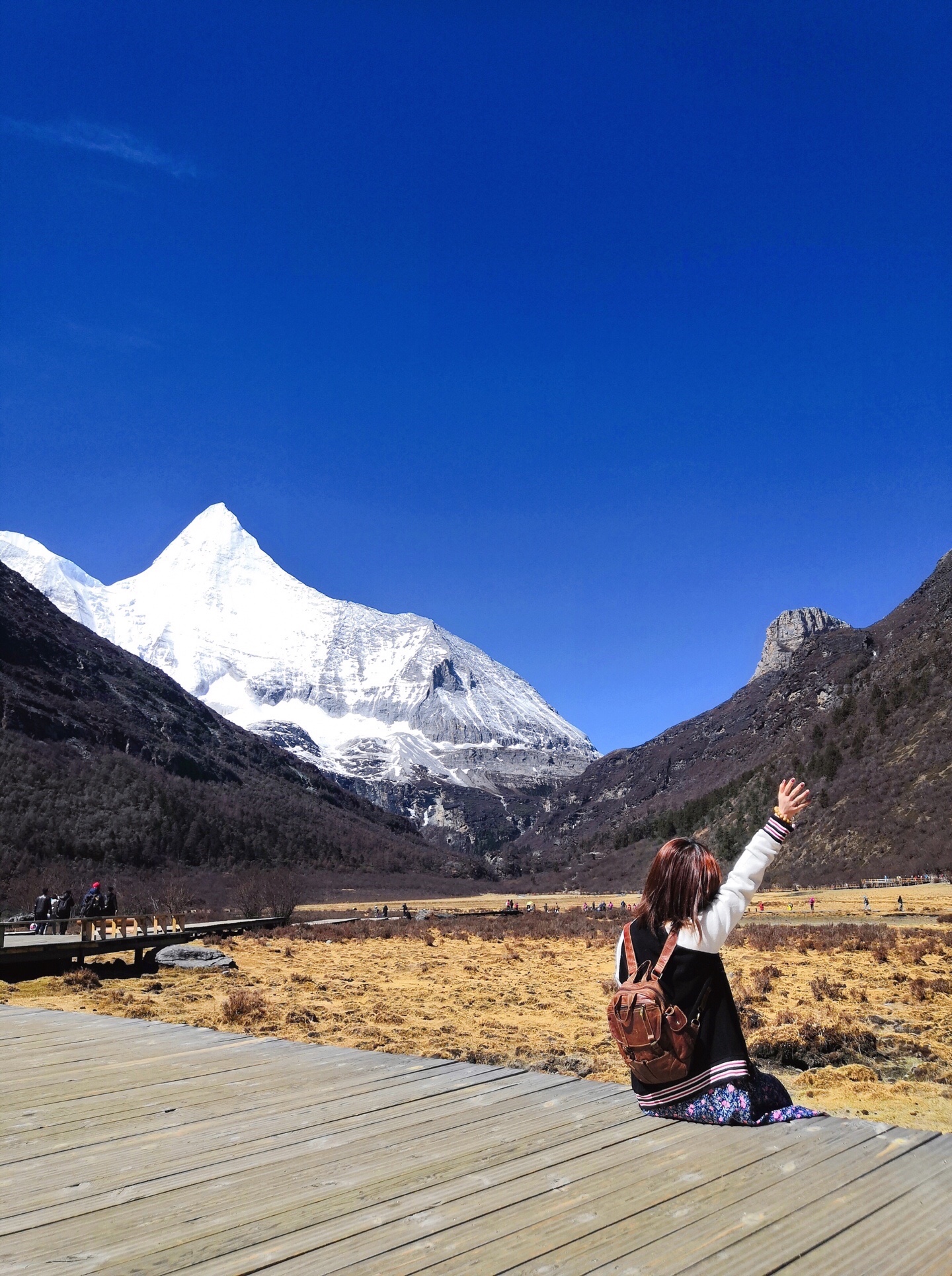 多变的天气,谜一般的穿搭🙈#稻城亚丁##穿搭##随拍##碎花裙#