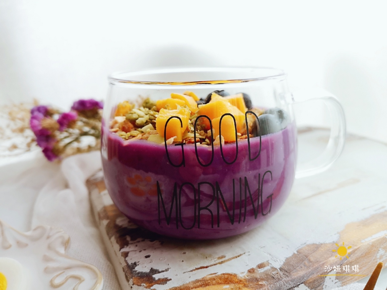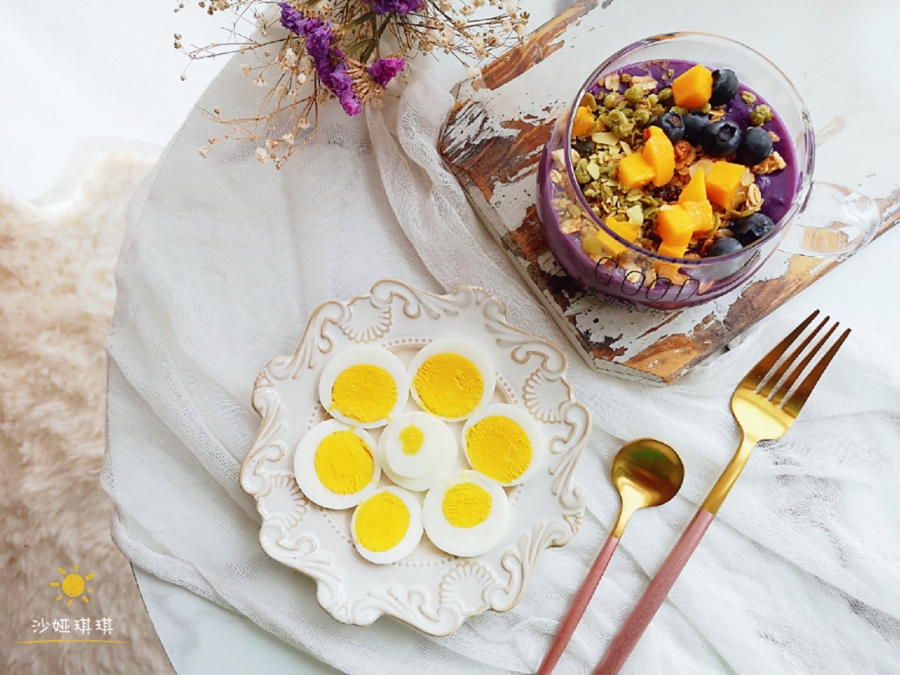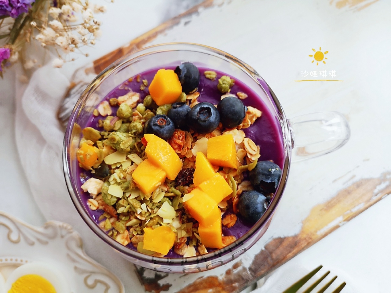 🌸今日早餐🌸💕💕👉牛奶麦片紫薯泥😄👉煮鸡蛋真真-美图社区-美图秀秀