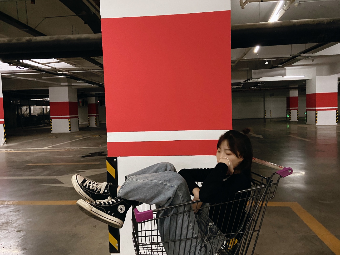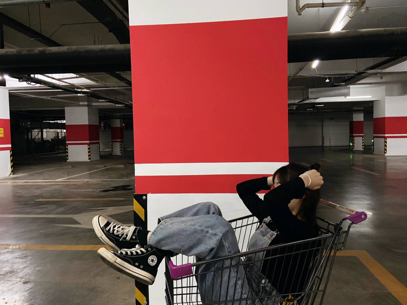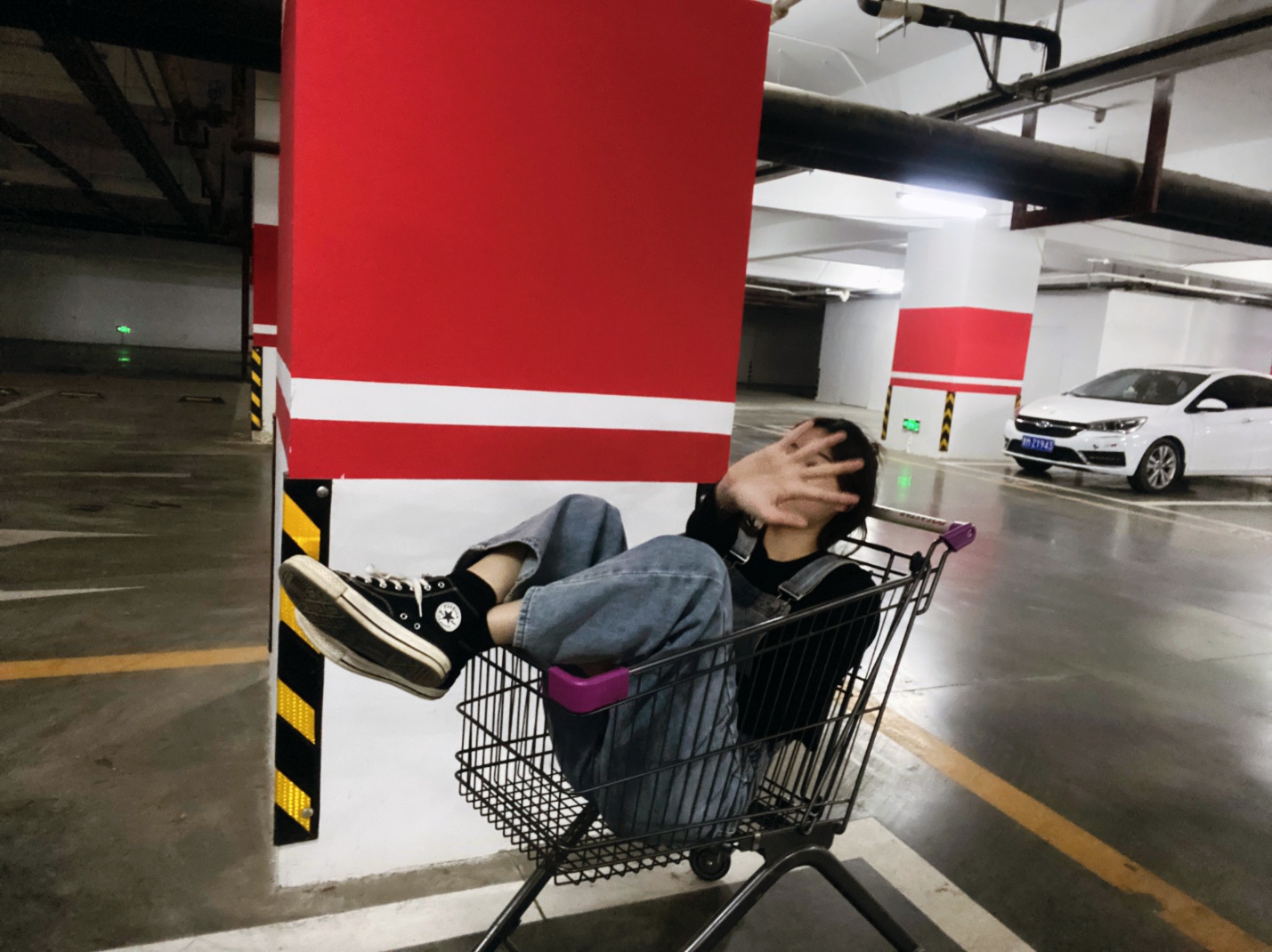 #酷# #热门# #拍照姿势# #今日份滤镜推荐# 拍照地点:超市的地下车库(主要是有购物车)