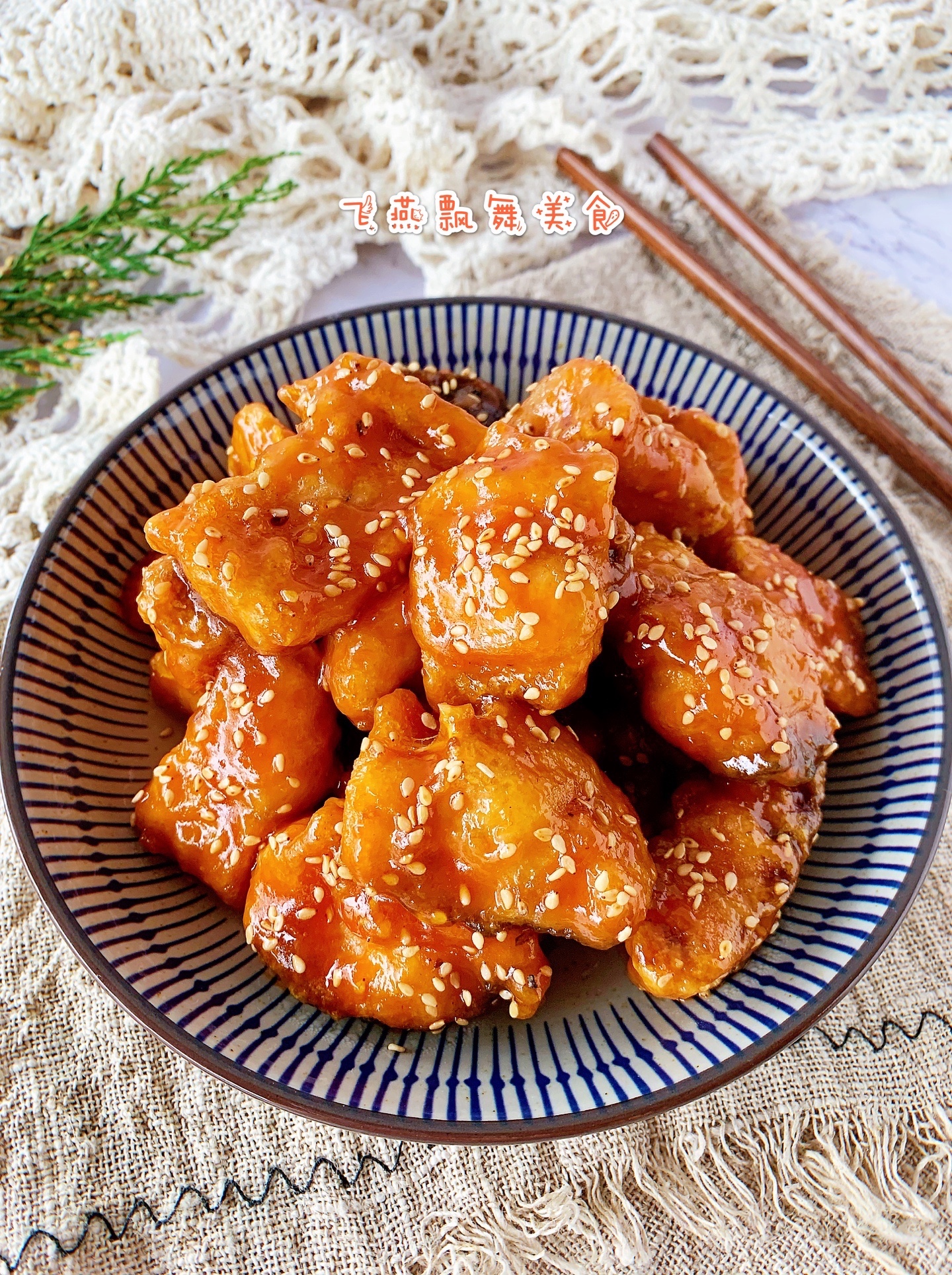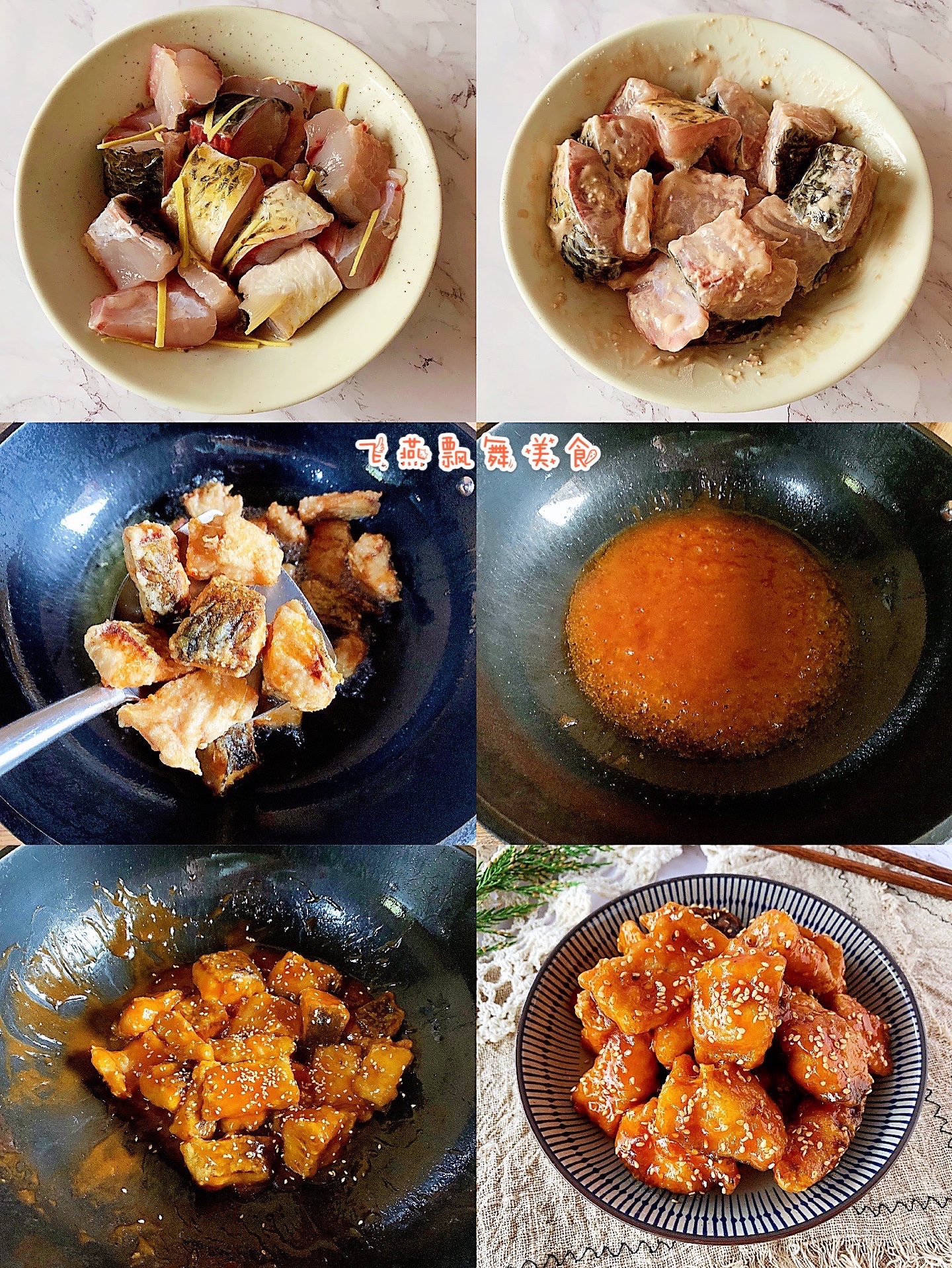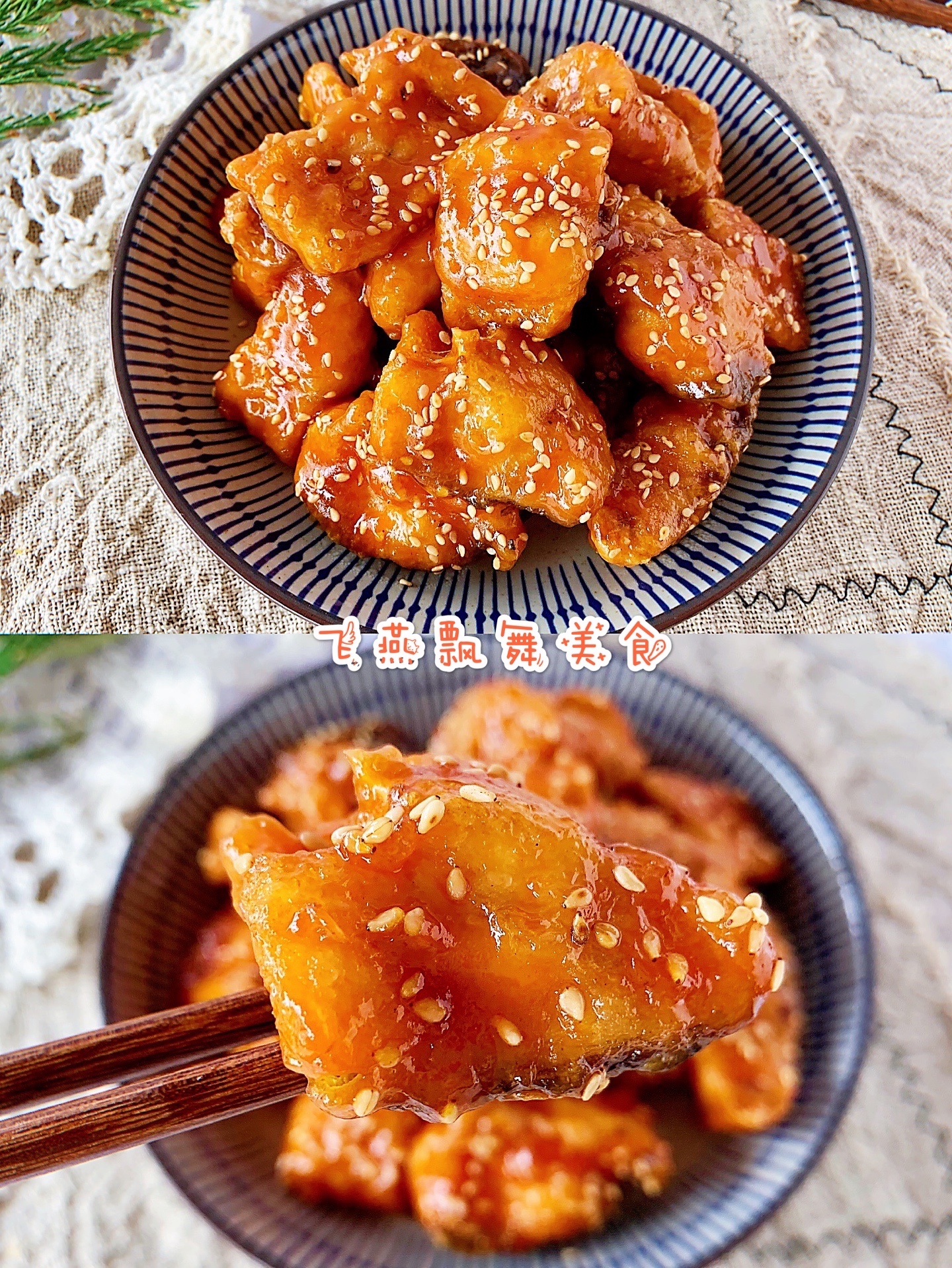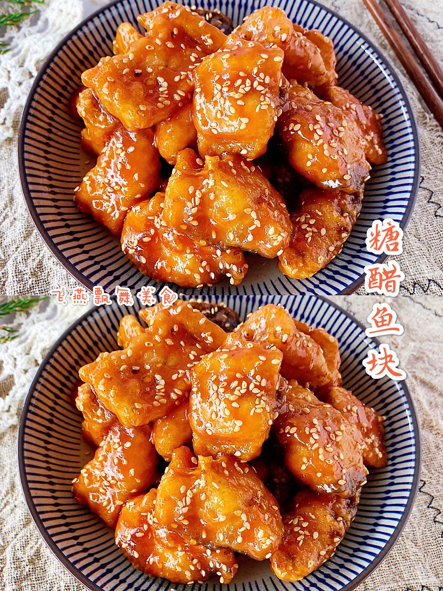 4、锅中留底油,倒入糖醋汁熬制浓稠起泡,放入鱼块翻拌均匀,使一块鱼都裹满糖醋汁,撒上白芝麻盛出即可开吃了。@MT小助手 @MT情报局 #宅家晒美食##宅家晒美食#