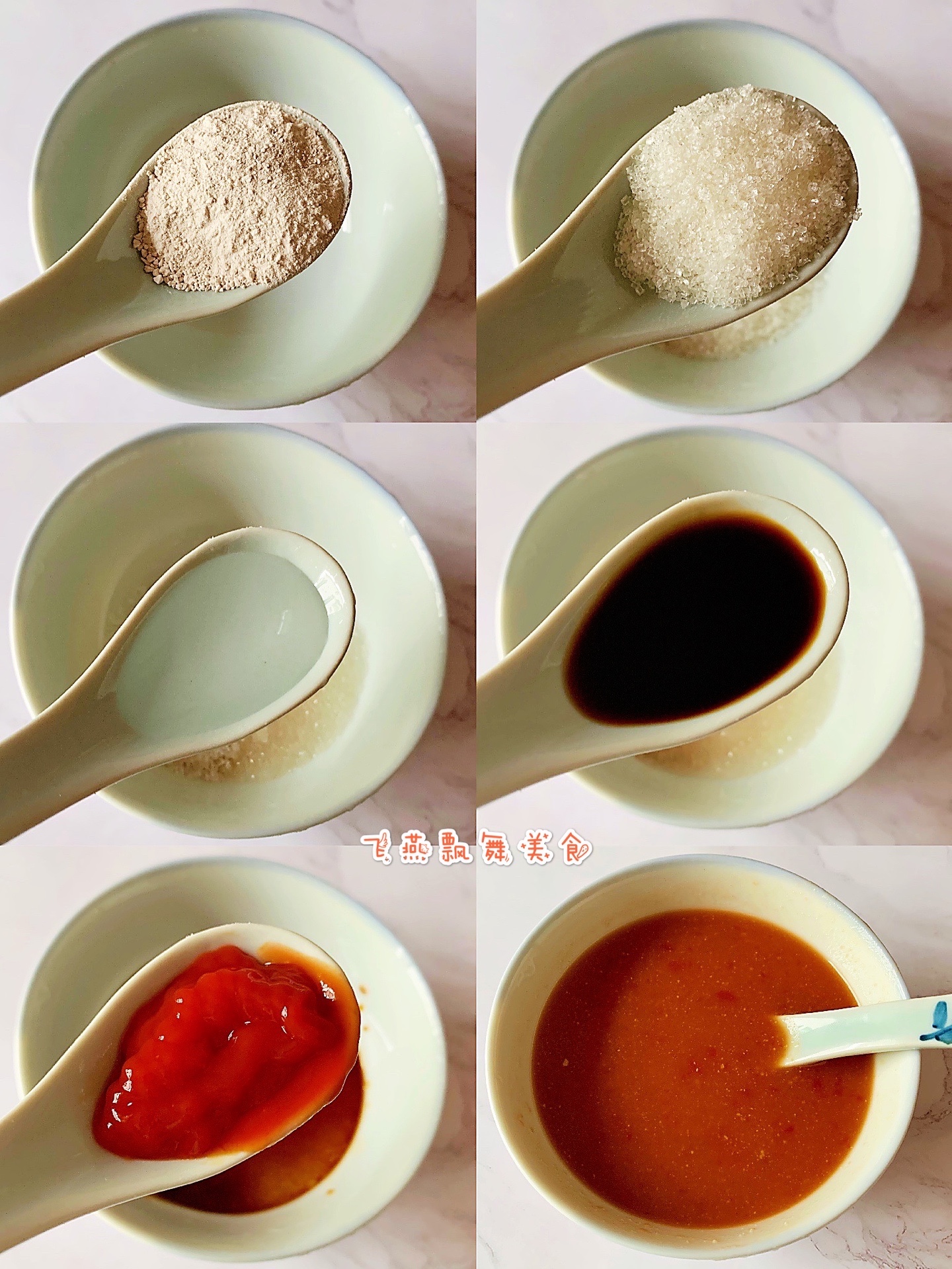 ✅糖醋汁:番茄酱4勺,白糖3勺,白醋2勺,生抽1勺,淀粉1勺,清水小半碗。