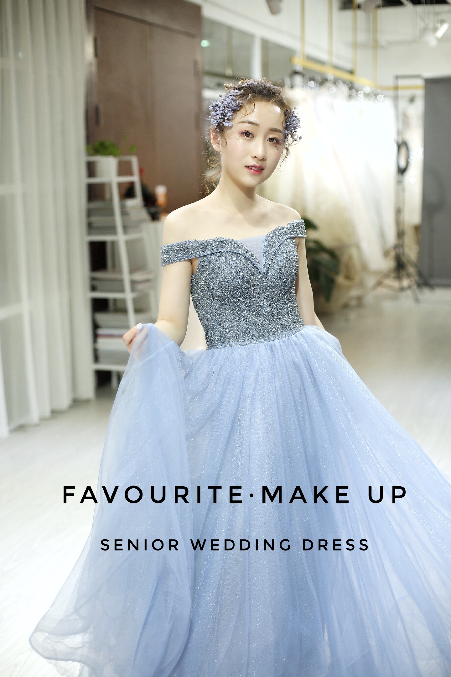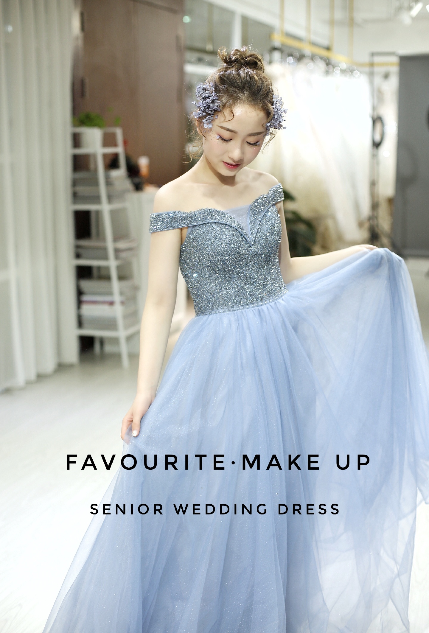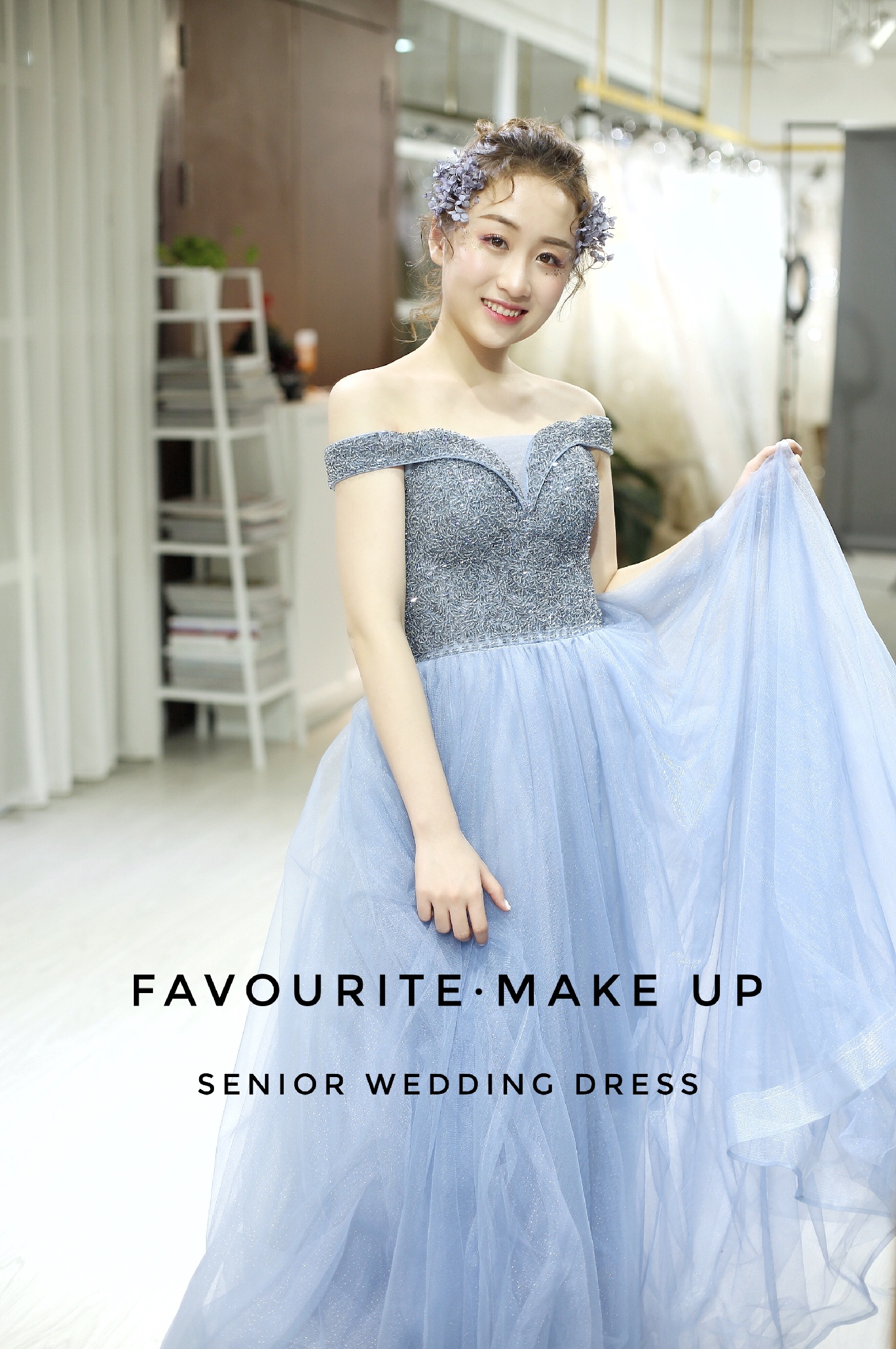 清新甜美的蓝色纱裙礼服也很适合新娘的敬酒呢