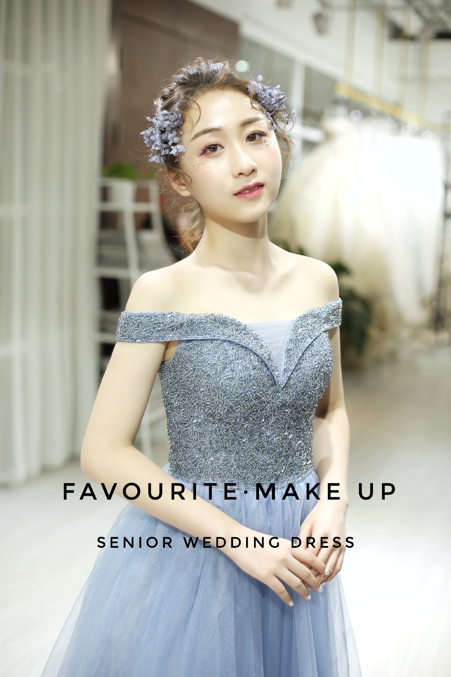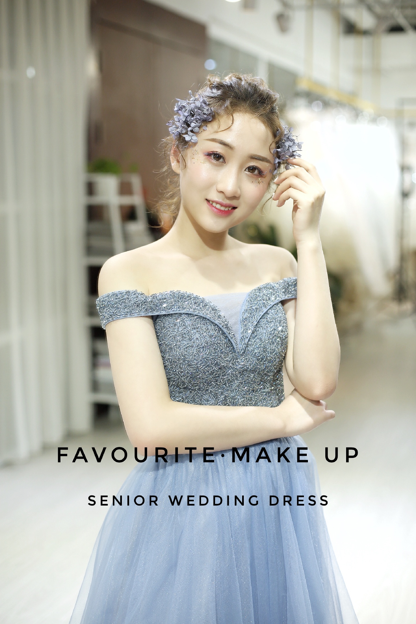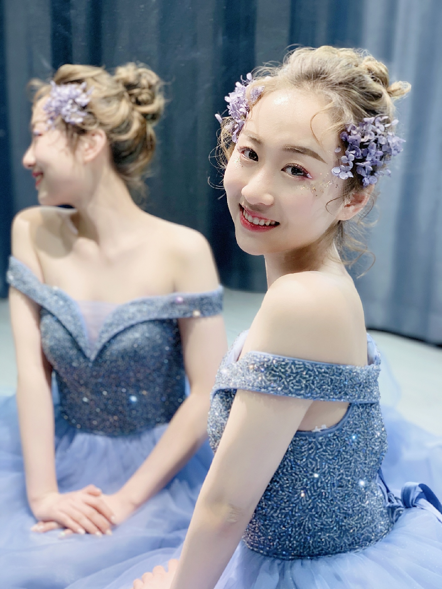 清新甜美的蓝色纱裙礼服也很适合新娘的敬酒呢