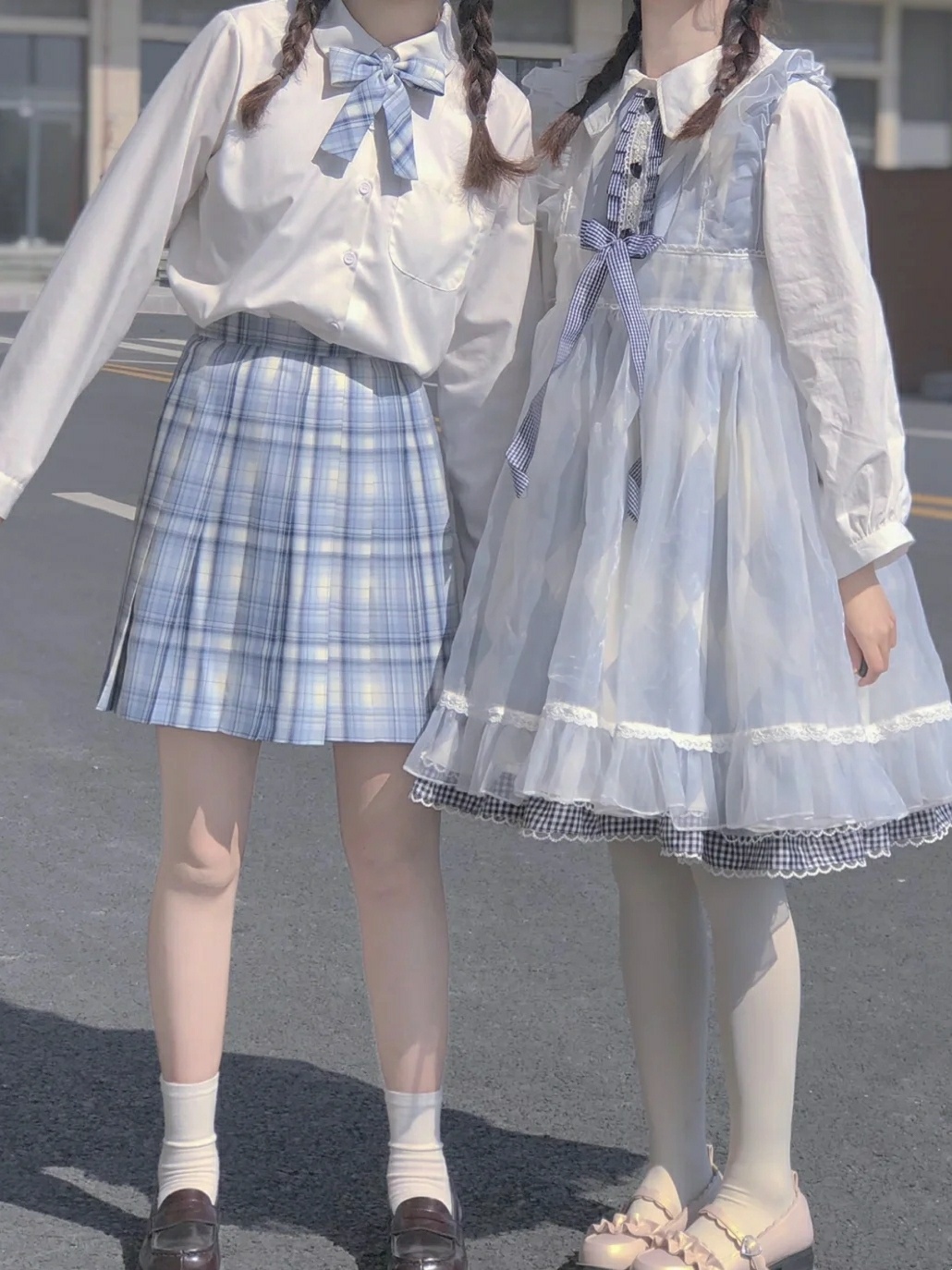 柔柔的今日分享JK制服jk温柔色系姐妹穿搭💙不会说一模一样-美图社区-美图秀秀