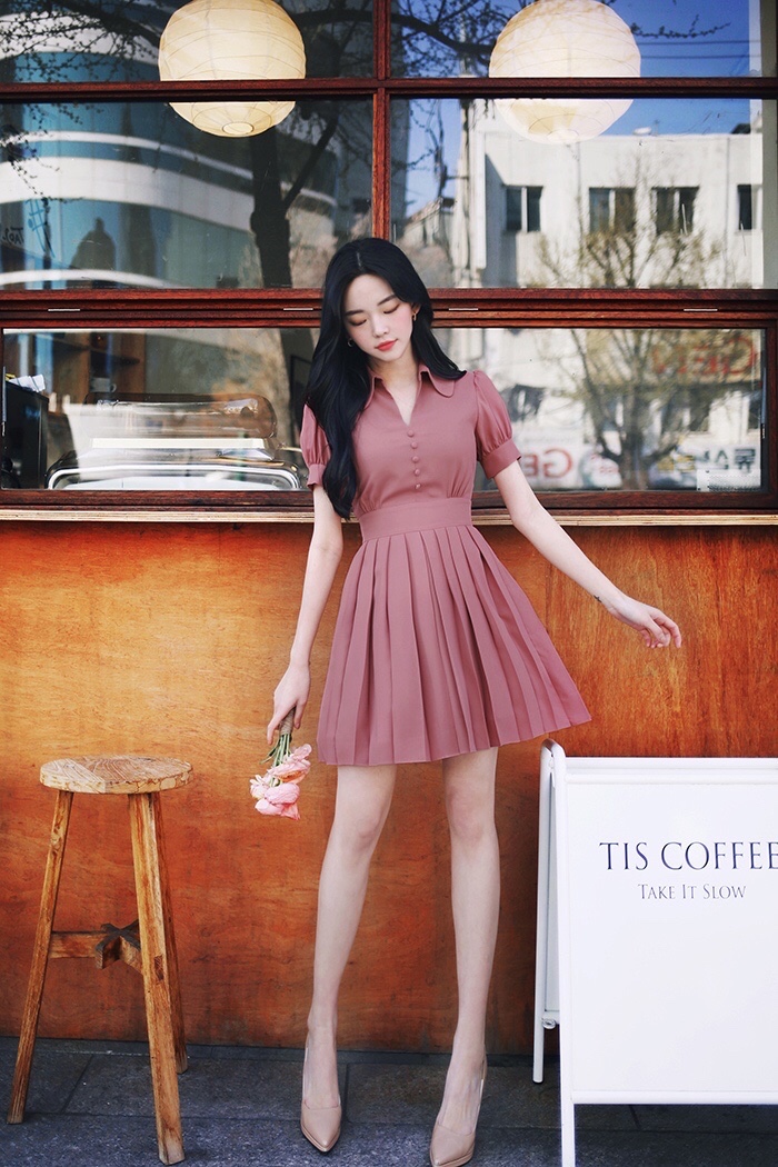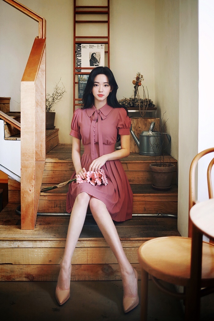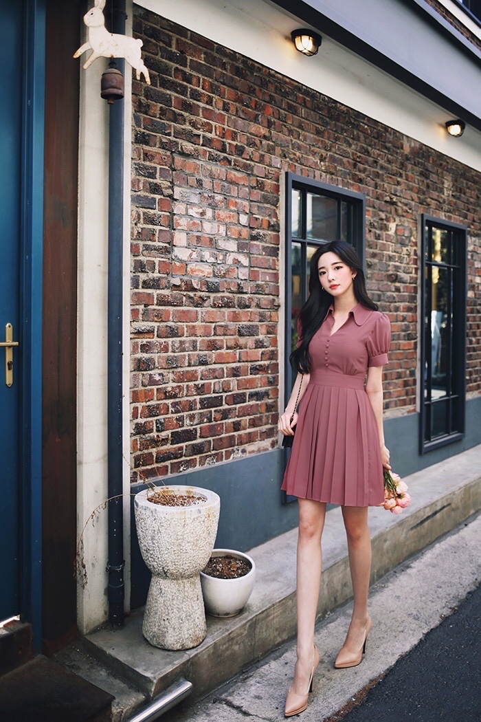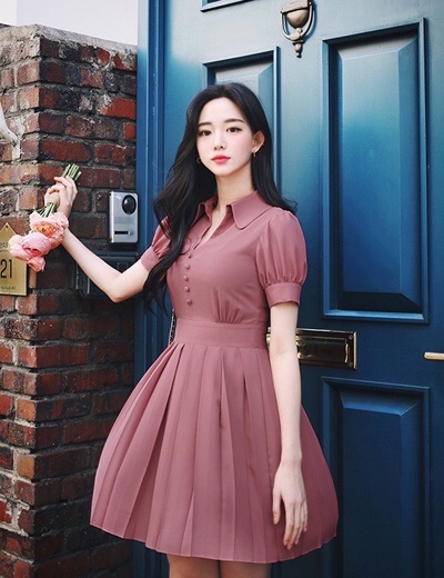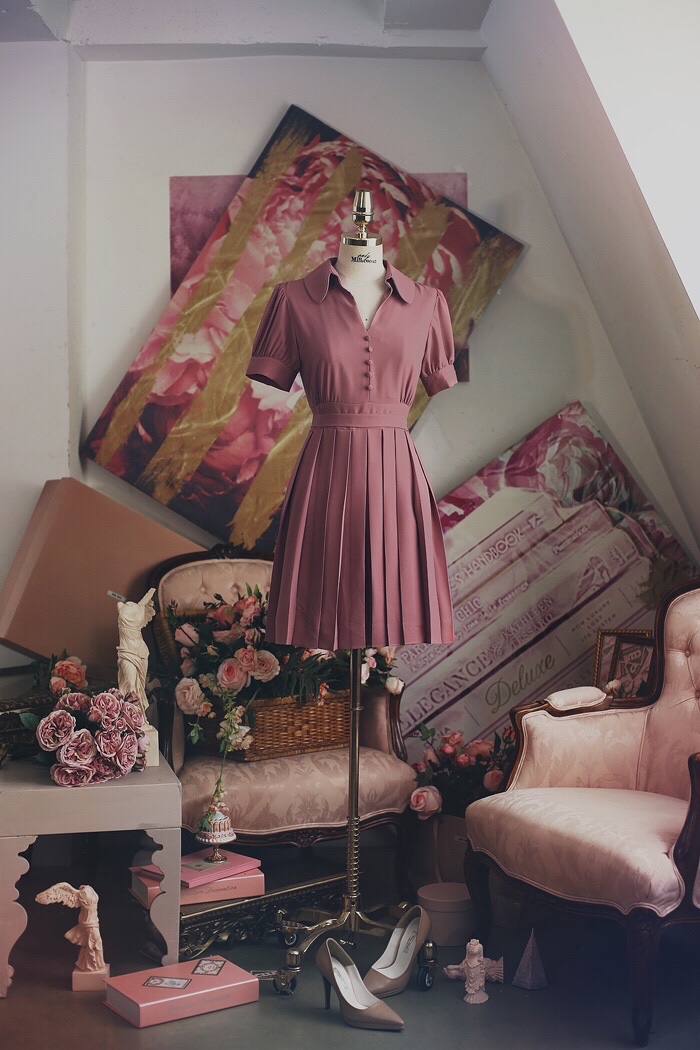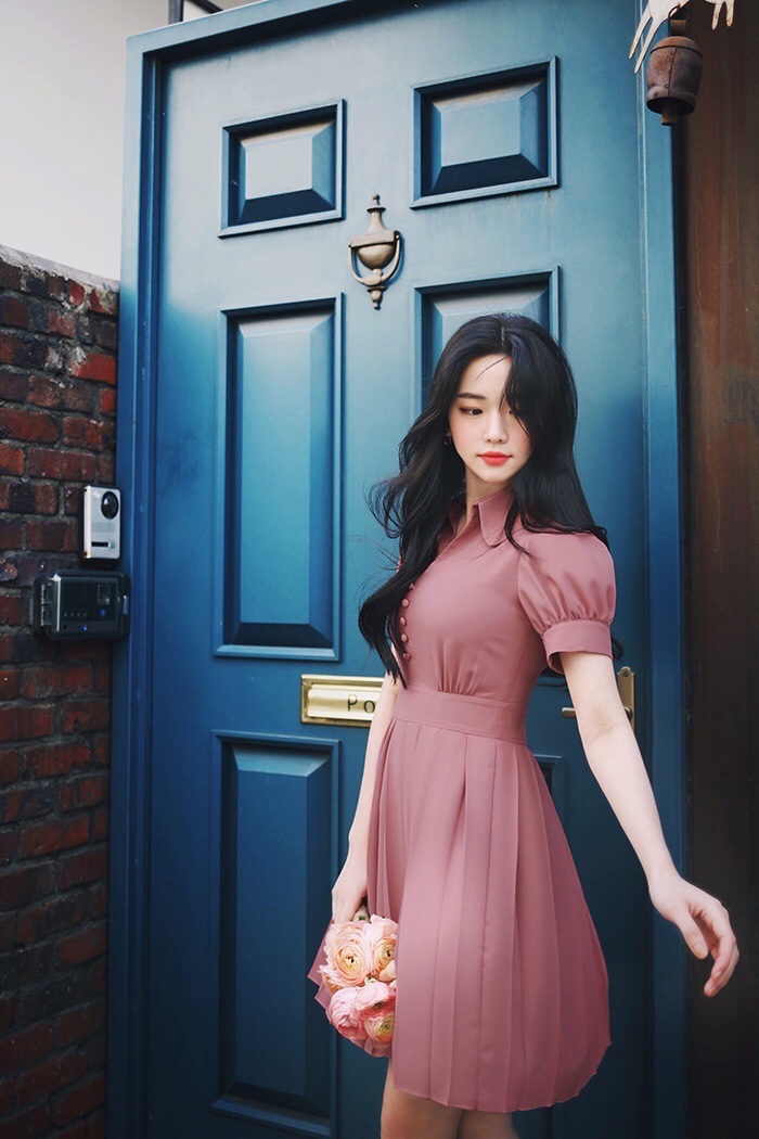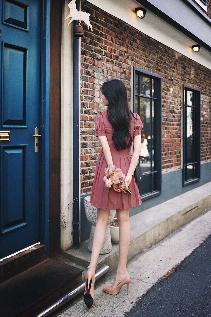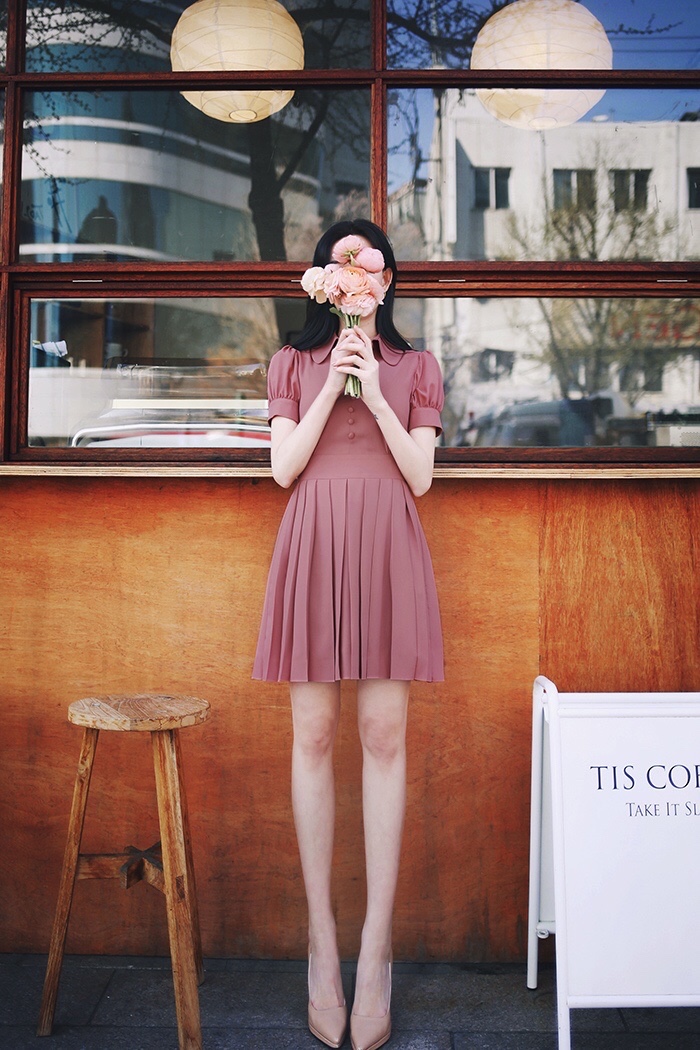 藕色连衣裙,很衬托肤色,又很乖,这个颜色质感也很好。腰际线偏高,能在视觉上延长腿型。小个子的福音~#连衣裙##精致的猪猪女孩#