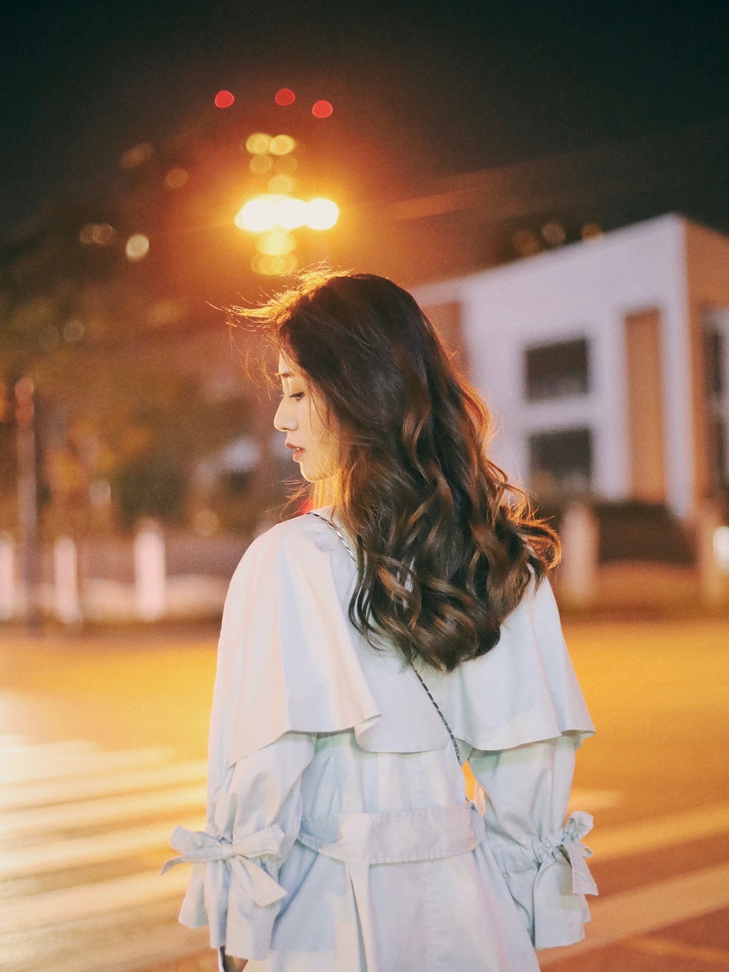 随便找一条街道 把路灯和霓虹灯做背景