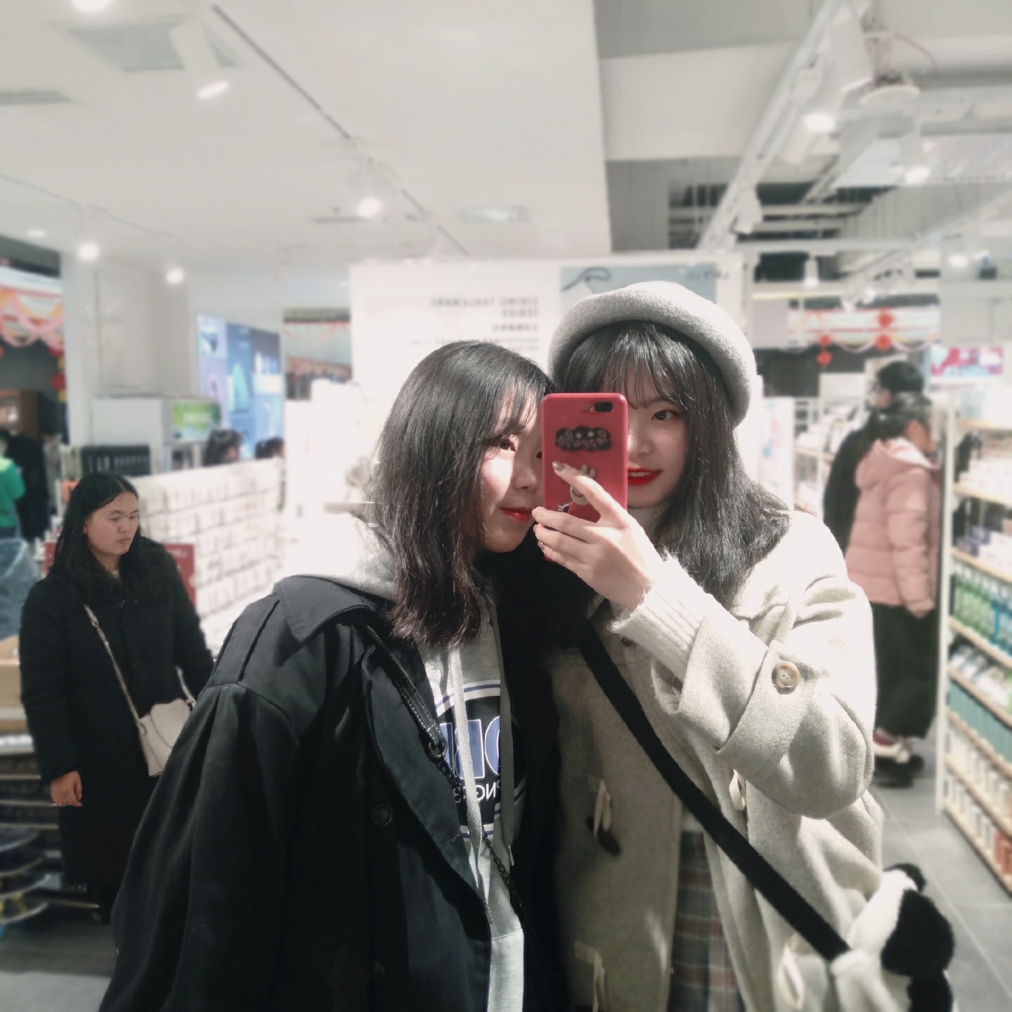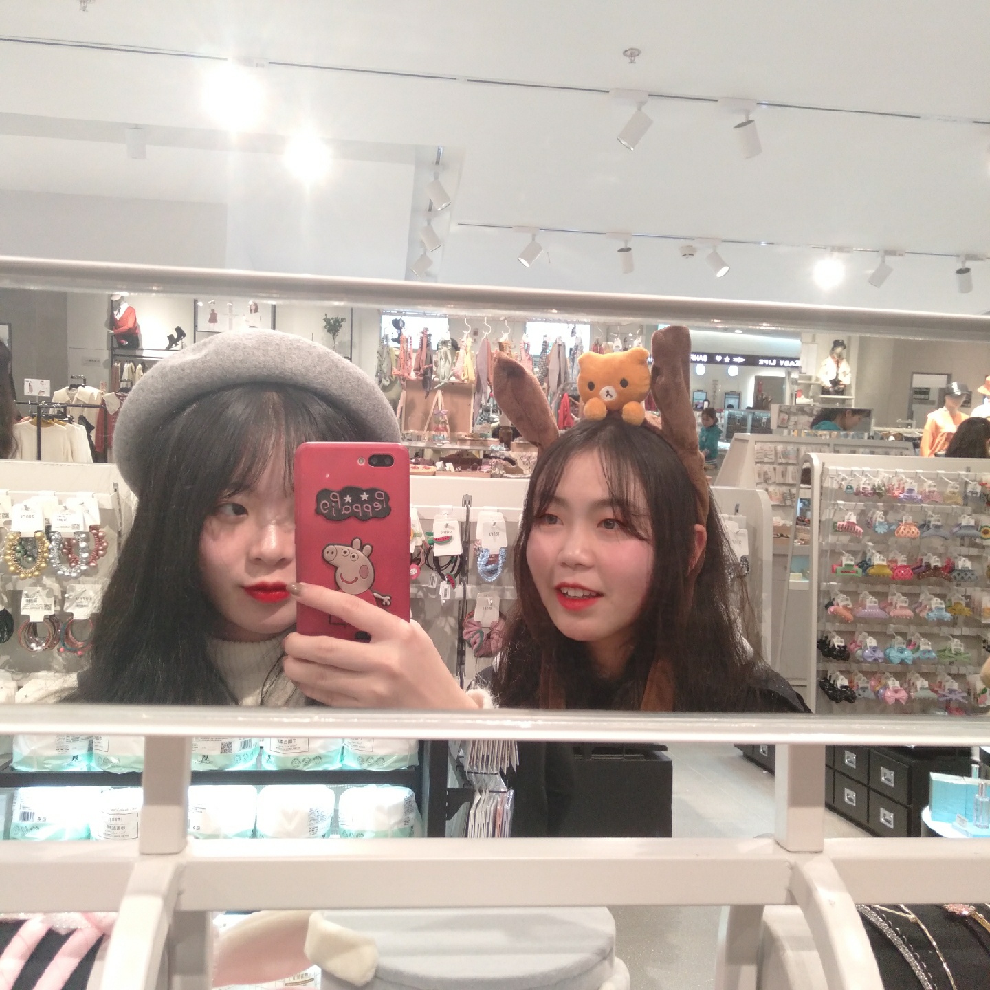 根据不同的镜子进行两人拍照哦