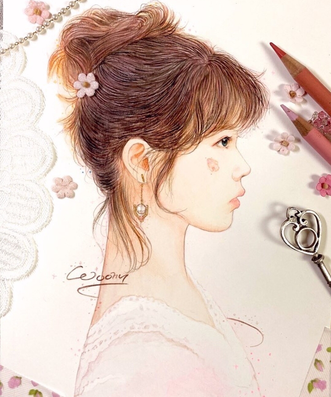 韩国画师 Woony 彩铅肖像作品欣赏