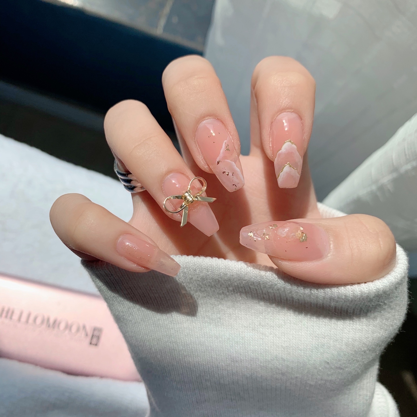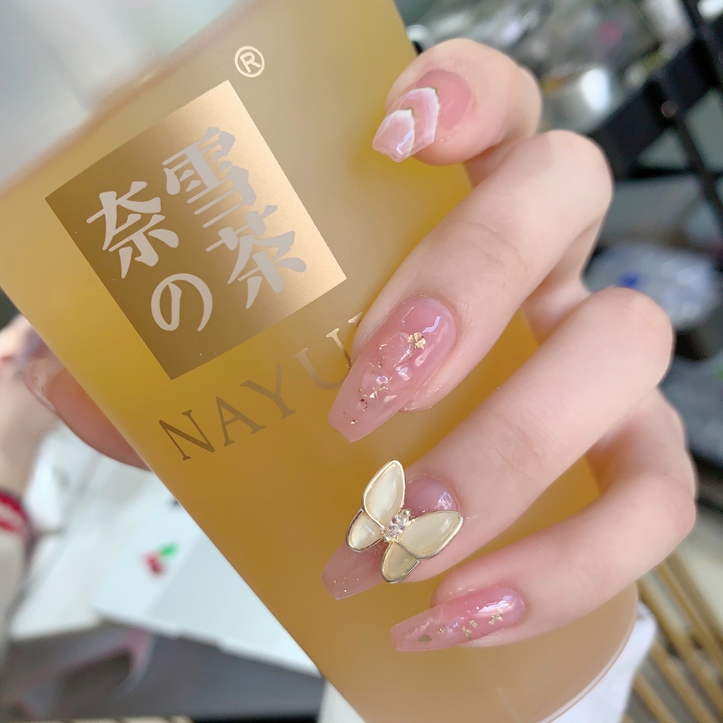 网红蝴蝶款仙女系透粉色美甲裸粉色显白美甲美甲控少女心美甲穿戴-美图社区-美图秀秀