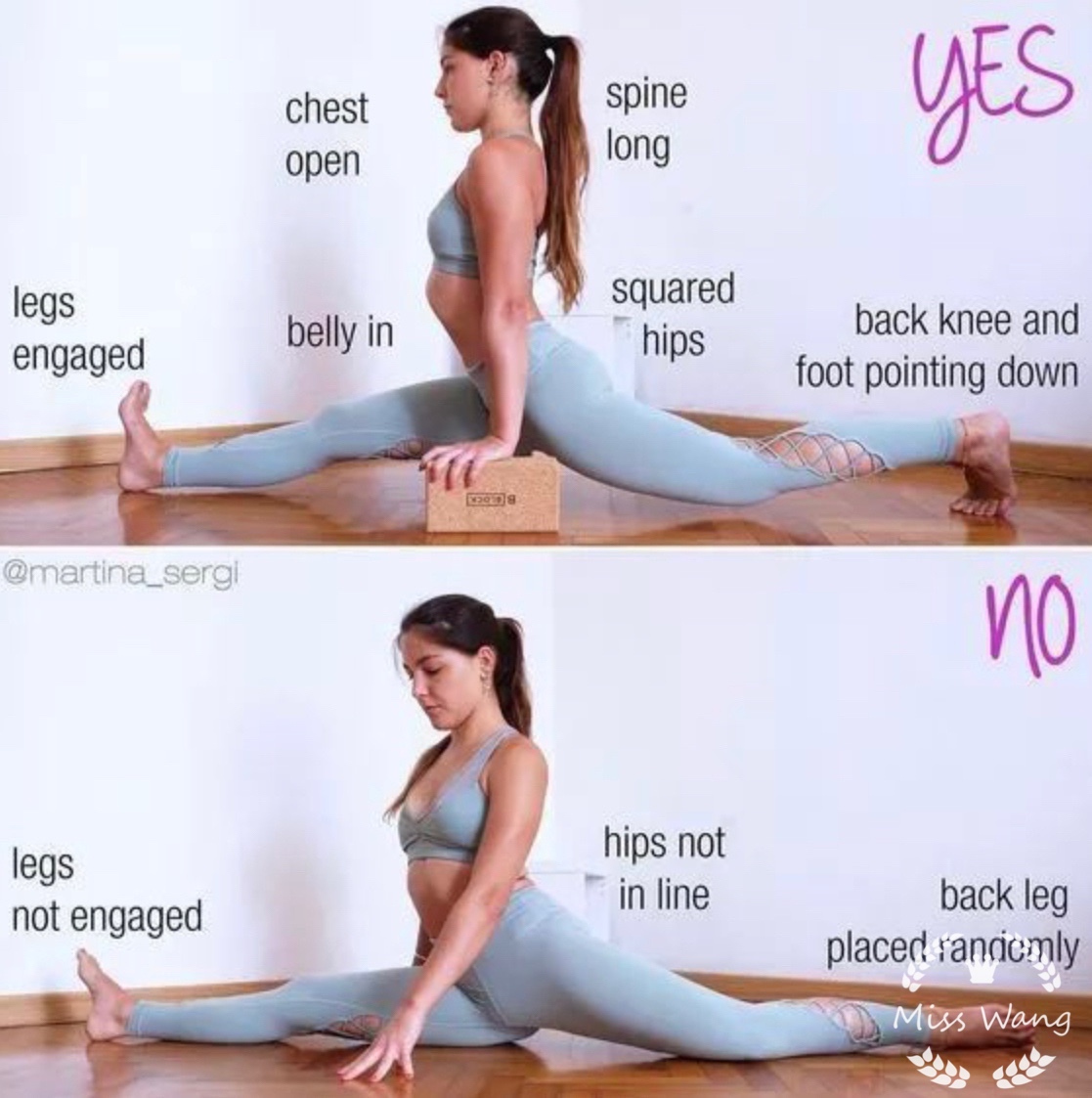 一般我们会称这个体式为劈叉(竖叉),但是在瑜伽中,这个体式的正确叫法是神猴哈努曼式。