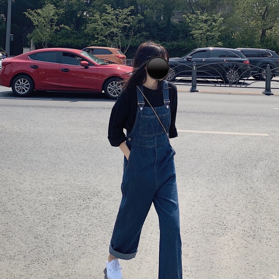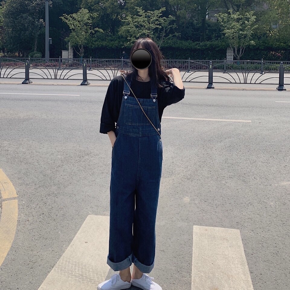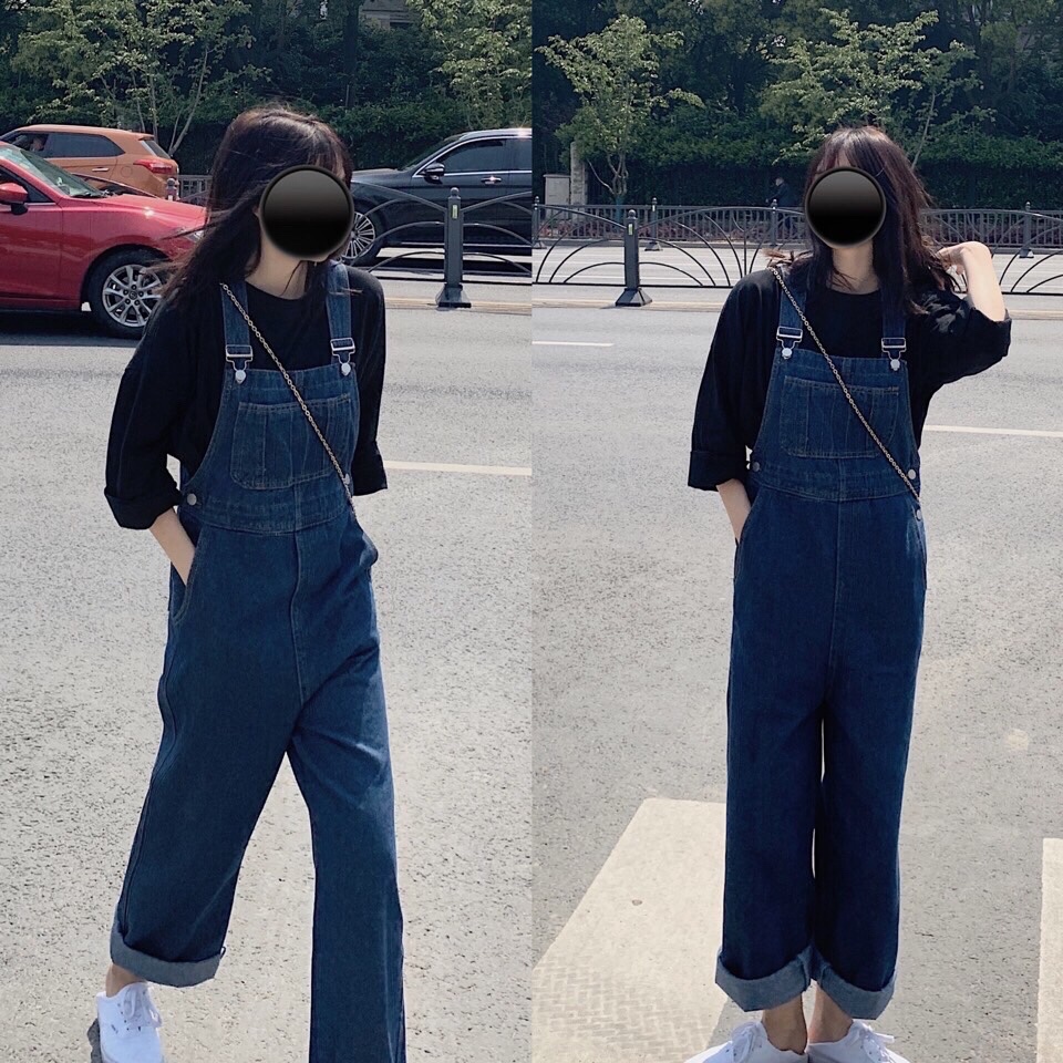:黑色长袖/深蓝色直筒背带裤#显瘦穿搭##一周穿搭不重样##你怎么这么好看##撩发变身#