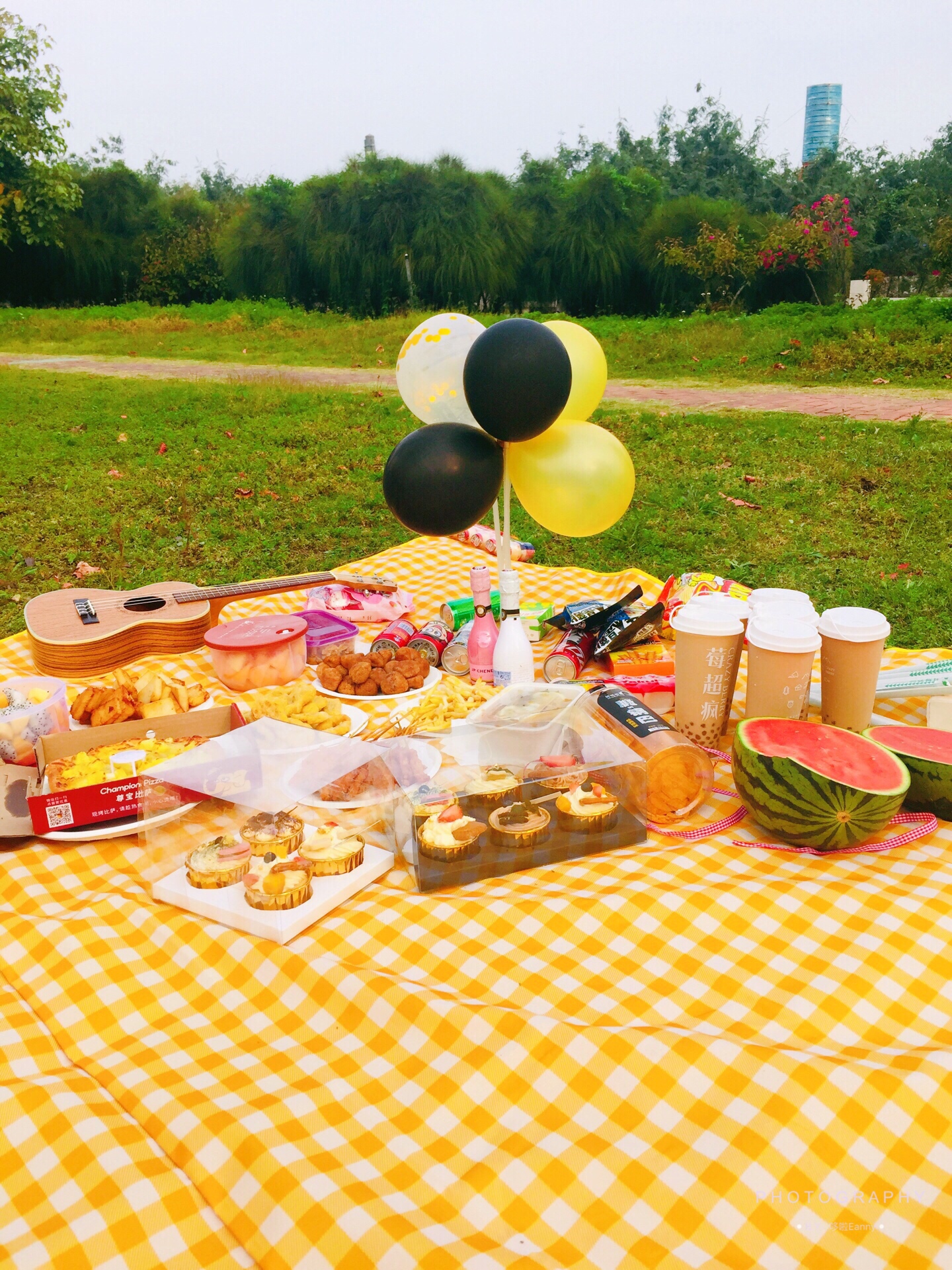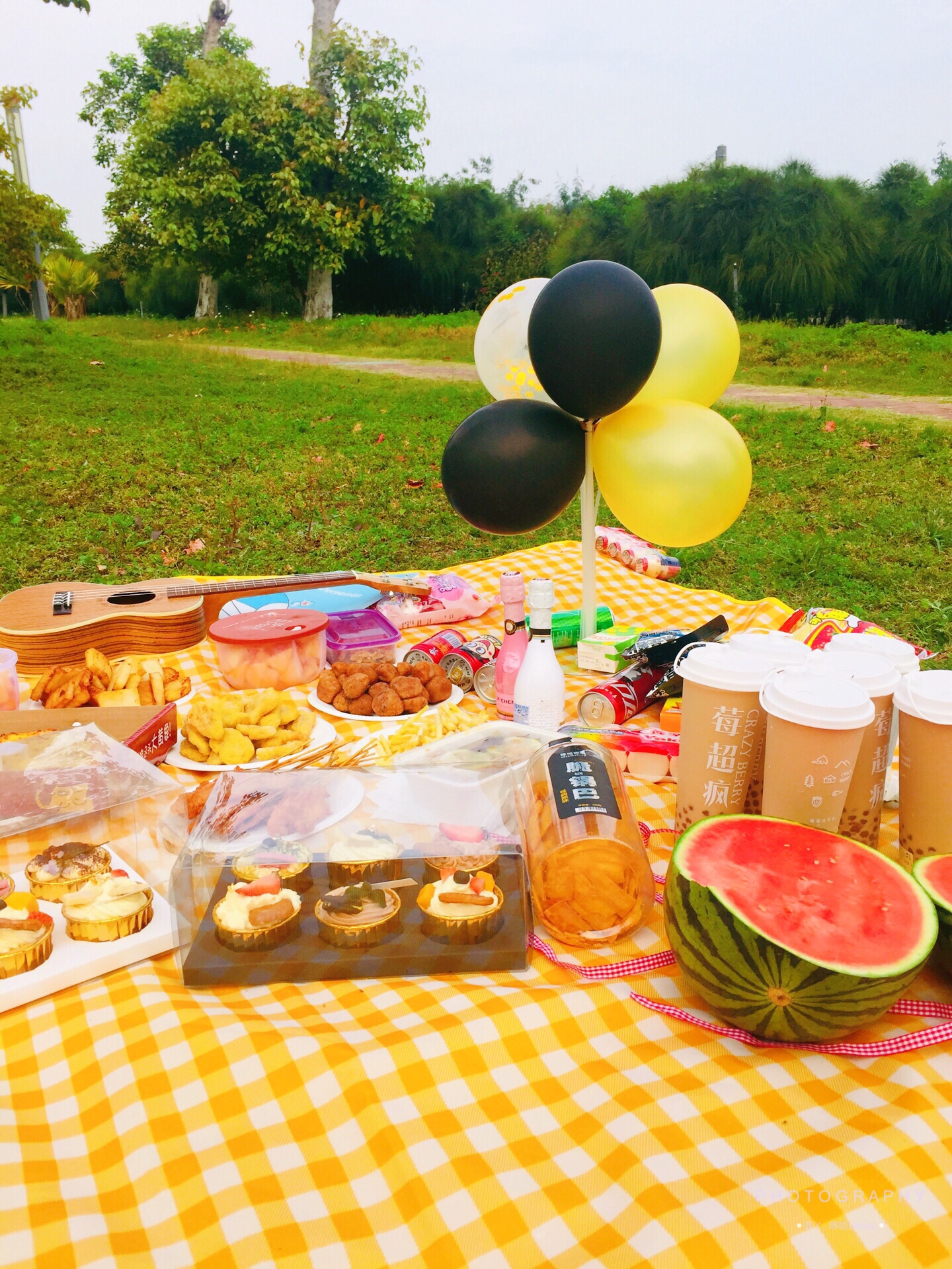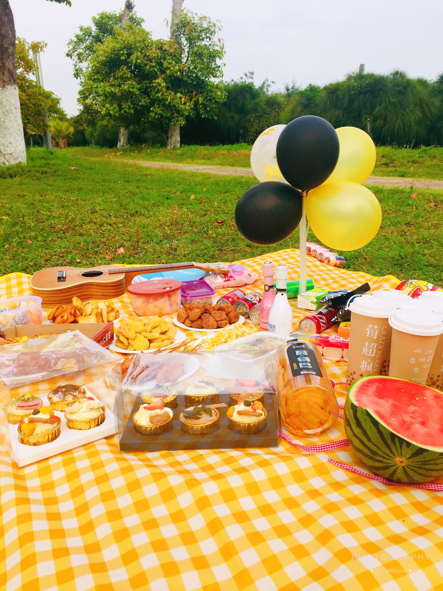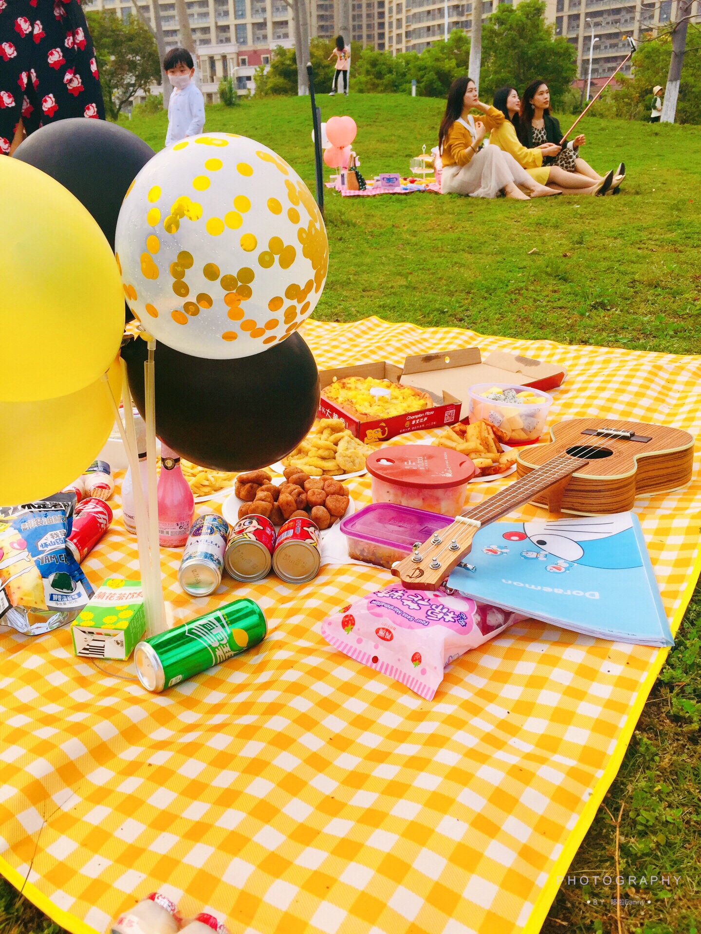 野餐垫 野餐篮子 食物 饮料 尤克里里 蓝牙音箱 鲜花 泡泡枪 免洗洗手液 驱蚊喷雾