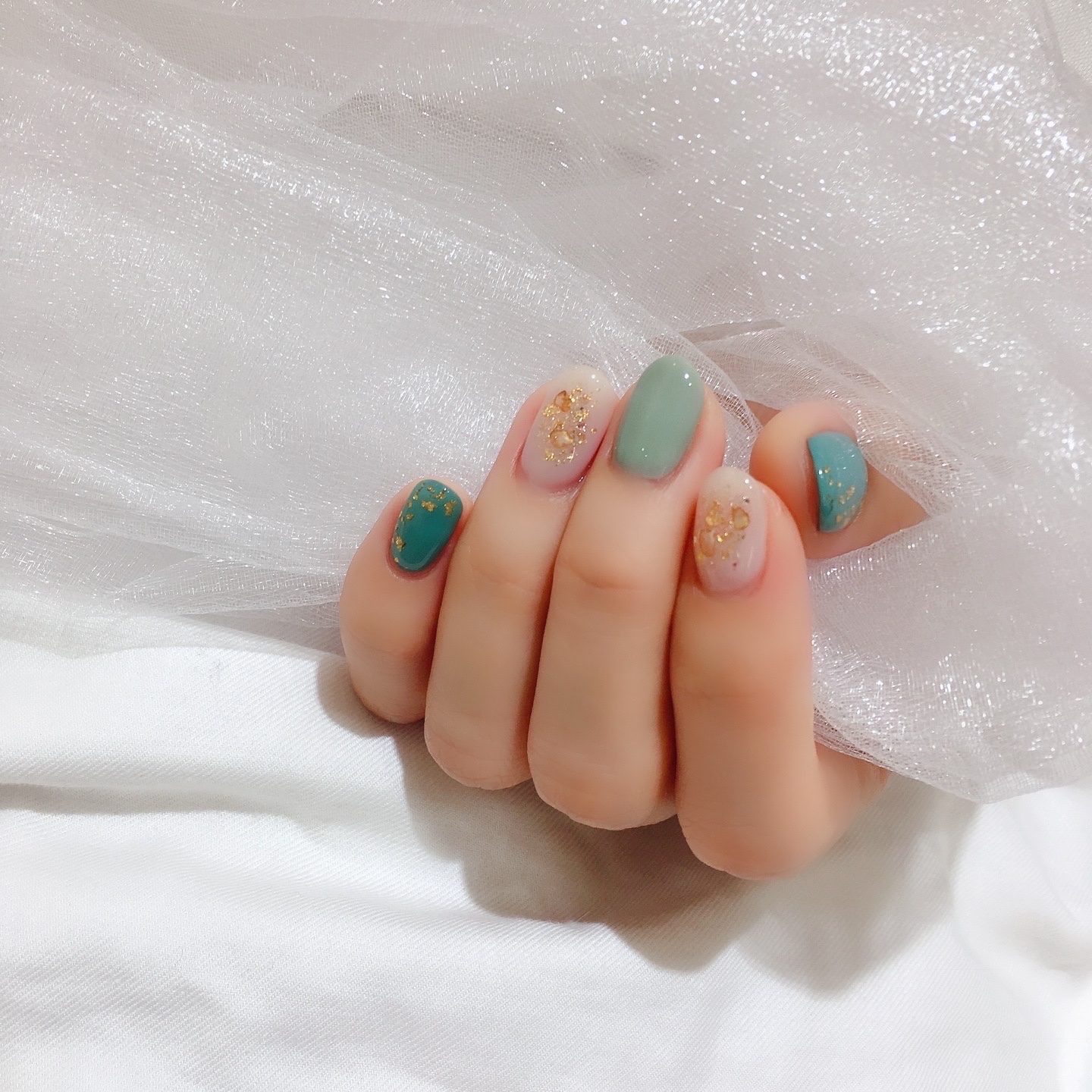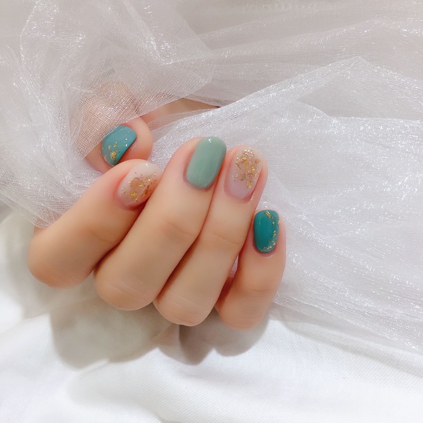 莫迪绿🌵纯色渐变点缀少许金泊+奶白点缀少许金闪粉🌟