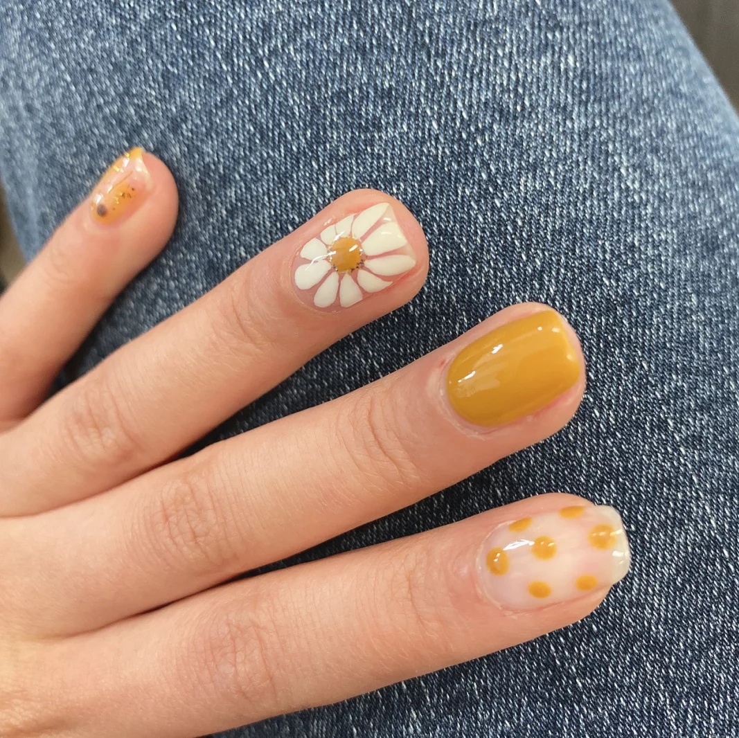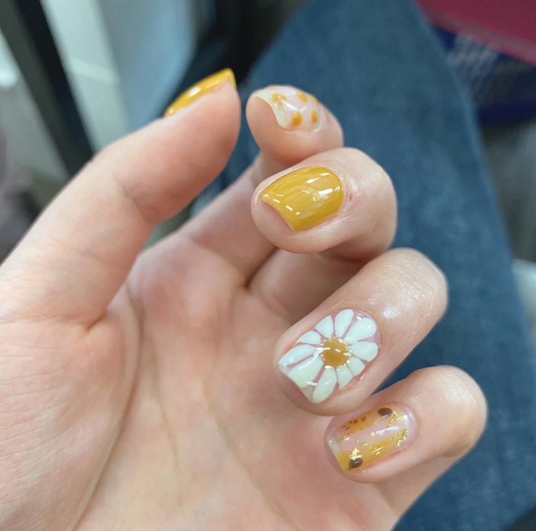 春日美甲,小雏菊真的很好看,很可爱耐!