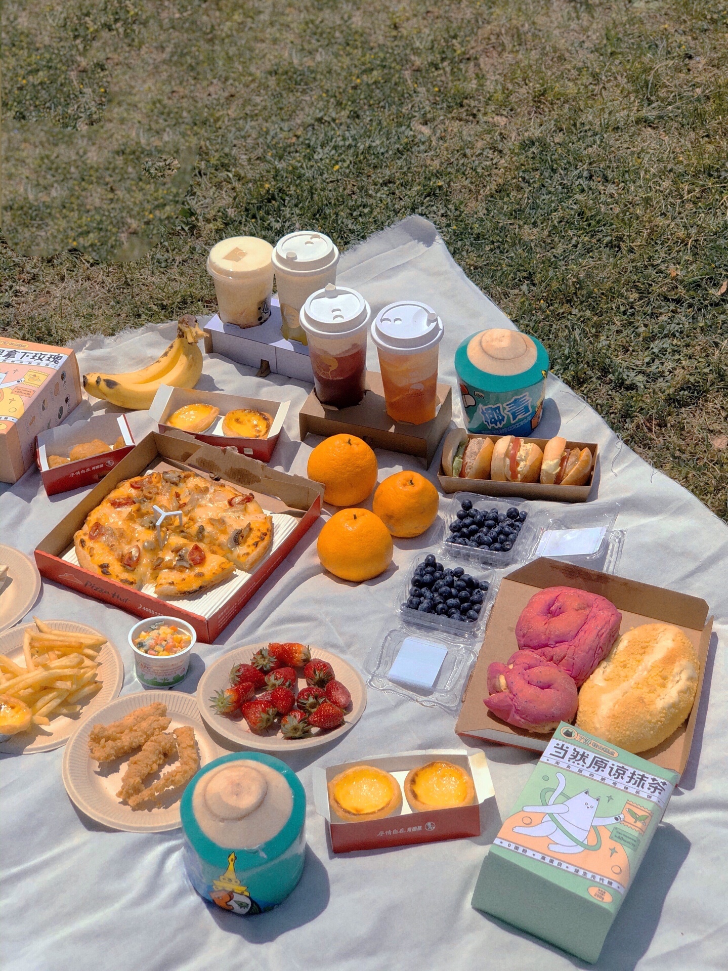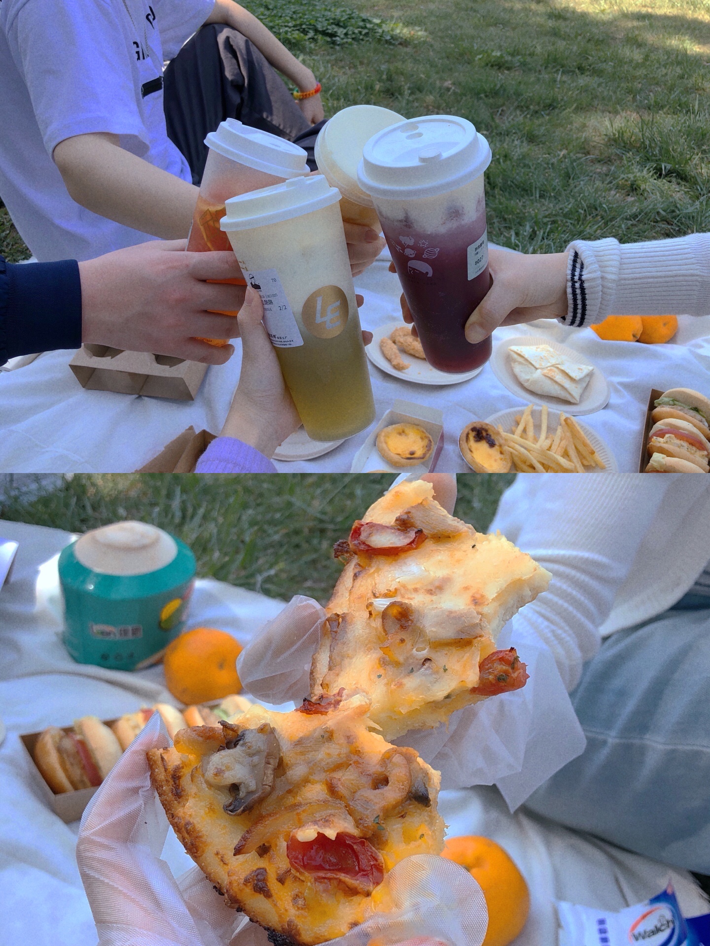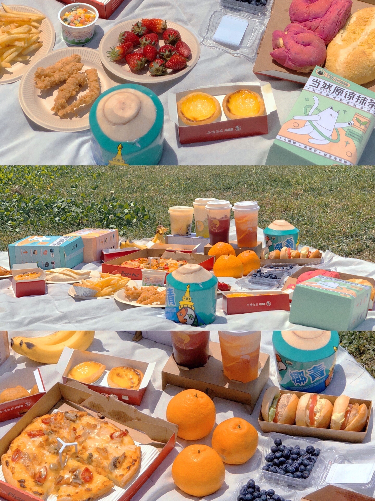 ❶ 奶茶:瓶装饮料不要再带去野餐啦 买一点好看的奶茶(打包的底座可以留下 放在野餐布上固定奶茶)👌🏻