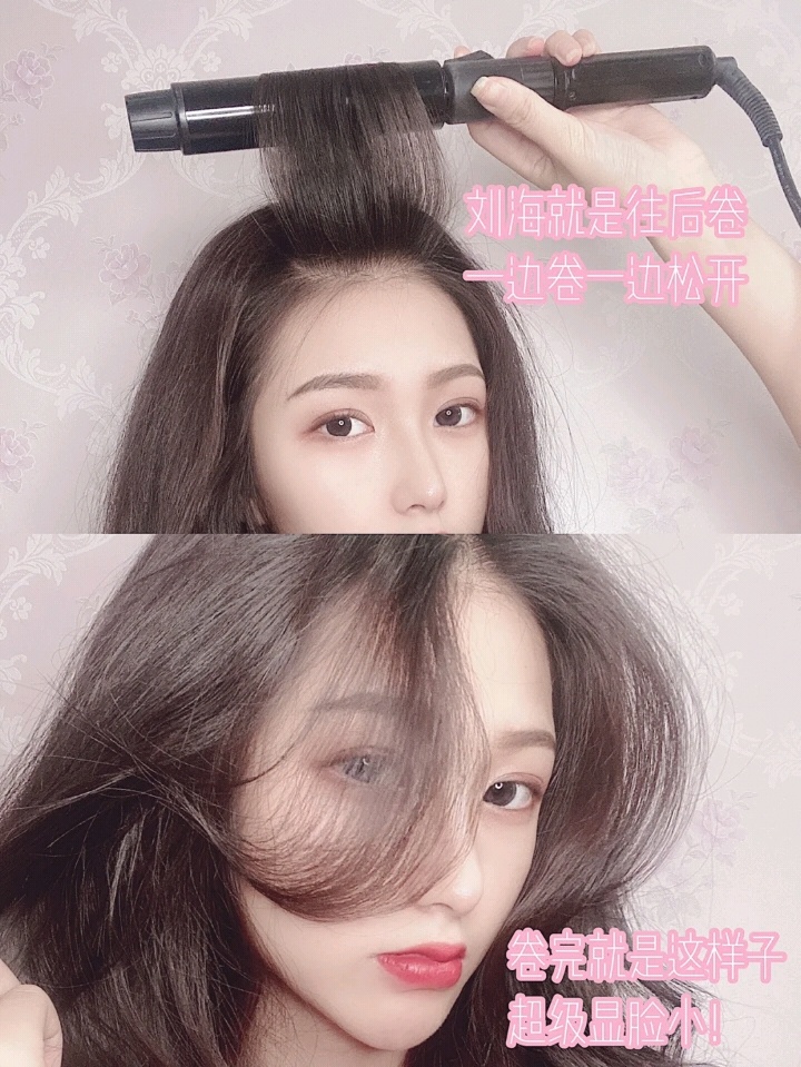 5⃣️刘海部分用卷发棒在后侧微微向后卷这样可以达到韩式刘海的效果哦
