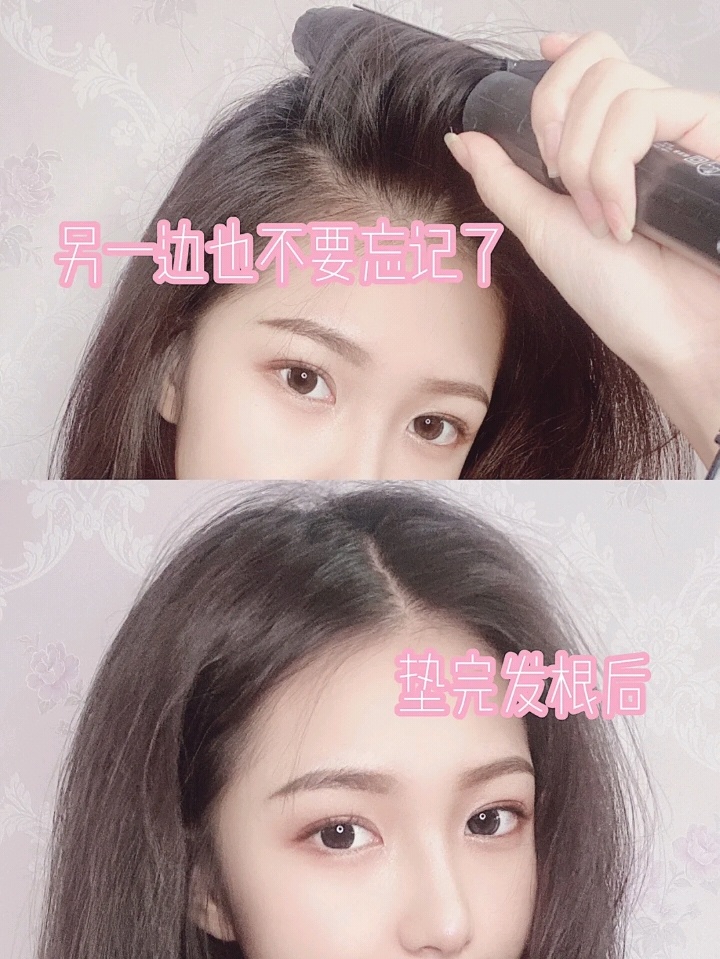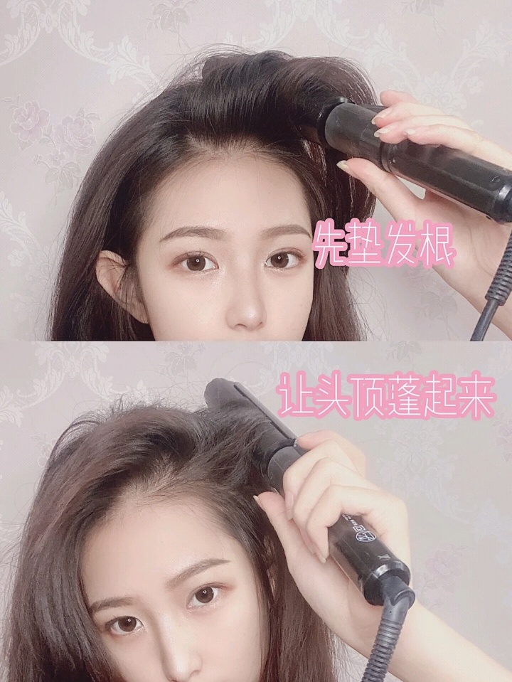 2⃣️用卷发棒轻轻垫起头顶发根处这样会让发顶更加蓬松~