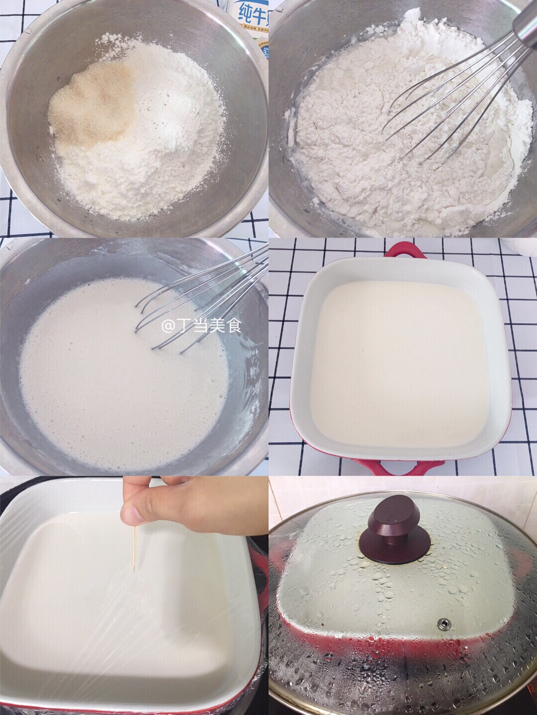 1️⃣面皮所有材料(除玉米油外)混合搅拌均匀,过筛到容器里。盖上保鲜膜,用牙签戳几个小洞,水开后放入蒸15分钟左右,焖5分钟。